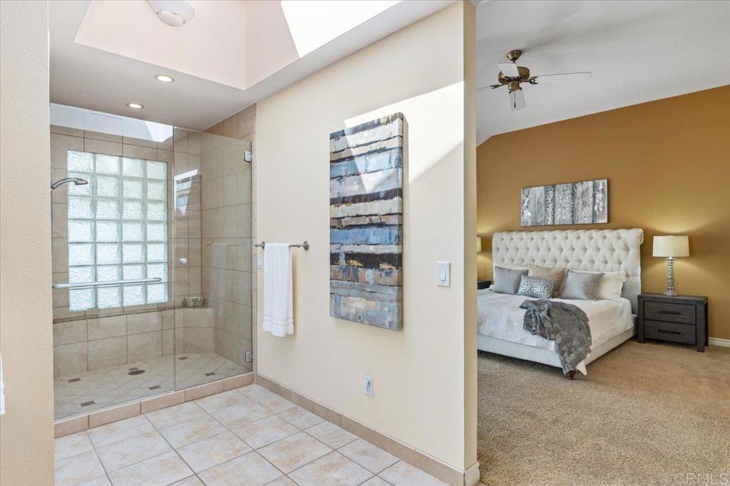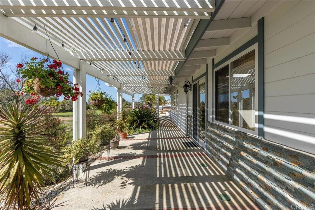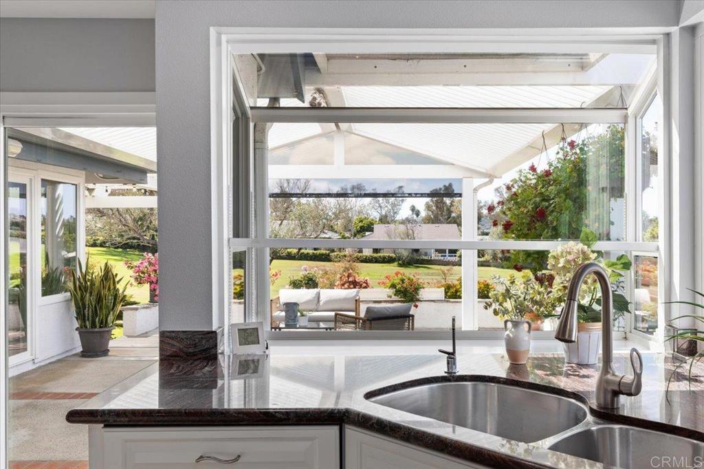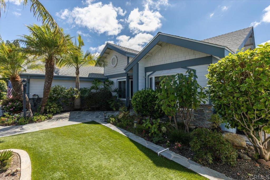 Lake San Marcos luxury views abound in this light and bright, window-lined golf course home on the 14th fairway of the Links at Lakehouse championship course. Soak up the sprawling vista of a blanket of green surrounding a majestic olive tree and peaceful pond just beyond. Enter in to the wide open living room under vaulted ceilings (and under a new roof!), enjoy a gas fireplace and the simple elegance of the upgraded luxury vinyl plank flooring and the natural flow of this well-planned layout. The remodeled kitchen has new cabinets, large gathering island with storage and bar seating, extra-large pantry, dining nook, Bosch dishwasher, new LG refrigerator, wine fridge and raised ceilings. Wander out to the huge wrap-around patio off the kitchen and under the tall, automated patio cover and experience those beloved breezes so coveted by those who live here at the lake. Sunset sits-and-sips out here are dreamy and are just a taste of the joy-filled days you will delight in among all the Lake San Marcos resort activities. Back inside, a large dining room beckons you for meals and memory-making while gazing through the bay window at the beautifully landscaped, yet low maintenance and private, front yard. The primary bedroom is large with a spacious ensuite bathroom, two walk-in closets and a bonus room/office/sunroom adjacent to the primary. A large, 2-car+golf cart garage with wonderful workbench and several tall storage closets lining the walls, plus pull-down attic storage, will woo the hobbyist and win over the future homeowner who loves optimal storage and organization for all their treasures! There is no HOA fee here, despite the resort life you'll be living! You can, however, choose to opt in, for a low annual fee, to the lake & lodge benefits of two pools, pickleball & tennis courts, boat rentals, discounts at the hotel, and more!