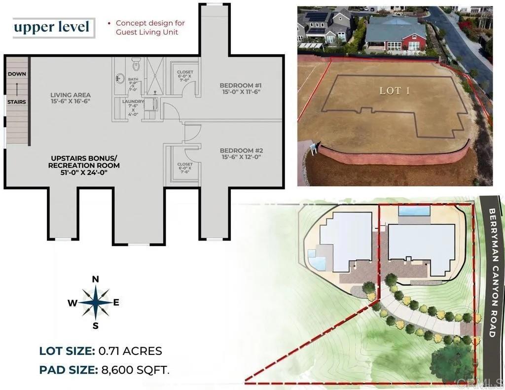 Introducing Berryman Canyon, a rare and exquisite opportunity to own a luxury estate in the making, perched above a secluded canyon in the prestigious Encinitas Enclave. This fully improved 0.71-acre homesite is masterfully positioned to capture sweeping vistas of dramatic canyons, rolling hills, and shimmering city lights, all just minutes from the I-5, upscale shopping, fine dining, top employment centers, and the iconic beaches of Southern California. Five years in the making, this custom-designed, single-level residence will span nearly 5,598 sq ft of elevated living, blending timeless architectural charm with sophisticated modern elegance. Approved plans feature 3,564 sq ft on the main level, including 4 spacious bedrooms, 3.5 spa-inspired bathrooms, a gourmet chef’s kitchen, café-style dining, expansive family room, oversized walk-in pantry, and a 2-car garage. The upper level adds 1,500 sq ft of versatile space, perfect for additional bedrooms, a private retreat, or a future 1,200 sq ft ADU, offers endless possibilities for a wellness studio, creative space, or luxurious guest quarters. Seamless indoor-outdoor living awaits with glass bi-fold doors opening to a resort-style courtyard featuring a sparkling pool, jacuzzi, fire pit, outdoor showers, and a built-in grill, ideal for elegant al fresco entertaining. Thoughtfully designed for multigenerational living, this estate offers both comfort and flexibility in a truly exceptional setting. Located near top-rated schools including Encinitas, Berryman Canyon is more than a home, it’s a lifestyle. Now is the perfect moment to connect, buyers have the exclusive opportunity to personalize finishes and bring their vision to life in this extraordinary coastal retreat. All renderings, plans, and descriptions are subject to change without notice. Square footage, features, and timelines are approximate and may vary. Estimated date to be completed in May 2026.