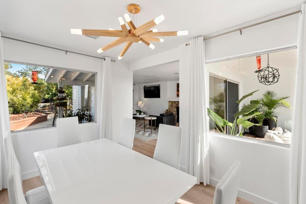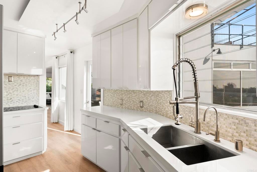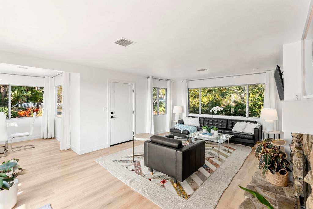 Mid-Century Modern Beauty with Ocean Views on 1.24 Acres in Leucadia Welcome to a rare opportunity to own a completely reimagined 1956 mid-century modern masterpiece, situated on 1.24 private acres in the hills of Leucadia—one of San Diego’s most sought-after coastal communities. This single-story home combines timeless architecture with extensive, high-end renovations, delivering ocean and hillside views from nearly every room. Inside, you’ll find modern finishes throughout, with attention to detail in every space. The bedroom wing has been completely rebuilt from the floors up, offering updated construction, style, and peace of mind. The result is a seamless blend of mid-century charm and contemporary luxury. Step through the front door into a sunlit living area with panoramic picture windows and sliding glass door that invite the outdoors in. The living room, complete with a gas fireplace, flows into the dining area and a sleek galley kitchen featuring quartz countertops, stainless steel appliances, modern cabinetry, and designer hardware. The primary suite is a serene retreat with expansive views, remote-controlled shades, an en-suite bath, and a spacious dressing room with its own washer and dryer. Each of the four bedrooms features oversized upgraded solid-core doors, and one includes a private entrance, making it ideal for guests, in-laws, or rental income. Additional highlights include: • 2020 4-zone Lennox Elite HVAC for customized comfort • Two full laundry areas, each with washer and dryer • Luxury vinyl plank flooring throughout • No interior steps for easy accessibility • Garage parking for two cars, plus space for at least five more vehicles • Rooftop deck with stunning ocean-view sunsets • Xeriscaped landscaping with succulents and water-wise design • No HOA and no Mello-Roos Whether you're entertaining outdoors on the spacious patio or enjoying the peaceful, private setting with postcard-worthy views, this home offers the ideal blend of coastal living, modern design, and everyday functionality.