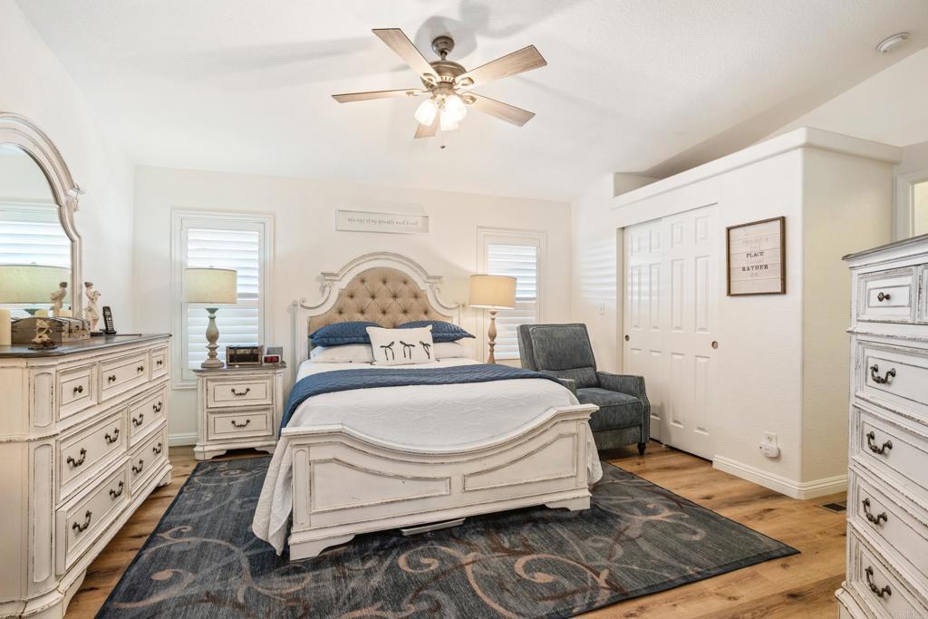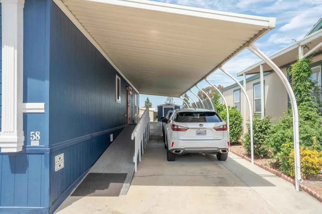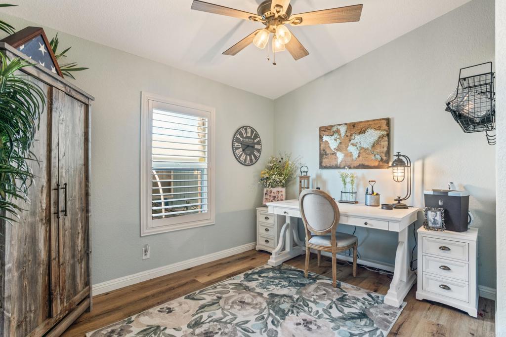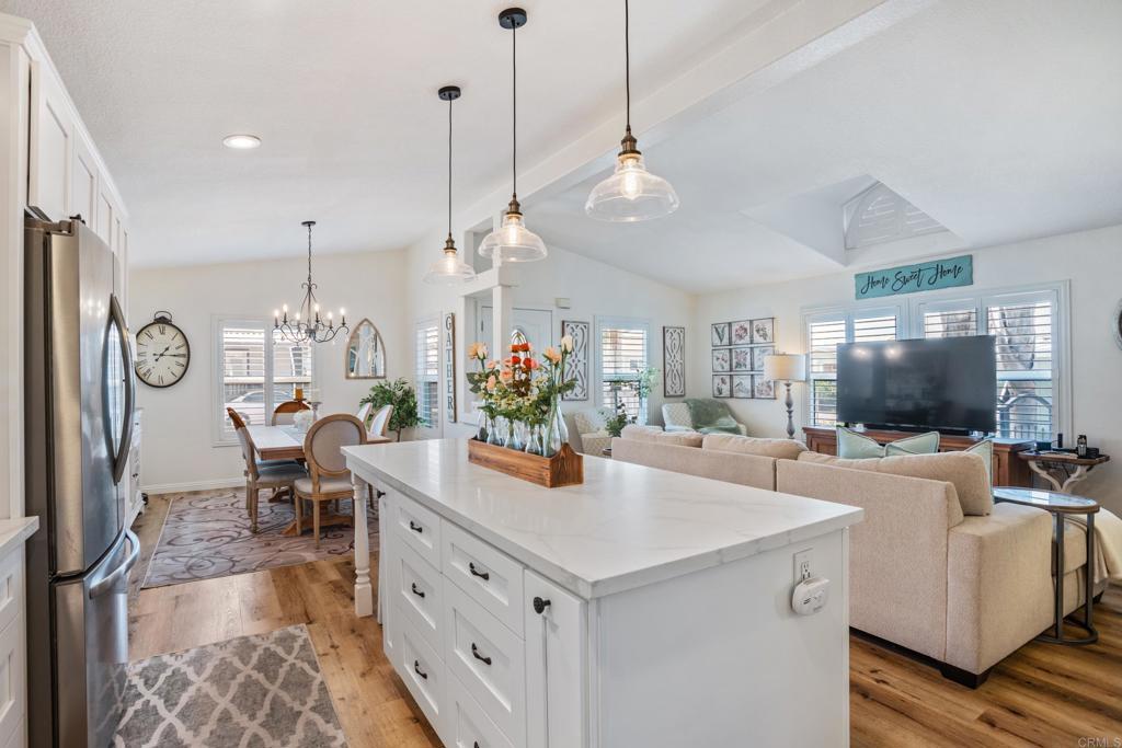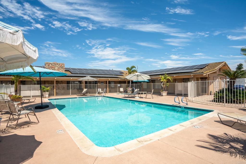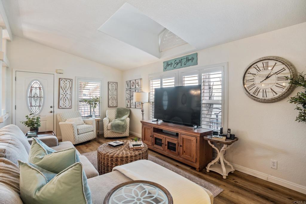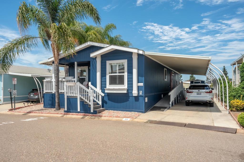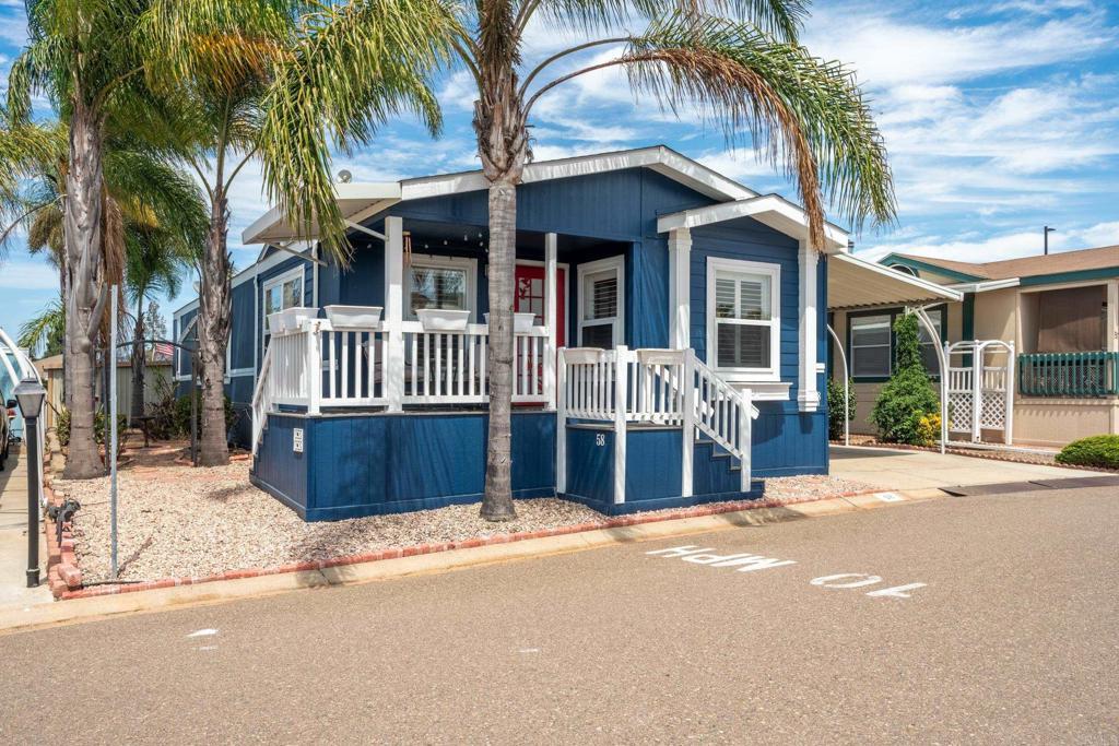 WOW! You will not believe that this is a manufactured home! Talk about move-in ready....this is move-in GORGEOUS! Welcome to your beautifully maintained 2-bedroom, 2-bath home, with DEN in coveted 55+ community, close to everything! This home offers an inviting open floor plan, with a bright, spacious kitchen, including stainless steel appliances, LARGE island, 5 burner gas stove, quartz countertops and stunning luxury vinyl flooring throughout. The primary suite & bath is another WOW moment. Bathroom has Freestanding bath tub with custom tiled glass shower enclosure. Stunning! The second bedroom is also spacious & has a full guest bath just across the hall. There is not a wall or fixture in this home that has not been upgraded. All 3 exterior doors have new security screens, as do all of the window screens....& all windows are covered with plantation shutters! Skylight in the living area brings in additional light to this already bright unit, along with 2 new solar tubes...one in the 2nd bath; one in the Laundry Room. The list of updates are endless. Enjoy outdoor living with a private patio space, and take advantage of community amenities such as pool, spa, clubhouse, shuffle board and walking paths. Situated in a desirable San Diego location, this home provides easy access to shopping, dining, and major freeways while maintaining a peaceful residential feel. This one will not last long! Buyers must qualify with the Park Management & minimum income to qualify is 4X's the monthly lease fee which is currenlty $1217/mo.