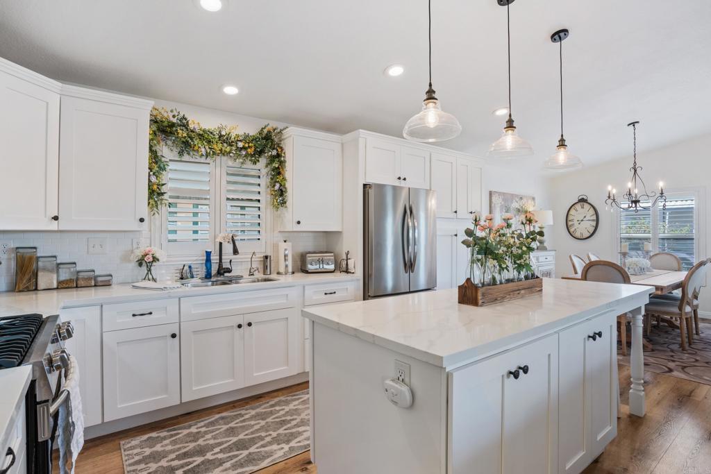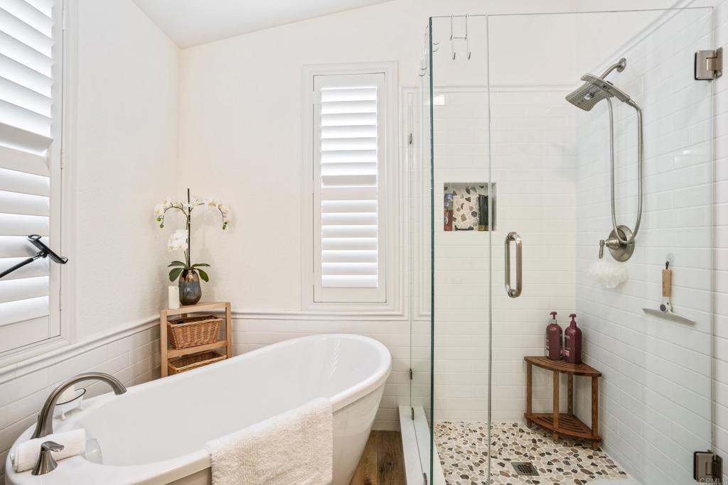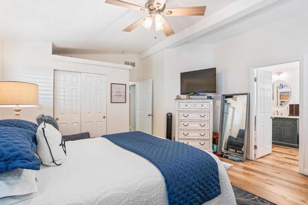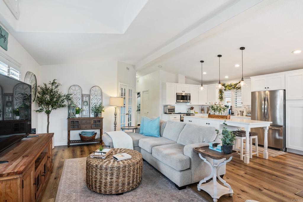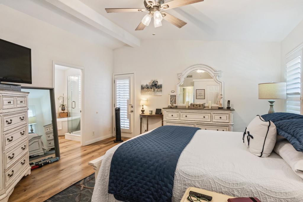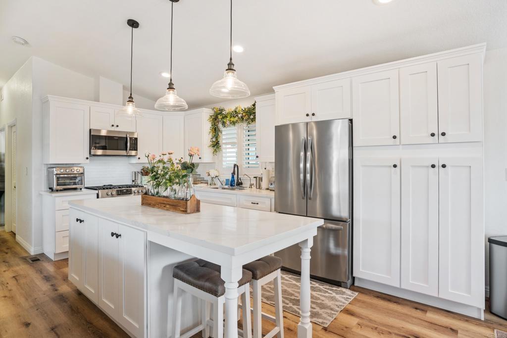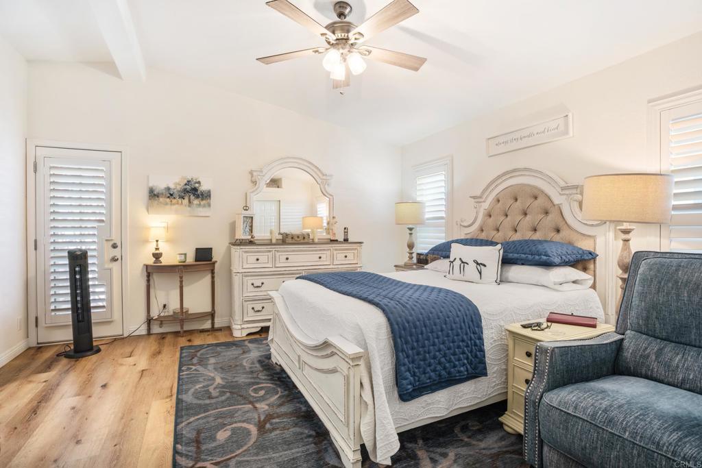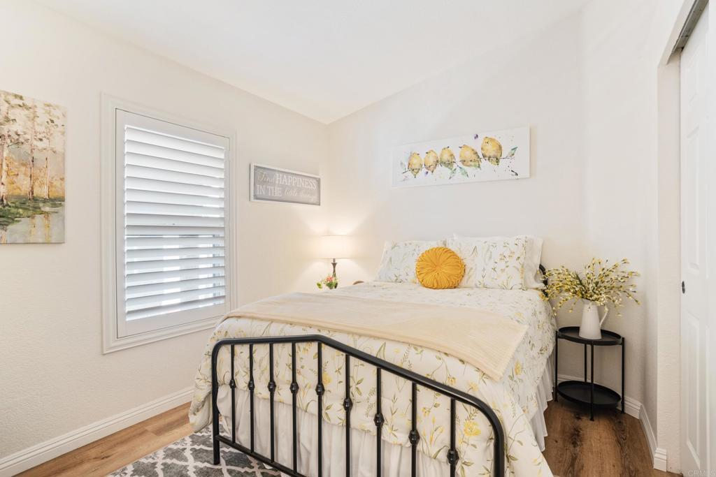 WOW! You will not believe that this is a manufactured home! Talk about move-in ready....this is move-in GORGEOUS! Welcome to your beautifully maintained 2-bedroom, 2-bath home, with DEN in coveted 55+ community, close to everything! This home offers an inviting open floor plan, with a bright, spacious kitchen, including stainless steel appliances, LARGE island, 5 burner gas stove, quartz countertops and stunning luxury vinyl flooring throughout. The primary suite & bath is another WOW moment. Bathroom has Freestanding bath tub with custom tiled glass shower enclosure. Stunning! The second bedroom is also spacious & has a full guest bath just across the hall. There is not a wall or fixture in this home that has not been upgraded. All 3 exterior doors have new security screens, as do all of the window screens....& all windows are covered with plantation shutters! Skylight in the living area brings in additional light to this already bright unit, along with 2 new solar tubes...one in the 2nd bath; one in the Laundry Room. The list of updates are endless. Enjoy outdoor living with a private patio space, and take advantage of community amenities such as pool, spa, clubhouse, shuffle board and walking paths. Situated in a desirable San Diego location, this home provides easy access to shopping, dining, and major freeways while maintaining a peaceful residential feel. This one will not last long! Buyers must qualify with the Park Management & minimum income to qualify is 4X's the monthly lease fee which is currenlty $1217/mo.