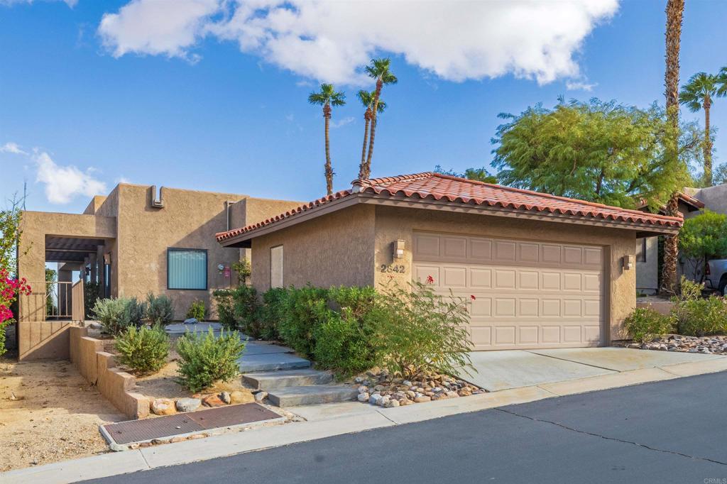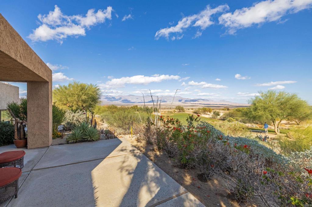 Rare opportunity to own this well designed and appointed two-bedroom, two-bath desert home with fabulous mountain and golf course views. Floor plan offers maximum privacy with primary bedroom in one wing, guest quarters in another, all on one level. Stunning view takes in the 14th fairway and winning, aesthetically-acclaimed Tom Fazio golf course, backed by sweeping natural desert and mountain panorama. The orientation of the home assures a spectacular sky at sunrise and sunset. A lovely approach with water features, ponds and detached 2 car garage. A short five-minute walk to HOA lap pool, swimming pool, spa, tennis court and pickleball! An easy-care landscaped yard. Walking distance to Rams Hill Clubhouse. Adjacent to the 600,000 acres of Anza Borrego State Park. A true gem within Borrego Springs, the only certified Dark Sky Community in California. Located just 6 miles from Borrego Springs, this home is conveniently close to shopping, grocery stores, restaurants, and other essential services. Whether you're seeking stargazing, golf, hiking, cycling, art appreciation, or simply to relax, this home is the perfect desert retreat!