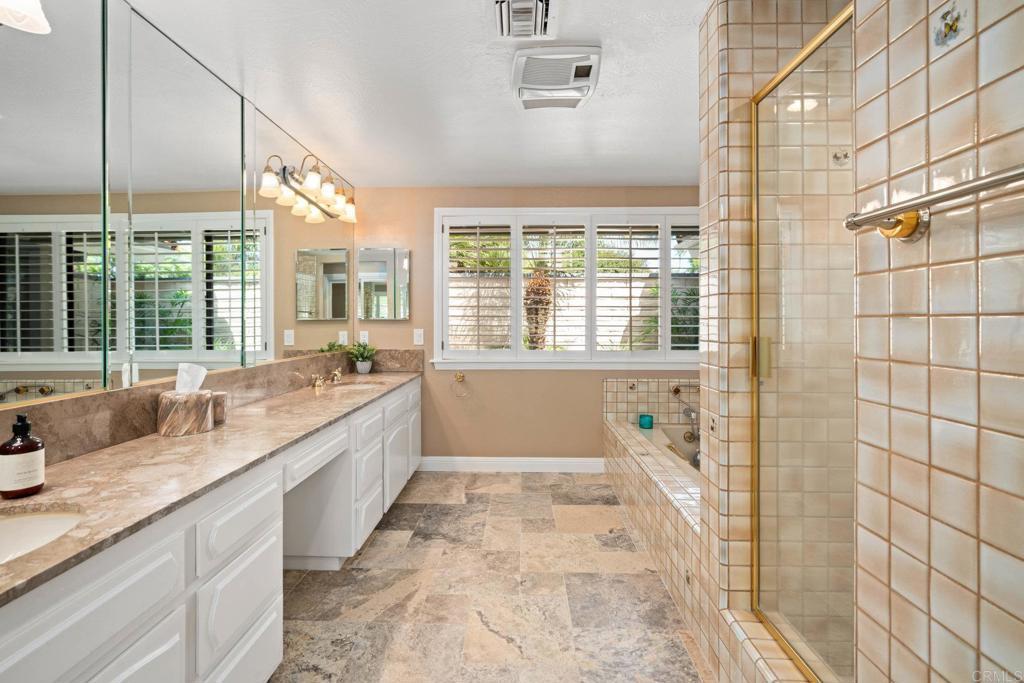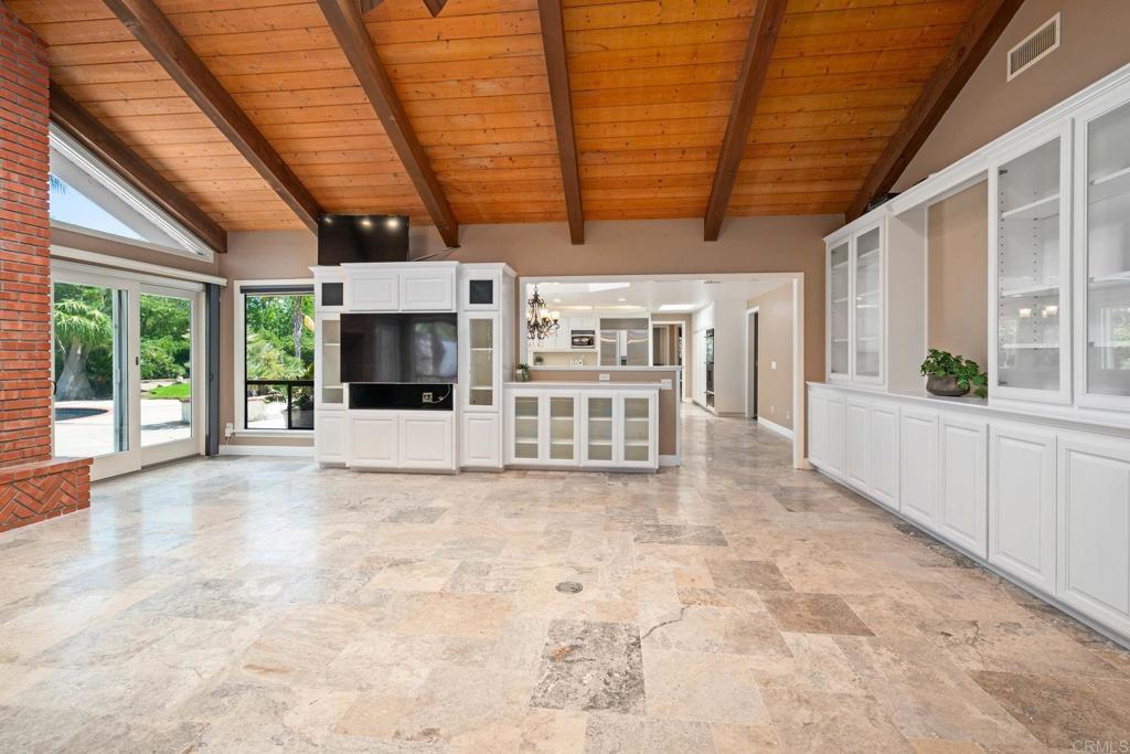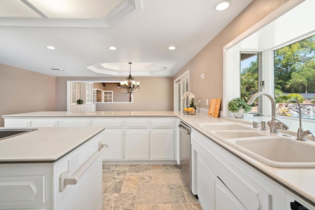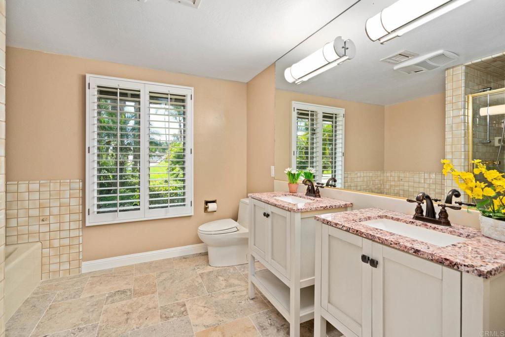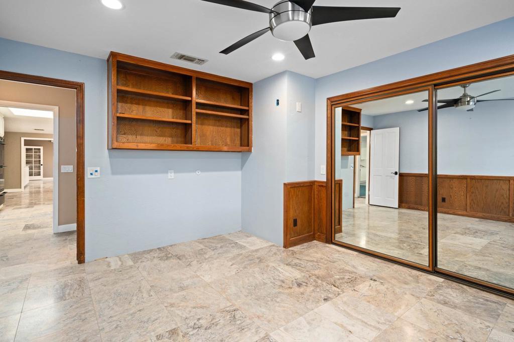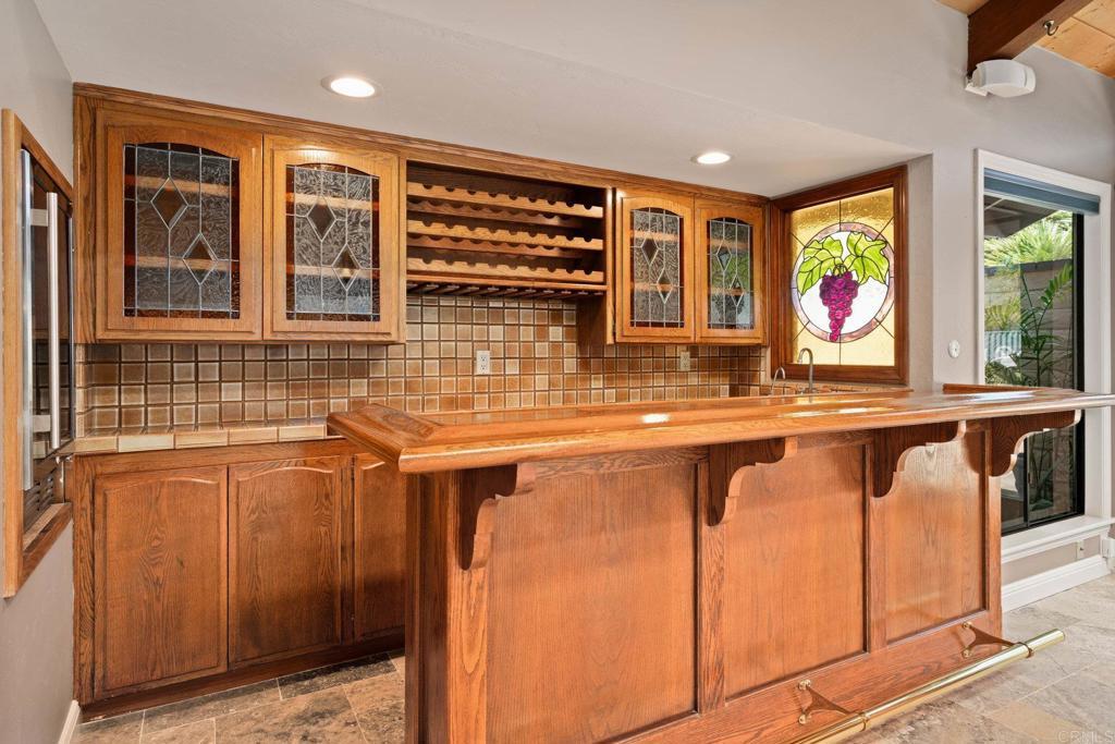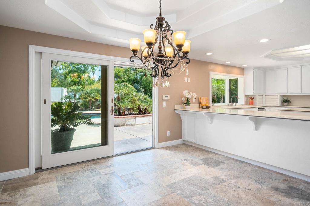 Welcome to this stunning single-story estate on one of Vista’s most sought-after streets set on nearly an acre (.95) with a circular driveway, and a private automatic gate leading to the saltwater pool and huge backyard. This 4-bedroom, 3.5-bathroom home offers exceptional privacy, space, and luxury. A 3-car garage with a convenient half bath, 30 panel solar system, well for landscaping, whole house fan, and water filtration system add to the home’s functionality and efficiency. Plenty of space is available for an ADU, RV, or recreational toys. Step through the custom double front doors into a bright and open floor plan designed for both entertaining and everyday living. The formal dining room features built-in display cabinetry, while the living room offers a cozy fireplace. The spacious family room boasts vaulted ceilings, skylights, track lighting, a ceiling fan, a fireplace, and a wet bar with a refrigerator. The chef’s kitchen is beautifully appointed with Dacor double ovens, a Sub-Zero refrigerator, an ice maker, a Viking cooktop on the center island, a breakfast nook and a garden window overlooking the sparkling saltwater pool and backyard. The primary suite is a true retreat with two closets, a fireplace, and direct access to the backyard. The spa-like primary bathroom includes a separate shower and soaking tub, Toto toilet and bidet, and views of the private atrium. Additional bedrooms are complete with ceiling fans, while the laundry room includes a utility sink. Upgrades such as stone flooring, plantation shutters, crown molding, soft fit ceilings, retractable screen doors, automatic window shades, and recessed lighting complement the home’s timeless style. Mature landscaping with gorgeous palm trees surrounds this one-of-a-kind estate, creating a tranquil and private setting. A true jewel in Vista, rarely available and impossible to duplicate.