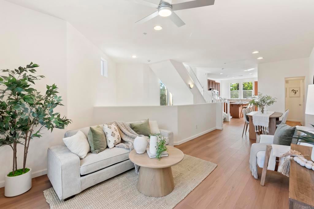 Live, Work lifestyle at it's finest! Welcome to this stunning mixed-use townhome nestled in the heart of the vibrant San Elijo Hills community in San Marcos, CA. This modern and spacious home offers 1,680 square feet of beautifully designed living space, perfect for both relaxation and entertainment, with the added benefit of exceptional walkability to local amenities. As you step inside, you are greeted by an open-concept layout that seamlessly connects the living areas, creating an inviting atmosphere. The condo features two bedrooms and 2 full bathrooms plus 2 half bathrooms. Both bedrooms feature full ensuite bathrooms The street-facing store front on the main level adds incredible value and versatility, offering the perfect space to be used as a third bedroom, an office, or a place to run your business from. Overlooking the San Elijo Hills Fountain Park on the corner of San Elijo Rd and Elfin Forest. The kitchen features granite countertops, a sizable island for meal preparation, along with a dishwasher and range. Whether you’re hosting a dinner party or enjoying a quiet breakfast, the kitchen dining area offers a perfect setting. This home also boasts a direct access 2-car garage, enhancing convenience and ease of living. Climate control is a breeze with central heating and air conditioning, ensuring year-round comfort. Additionally, the convenience of an in-unit washer and dryer further enhances the ease of living in this beautiful home. With its prime location and versatile features, this condo is a remarkable find in San Elijo Hills.