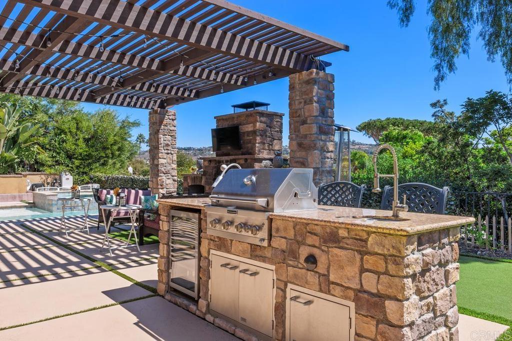 Rare Single-Level Retreat in La Costa - Perched on one of La Costa’s most prestigious streets, this single-level 3,528 sq. ft. residence combines timeless elegance with modern California living — just a quick golf cart ride to the world-renowned Omni La Costa Resort & Golf Course. A private front courtyard welcomes you into sun-filled interiors, where tall French doors and expansive windows frame serene garden views. The flexible open layout features 5 bedrooms plus an office and 3.5 baths, offering both space and versatility for today’s lifestyle. What makes it special: 1) Entertainer’s dream backyard with fireplace, flat screen, trellis, built-in kitchen, and spa. 2) Warm family room with fireplace opening to a sunlit chef’s kitchen with custom cabinetry, granite counters, and premium finishes, 3) Grand living room with oversized windows and French doors leading to a tranquil outdoor retreat, 4) Primary suite sanctuary with fireplace and private patio shared with the office — ideal for quiet mornings or al fresco dining, and 5) Oversized 2-car garage + golf cart bay with abundant storage. Recent upgrades include two new AC units, dual hot water heaters, skylights, rain gutters, and a dog run. With its premier location, resort-style amenities, and rare single-level floorplan, this home is a true La Costa jewel that offers a lifestyle that is as effortless as it is luxurious.