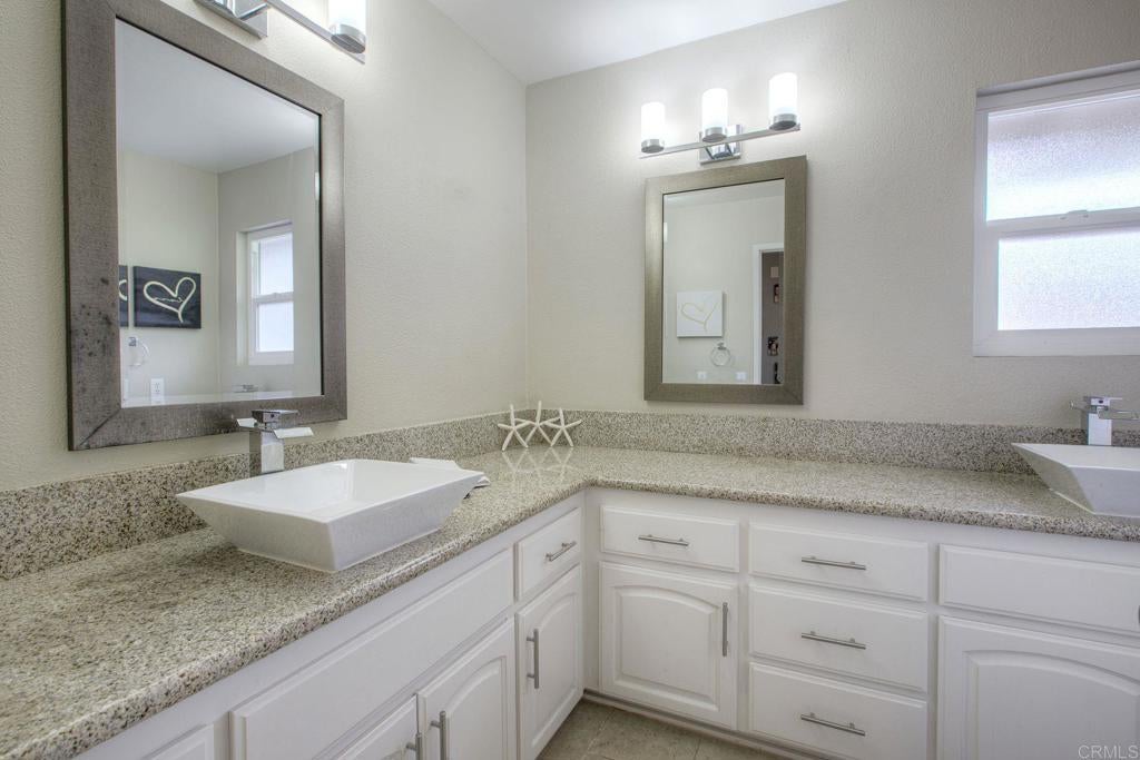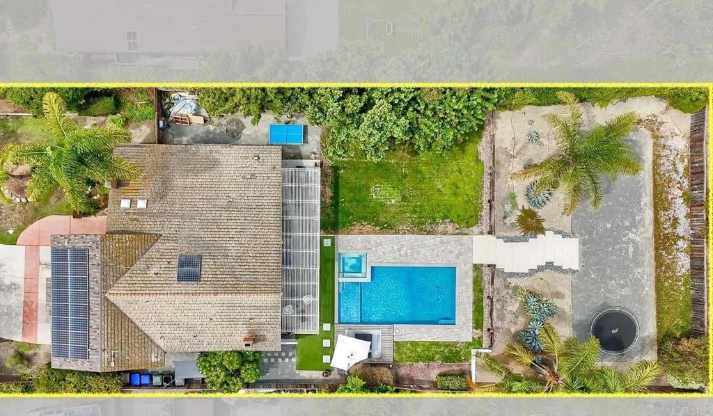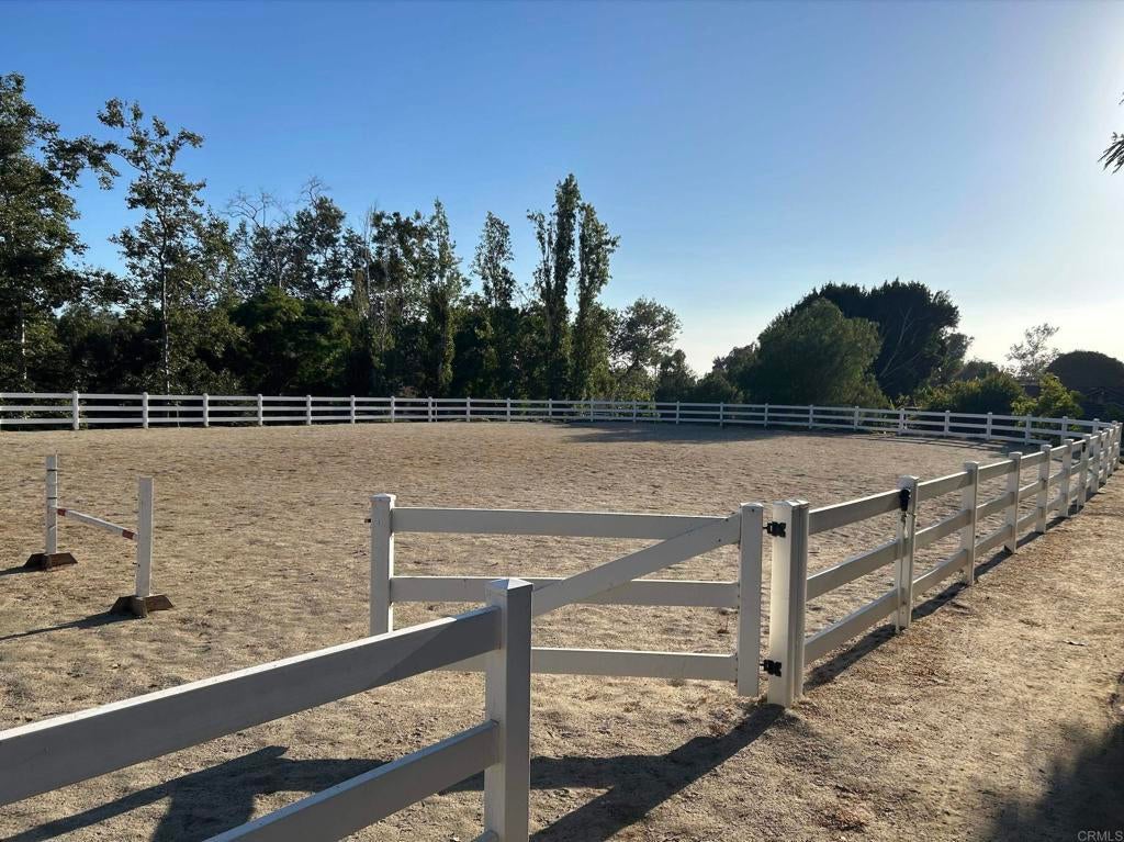 Luxurious Equestrian Retreat with Saltwater Pool, Spa, and Solar. Saddle up for this stunning 2,883 sq. ft. home lot over 1/3-acre in the coveted Carriage Hills equestrian community of Vista (zoned for horses), south of the 78 Fwy. Nestled on a charming cul-de-sac, this rare gem offers 4 bedrooms and 3 full bathrooms (1bed/1bath downstairs), 3-car garage and large driveway fit for multiple vehicles. Step inside to soaring vaulted ceilings in the formal dining and living room, warmed by one of two fireplaces. Rich dark wood floors guide you to the family room, showcasing a backyard with a picturesque view of the Pool oasis. The kitchen features white shaker cabinets, caramel travertine counters, and stainless steel appliances. Upstairs, the expansive primary suite impresses with vaulted ceilings, large sitting area, and covered outdoor deck. The ensuite bathroom boasts dual sinks, pedestal bathtub, tiled shower, walk-in closet and secondary closet. The other two upper bedrooms are flanked by a third bath with dual sinks. Outside, unwind in the custom saltwater Pool and Spa, surrounded by a sprawling flat yard ideal for entertaining. Relax under the pergola, bask by mature trees offering serene privacy, or follow the back path to a perfect spot for a casita, ADU, or volleyball court. This tranquil sanctuary feels like an escape from the city while just minutes from freeways, shops, restaurants, public transit, and the vibrant cities of Carlsbad, Oceanside, San Marcos or a short 15 minute drive to the beach. Carriage Hills offers a unique equestrian lifestyle with a community horse arena, riding/walking trails, a playground, dog park, and picnic areas - all for a low HOA fee. Vista’s ideal Mediterranean climate (averages 67–83°F) for year-round comfort. Explore this equestrian paradise today!