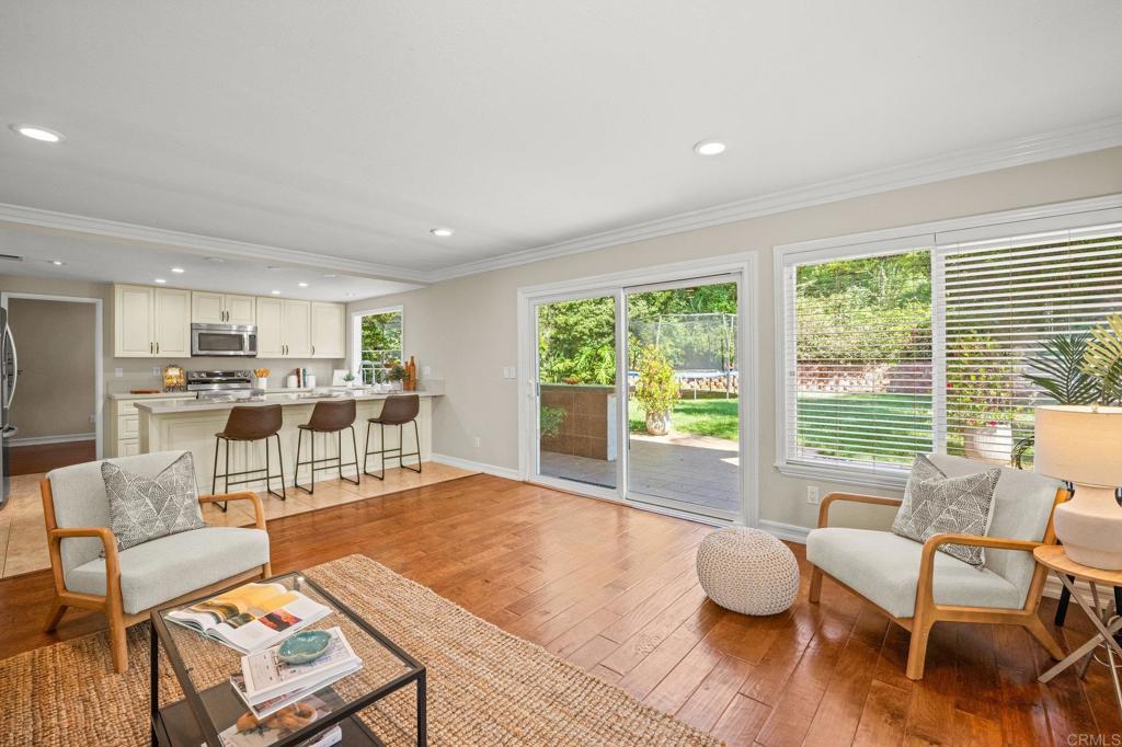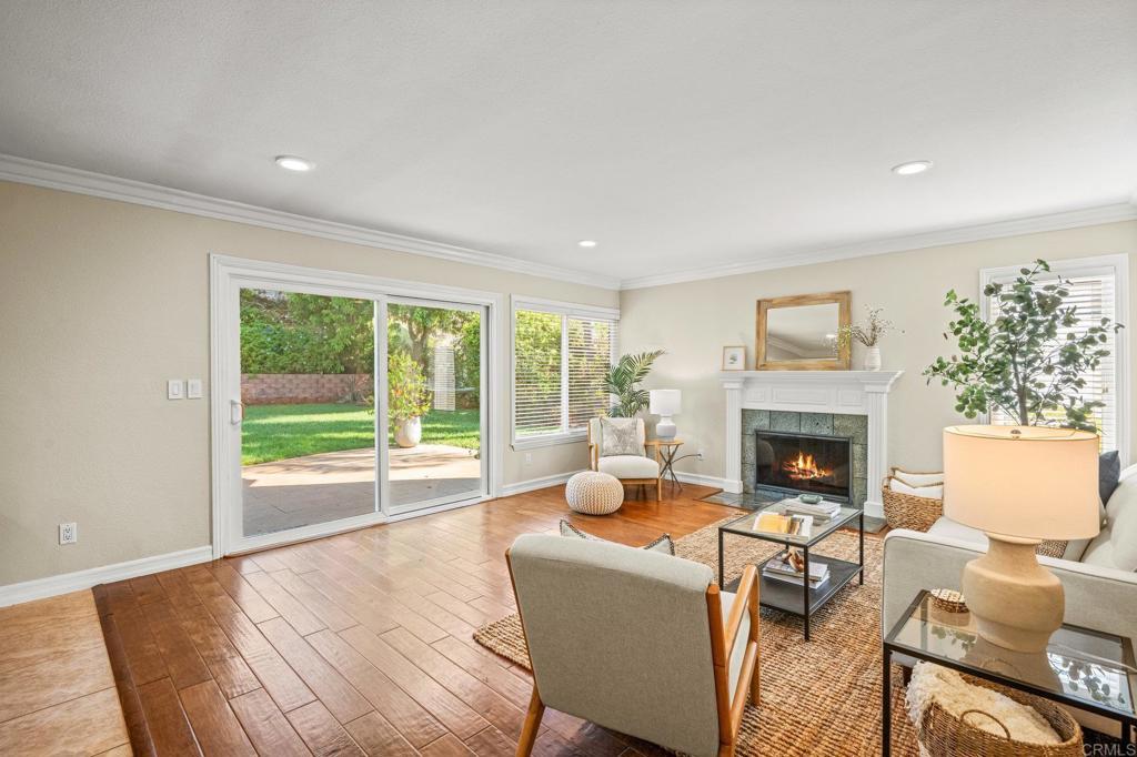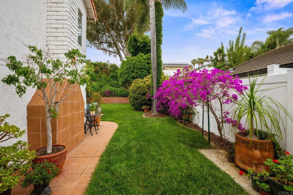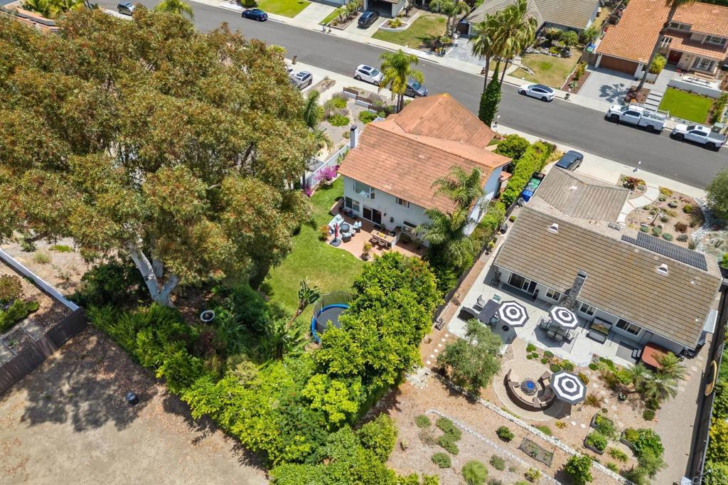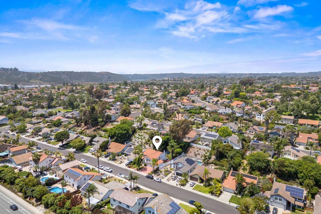 Freshly updated interior and move in ready home situated on a huge lot with great curb appeal, lush views and a spacious floorpan. This gorgeous 5 bedroom, 3 bath home is ideally located on the border of Encinitas and Carlsbad, providing convenient access to North County San Diego's most desirable coastal communities. As you enter through the private gated courtyard, you will be greeted with tranquility, verdant landscaping including a mature orange tree, and a lovely entranceway to this gorgeous traditional home. Step inside and enjoy the flow of this beautifully updated home featuring a gourmet kitchen with quartz countertops, custom-designed cabinetry, new appliances, bay window over single basin stainless steel sink and an eat-at bar. The family room features a cozy fireplace with lush backyard views from every window. Rich hardwood flooring throughout downstairs leads to a generously sized dining area and adjoining living room with plenty of space to entertain and enjoy. Downstairs amenities include a powder room, a full laundry room with a sink and outdoor access, and plenty of storage. The second level boasts new carpet and leads to a spacious primary suite with a window seat framing the outdoor views and a custom-tiled bathroom with a soaking tub, separate shower, and dual vanity. Additionally, the upstairs offers 3 bedrooms with ample closet space, a bonus, oversized multi-purpose 5th bedroom, and a completely remodeled full bathroom with a custom walk-in shower. Lushly landscaped, the backyard boasts mature trees, bushes, and flowers along with a serene patio area, a built-in BBQ island with a mini fridge, a koi pond and ample room for a pool. Additional highlights include a new Hybrid AC unit, custom-stamped concrete driveway, and a spacious 3-car garage with epoxy floors and shelving. Enjoy coastal living while also being just a short drive from world-class golf courses, trails, shopping, and dining. Highly acclaimed San Dieguito and Encinitas School Districts and low HOA.