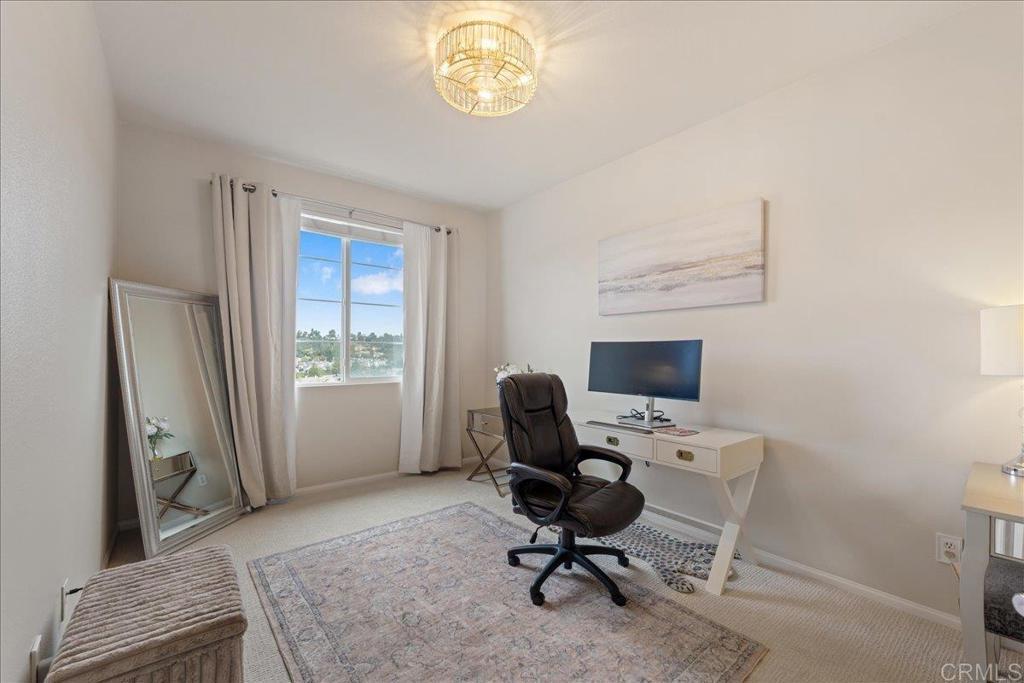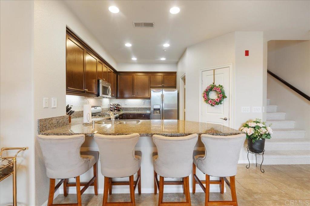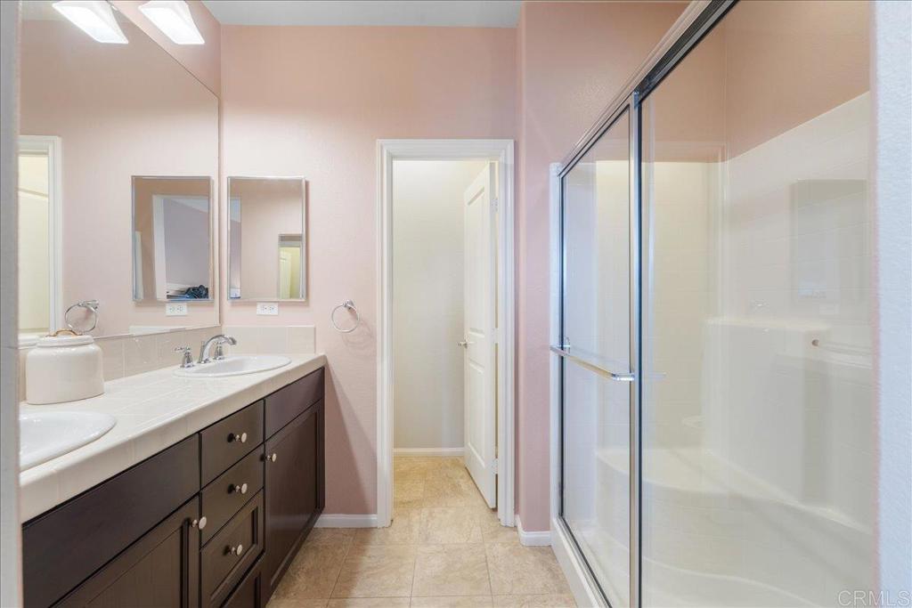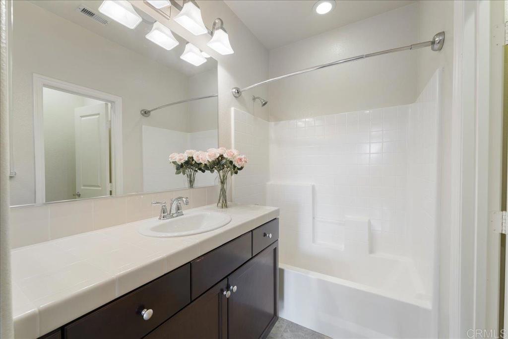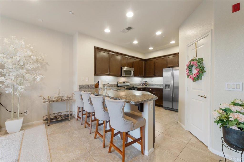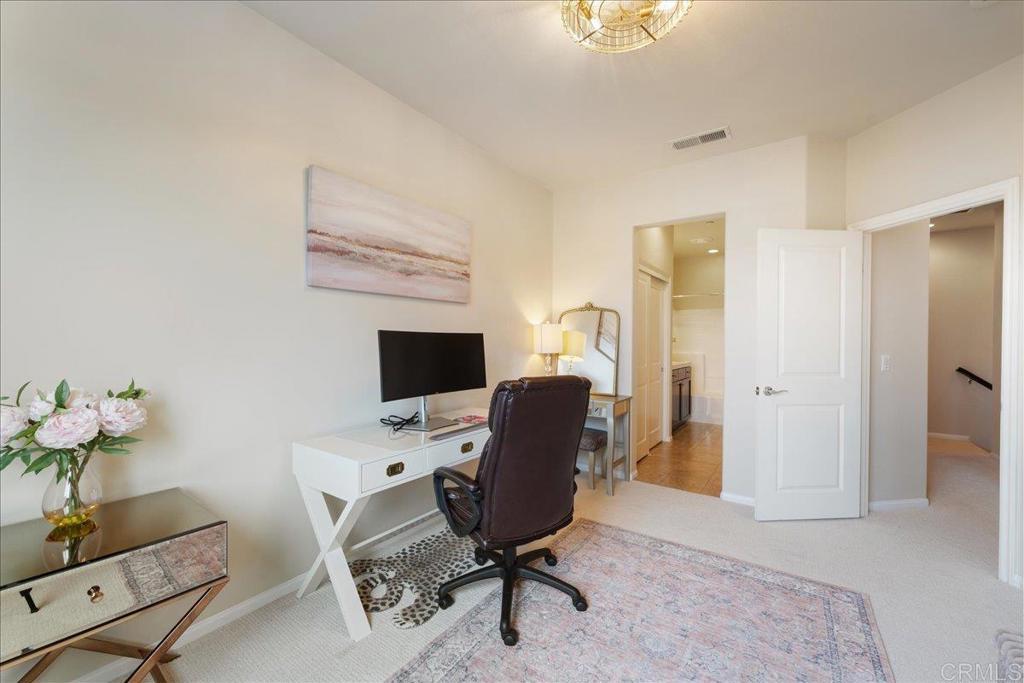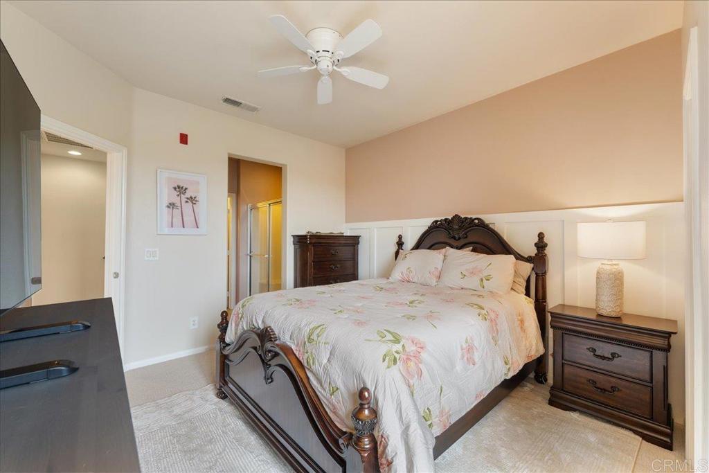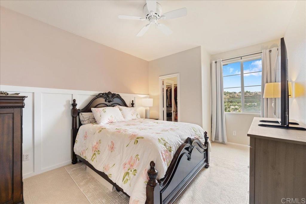 New Price Enhancement: Nestled in the desirable Magnolia community of Old Creek Ranch, this meticulously maintained townhome offers a blend of modern comfort and serene living. Built in 2014, this residence is situated in a rare perimeter location, providing enhanced privacy and stunning west-facing views that capture breathtaking sunsets. Inside, the open-concept floor plan showcases a modern kitchen upgraded with granite countertops, stainless steel appliances, and a breakfast bar that flows effortlessly into the spacious living area. Elegant touches like upgraded backsplash, custom window coverings, and new hardware throughout create a polished, designer feel. The sellers have added numerous thoughtful improvements, ceiling fans, and fresh paint, making this home truly move-in ready. Upstairs, both bedrooms feature their own ensuite bathrooms, enhanced with upgraded fixtures and finishes for maximum comfort and convenience. The in-unit laundry is ideally located on the same level. Additional highlights include durable tile flooring, recessed lighting, central air conditioning, and an attached two-car garage with ample storage space, upgraded with epoxy flooring and overhead racks for organization. Residents of Magnolia at Old Creek Ranch enjoy resort-style amenities, including a pool, spa, BBQ area, fire pit, playground, and scenic walking trails. The HOA covers water and exterior maintenance, ensuring a low-maintenance lifestyle. Located just minutes from San Elijo Hills Town Center, award-winning schools, parks, local trails, shopping, dining, and entertainment options, this home perfectly combines comfort, convenience, and location.