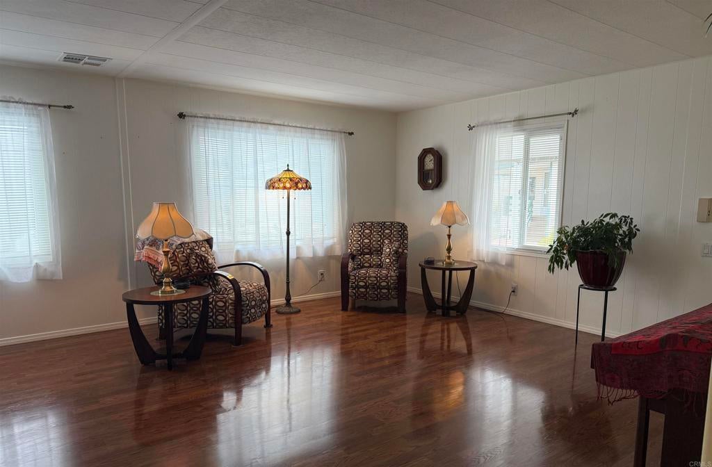 I would like to present a beautifully maintained double-wide residence situated on a spacious corner lot. This home is located in the sought after 55+commuity of Madrid Manor in San Marcos. It features numerous upgrades and amenities, including wood-look laminate flooring throughout, newer kitchen appliances, two skylights, and a newer roof. The water heater has also been recently replaced by the sellers. The main suite offers a walk-in closet and a walk-in shower. Additionally, there is an 8 x 18 California Room, providing versatile extra space ideal for an office or craft area. The property also includes an extended carport with additional guest parking, conveniently located adjacent to the main guest parking area. Residents will also benefit from the many park amenities and activities available for their enjoyment.