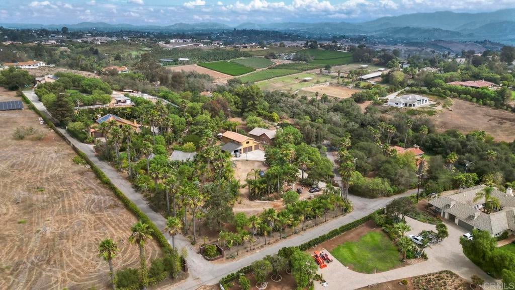 Private Tropical Estate with Mountain Views, Custom Home, Guest House and Workshop on 2.5 Acres in West Bonsall. Welcome to your own secluded paradise nestled in the tranquil foothills of Sleeping Indian. This one-of-a-kind compound blends luxury living, breathtaking scenery, and incredible functionality across a fully usable 2.5-acre estate—a rare gem in sought-after West Bonsall. Framed by gorgeous panoramic views of surrounding mountains and rolling hills, the property is surrounded by nature, offering daily visits from red-tailed hawks, eagles, hummingbirds, and more. Whether enjoying your morning coffee on the patio or relaxing in the spa under the stars, the sounds and sights of nature create a serene, private retreat you’ll never want to leave. This meticulously maintained property features a gorgeous 2-story custom main home, a spacious second dwelling, and an expansive multi-use workshop, totaling 6,376 square feet of living and functional space. Designed with resort-style living and entertaining in mind, the grounds offer lush tropical landscaping, multiple patios, custom water features, firepits, and dozens of fruit trees—all creating an incredibly peaceful setting. Whether you're looking for a multi-generational estate, a vacation-style retreat, or an income-generating property, this home offers unmatched versatility and potential. Main Residence (3,441 Sq Ft) 4 spacious bedrooms and 3 luxurious custom bathrooms. Grand living room with soaring cathedral ceilings. 3 custom stone fireplaces, including one in the primary suite. Stunning master bath with Jacuzzi tub and steamer shower. Solid Mahogany and Cherry wood doors and door frames. New Anderson casement windows and Sierra Pacific sliders. Gourmet kitchen with high-end appliances and open concept layout. Large dining room and cozy family room—perfect for entertaining. Impressive 6-ft wide grand staircase. Ample storage with two large, accessible attics. Split-zone HVAC, central vacuum, and upgraded 4-year-old septic. Oversized garage with drive-through UTV access. Soothing entrance fountain and expansive rear paver patio—ideal for a future pool. Outdoor Resort Living includes a massive entertainment patio with covered outdoor kitchen, premium appliances, dual refrigerators, and seating for up to 16. Covered El Grande Cal Spas Jacuzzi. Resort-style lighting, water features, and fire pits. Stunning mountain views and daily wildlife sightings—from soaring hawks and eagles to playful hummingbirds. Landscaped to perfection with a tropical theme throughout. Fully paid 52-panel solar system powering both homes. Dual gated entrances for added privacy and access. Second Dwelling and Workshop (3,120 Sq Ft Total), Guest House (1,248 Sq Ft) 2 bedrooms, large great room, kitchen, and recent upgrades, New windows, mini-split heating and A/C, separate laundry, Ideal for extended family, guests, or income—previously rented for $3,200/month, Workshop (1,872 Sq Ft), Currently equipped with 3 car lifts (up to 15 car capacity) Includes central shop vacuum, compressed air plumbing, and enclosed music/bonus room, Perfect for car enthusiasts, hobbyists, or small business use, Bonus: Unfinished 425 Sq Ft carport offers potential to convert into office, studio, or additional living space. Additional Highlights: Located on a peaceful private gated road in highly desirable West Bonsall. Gently sloping, 100% usable land—ideal for equestrian use, farming, or expansion, High-speed internet in both homes. First time ever on the market, lovingly cared for by the original owner. An outdoor lover's dream—watch hawks soar and hummingbirds dance, right from your backyard.