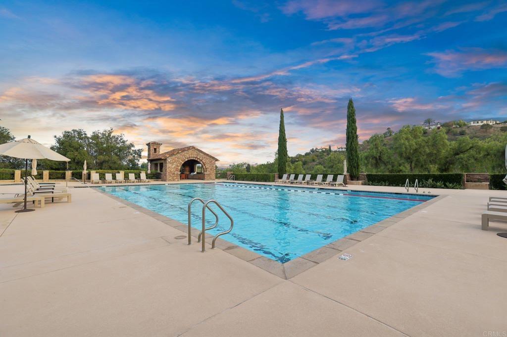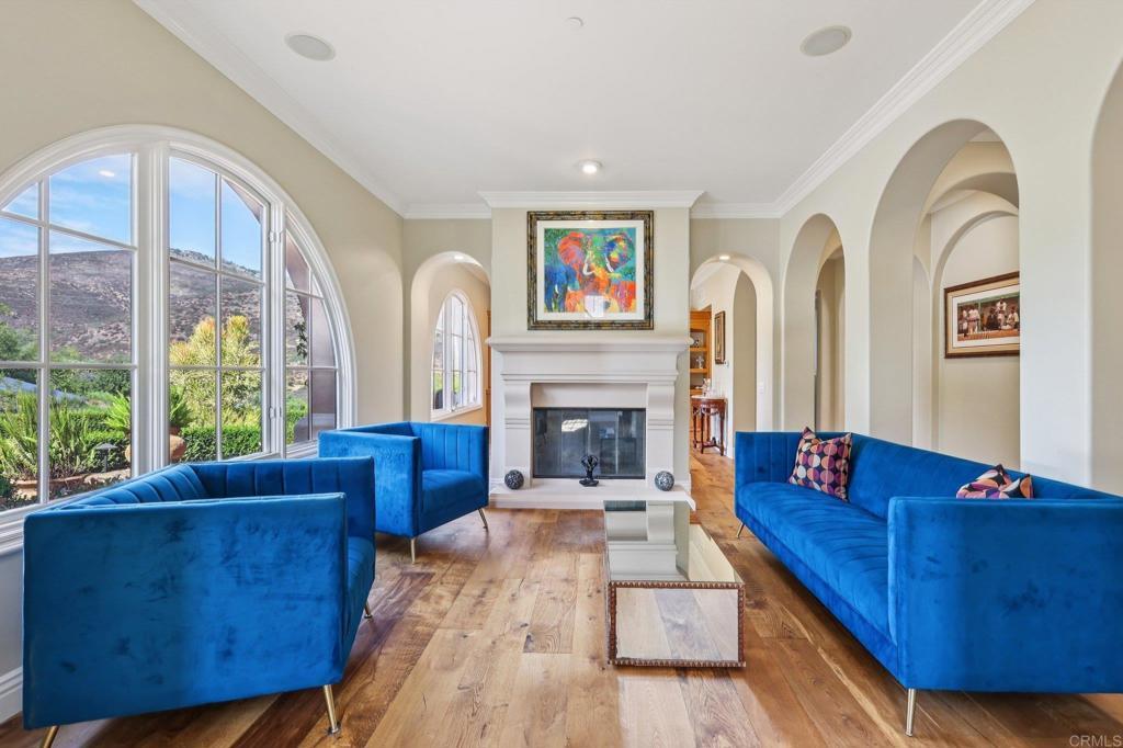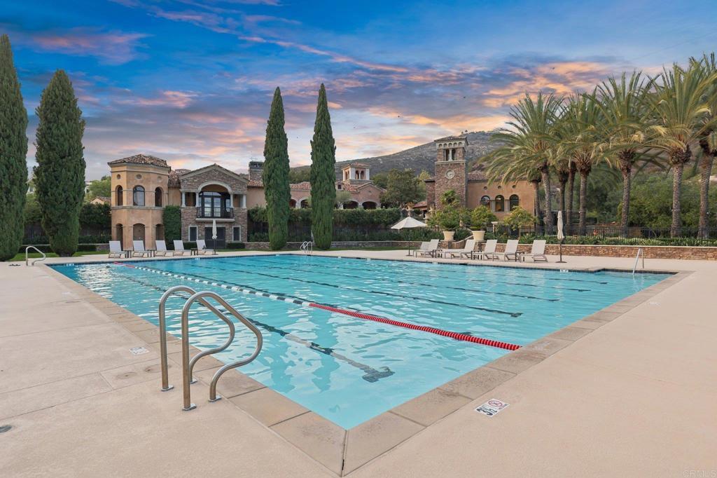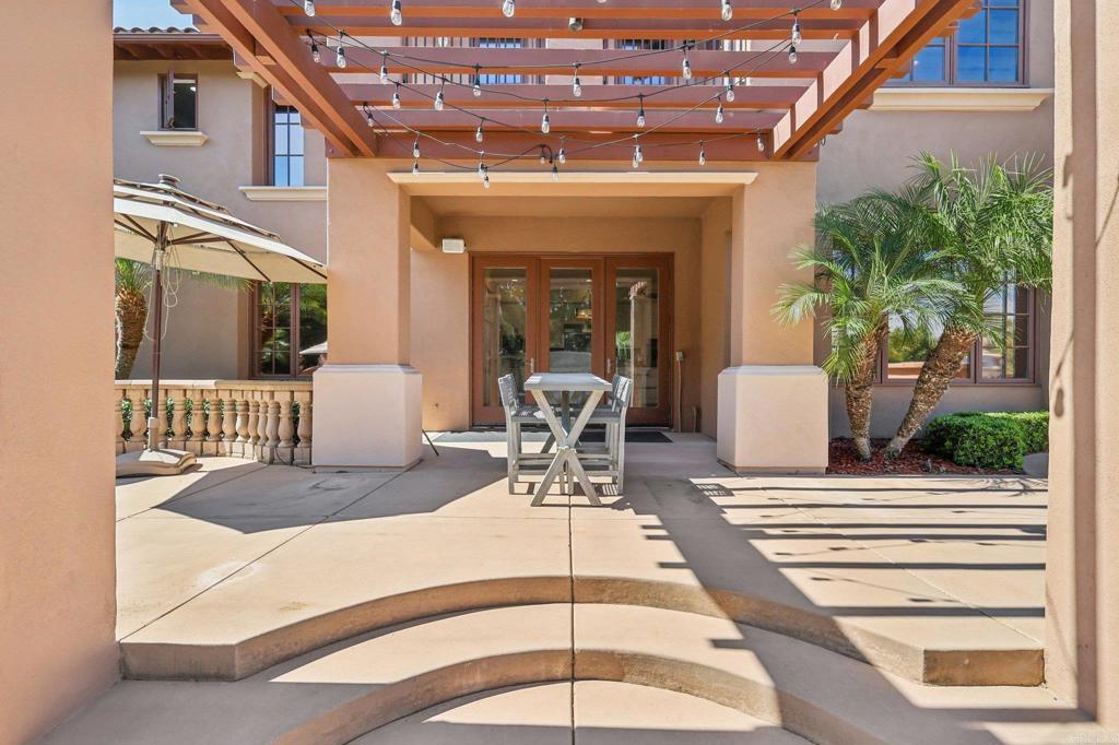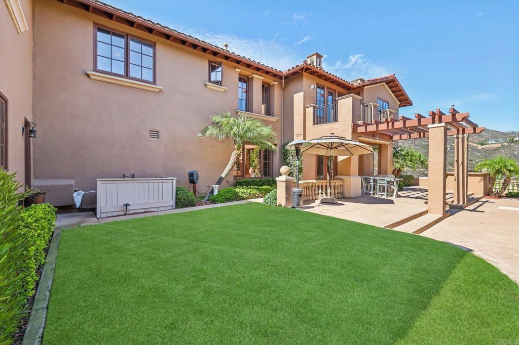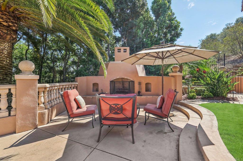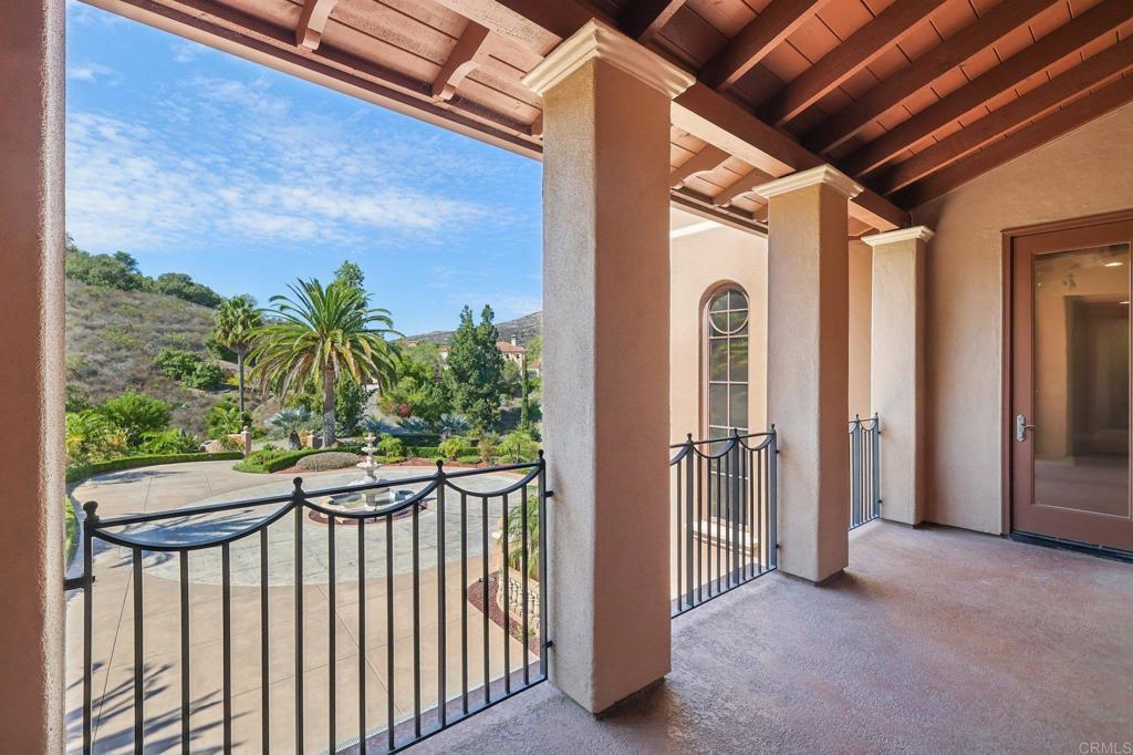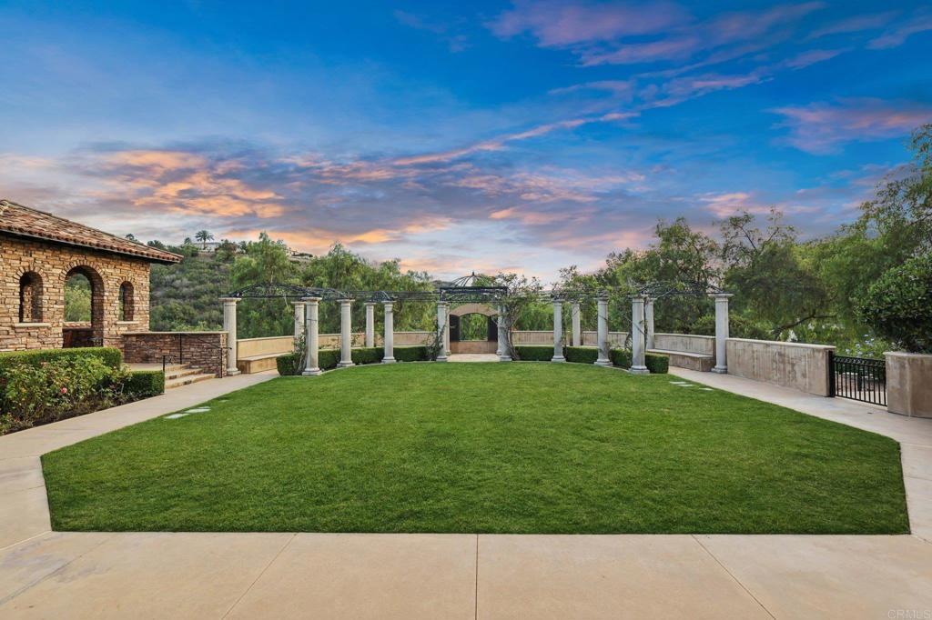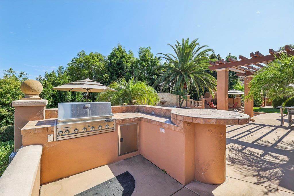 This private Mediterranean estate is set on an elevated 1.13-acre lot with sweeping mountain views at the end of a cul-de-sac in the prestigious guard-gated Cielo community within the highly sought-after R Roger Rowe School boundaries. Main residence offers 5 bedrooms, 3.5 baths, theater room, office, upstairs bonus room, along with an attached ADU that has a bedroom and bath. Grand driveway ascends to a circular motor court, where a meticulously landscaped yard and stunning fountain create a dramatic stage for arrival. Soaring two-story foyer with hardwood floors and a sweeping staircase welcome you. Formal living room has a fireplace framed by arched doorways, while the neighboring office is finished with custom built-ins. Kitchen features white cabinetry, a large center island, premium appliances, and daily dining that flows seamlessly into the family room with fireplace. Formal dining room and powder room complete the main level. Upstairs, primary suite offers a fireplace with raised hearth, private balcony, a spa-inspired bath with dual vanities, soaking tub, walk-in shower, and an expansive walk-in closet. Three additional bedrooms, 2-baths, laundry room, and bonus room complete the main residence. Attached ADU has a private entrance, full kitchen, living room, bedroom, and bath. Backyard is designed for entertaining with an oversized spa and cascading water feature, built-in BBQ island, fireplace, pergola, and multiple seating areas all surrounded by lush landscaping and mountain views. Entertainment continues with a private theater with separate exterior access. Additional highlights include 10KW owned solar system, 3-car garage, 2 tankless water heaters, EV charger, and wired for sound in select areas of the home with built-in speakers. Enjoy 24-hour guard-gated security, resort style amenities including a clubhouse, fitness center, pool, spa, tennis courts, pickleball, volleyball, basketball, & playgrounds.