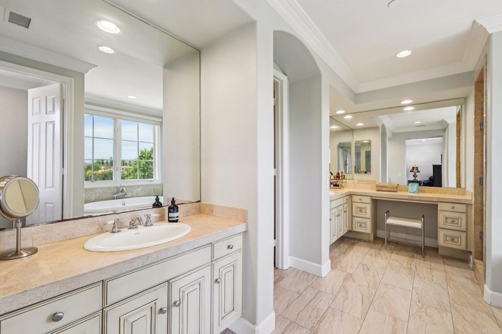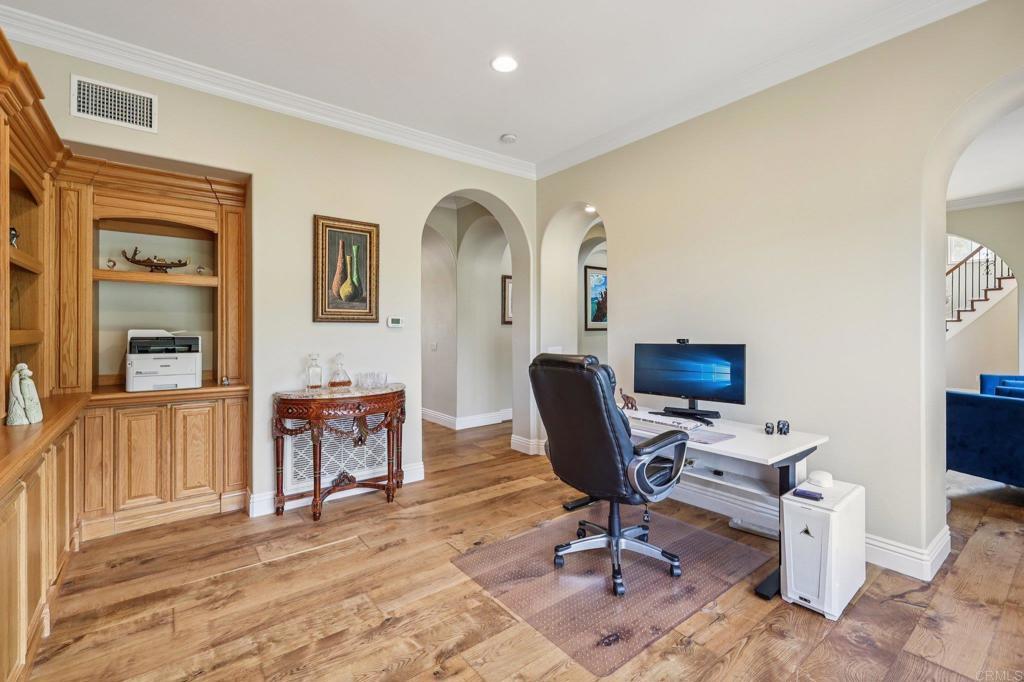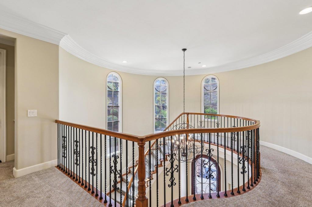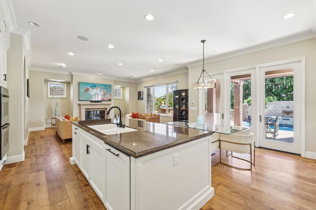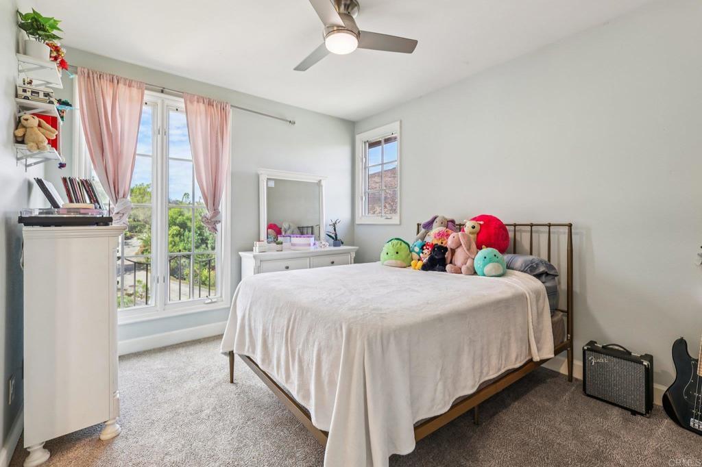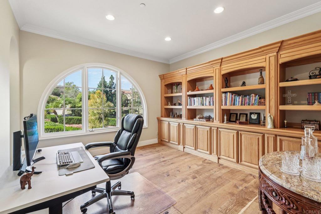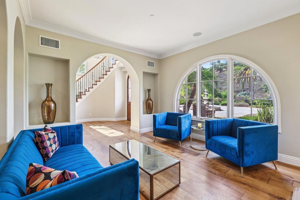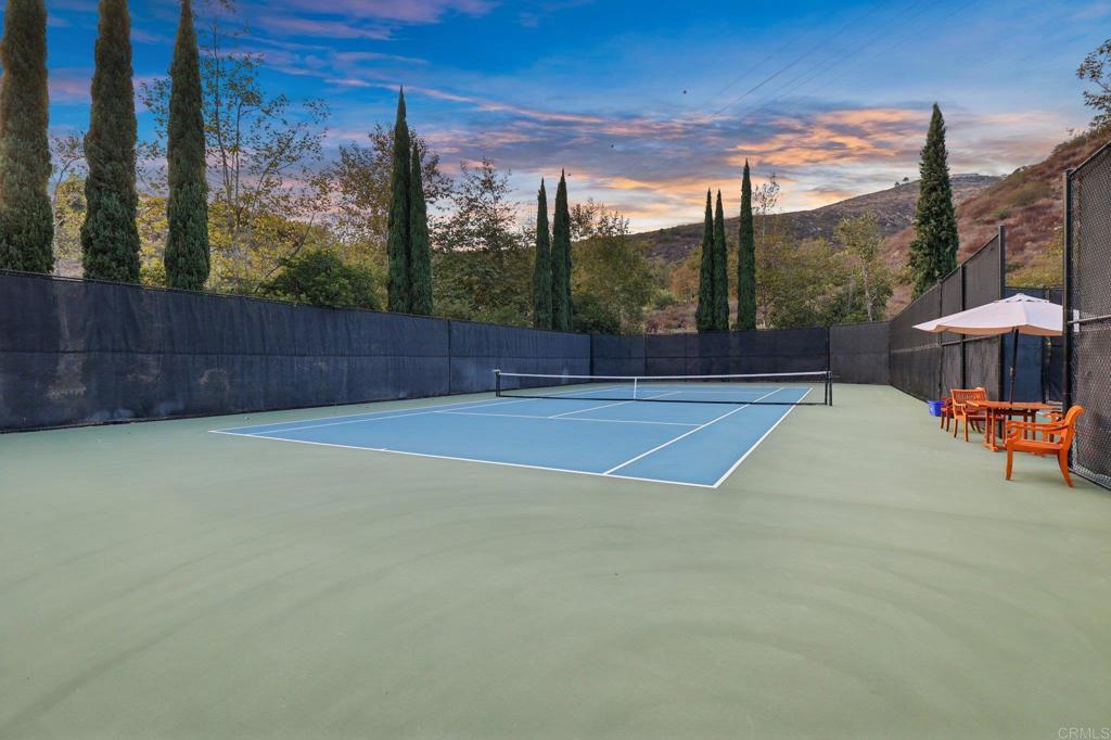 This private Mediterranean estate is set on an elevated 1.13-acre lot with sweeping mountain views at the end of a cul-de-sac in the prestigious guard-gated Cielo community within the highly sought-after R Roger Rowe School boundaries. Main residence offers 5 bedrooms, 3.5 baths, theater room, office, upstairs bonus room, along with an attached ADU that has a bedroom and bath. Grand driveway ascends to a circular motor court, where a meticulously landscaped yard and stunning fountain create a dramatic stage for arrival. Soaring two-story foyer with hardwood floors and a sweeping staircase welcome you. Formal living room has a fireplace framed by arched doorways, while the neighboring office is finished with custom built-ins. Kitchen features white cabinetry, a large center island, premium appliances, and daily dining that flows seamlessly into the family room with fireplace. Formal dining room and powder room complete the main level. Upstairs, primary suite offers a fireplace with raised hearth, private balcony, a spa-inspired bath with dual vanities, soaking tub, walk-in shower, and an expansive walk-in closet. Three additional bedrooms, 2-baths, laundry room, and bonus room complete the main residence. Attached ADU has a private entrance, full kitchen, living room, bedroom, and bath. Backyard is designed for entertaining with an oversized spa and cascading water feature, built-in BBQ island, fireplace, pergola, and multiple seating areas all surrounded by lush landscaping and mountain views. Entertainment continues with a private theater with separate exterior access. Additional highlights include 10KW owned solar system, 3-car garage, 2 tankless water heaters, EV charger, and wired for sound in select areas of the home with built-in speakers. Enjoy 24-hour guard-gated security, resort style amenities including a clubhouse, fitness center, pool, spa, tennis courts, pickleball, volleyball, basketball, & playgrounds.