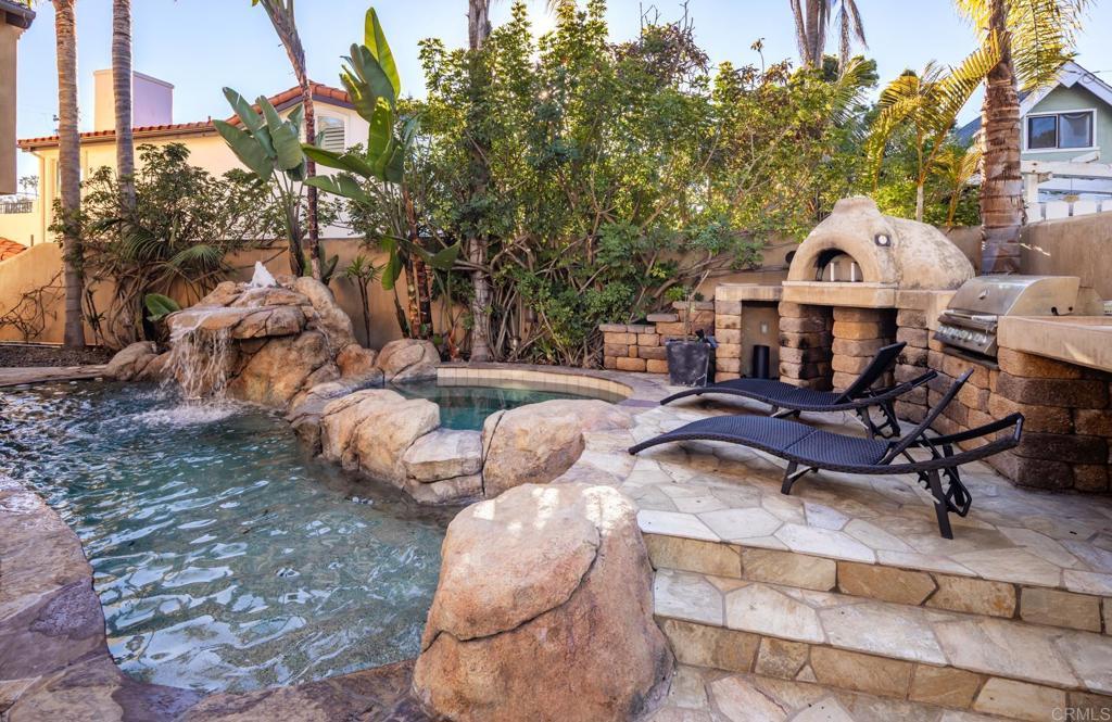 Location is everything! Blocks from Moonlight Beach and historic downtown Encinitas, this is an exquisite property. The unique architectural details, exceptional amenities, and skillfully designed lot give it a tranquil, secluded feel. Step through the arching doorway into an expansive open-concept layout featuring elegant tile and hardwood flooring. The living and dining spaces are perfect for gatherings and adjacent to a gourmet chef’s kitchen outfitted with top-tier Viking and Sub-Zero appliances. Additionally, there is a spacious bedroom and two bathrooms on the main level for guests. High-end custom doors and windows, craftsman-style additions, advanced HVAC systems, and a tankless water heater shows dedication to quality.Upstairs, the airy Jack and Jill bedrooms offer a south-facing balcony in one and a loft in the other. The expansive master suite spans over 1,000square feet, featuring a cozy retreat area, a luxurious bathroom with double vanities, a spa tub, a walk-in closet, and a private balcony overlooking the serene backyard pool. The outdoor space is a true haven, adorned with mature tropical landscaping, a saltwater pool and spa, a waterfall, a BBQ area, a pizza oven, and an outdoor shower. Additional features include an RV driveway with electrical hookups, a two-car garage, and a fully fenced yard.This property is one of a kind and could not be recreated today. Do not miss out on this rare opportunity!