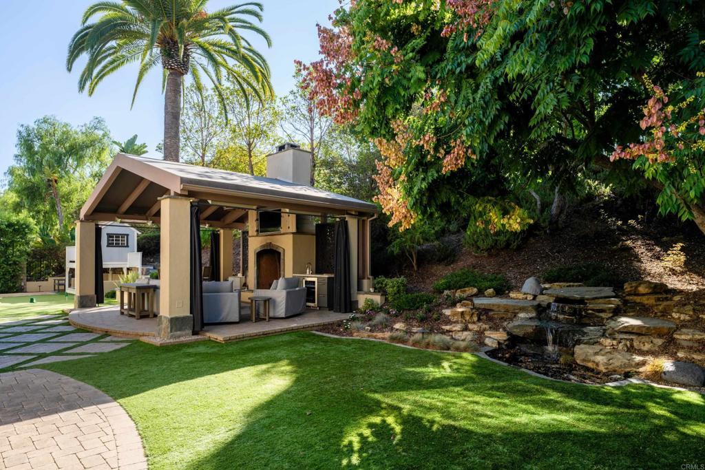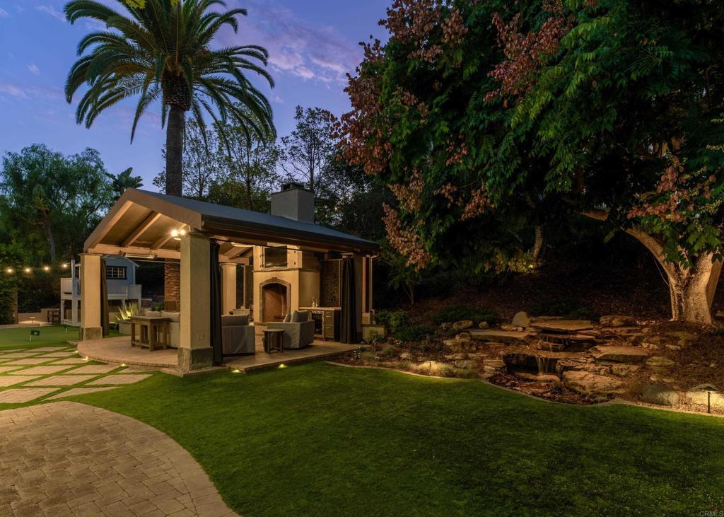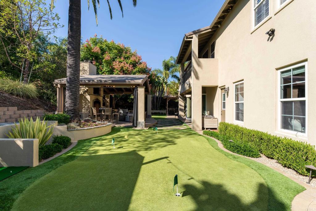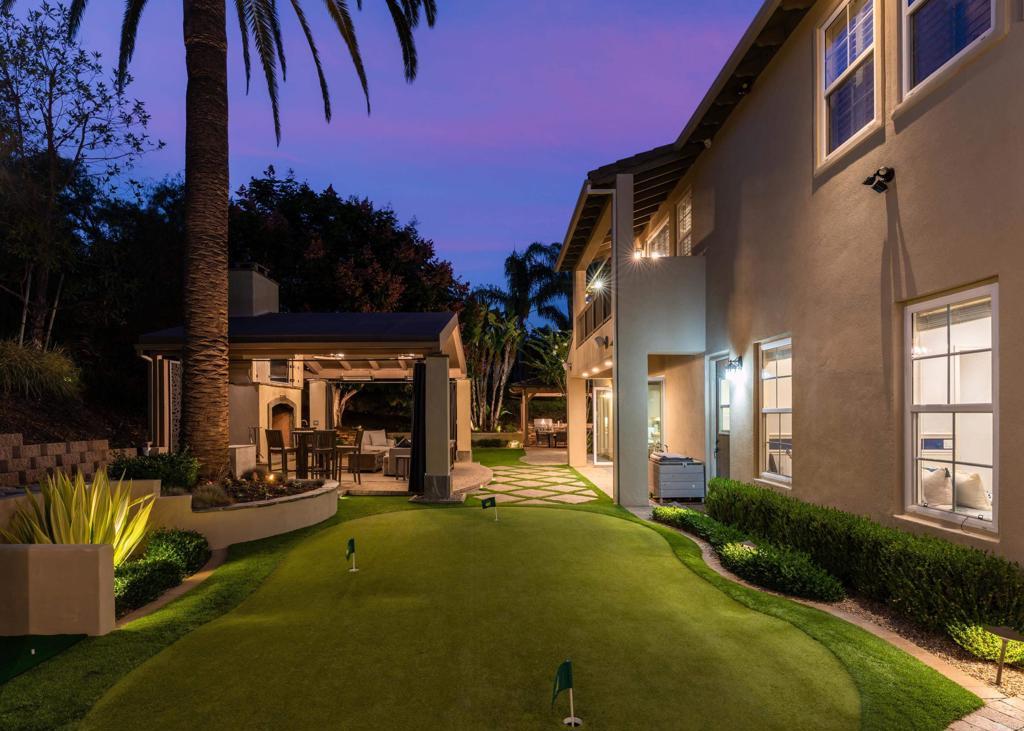 An exceptional residence in the prestigious gated community of Mirasol, just moments from the charm and amenities of Santaluz. Set on over half an acre, this over 5,000 sq ft estate blends timeless design with modern upgrades, creating a private retreat designed for elevated everyday living and seamless entertaining. At the heart of the home is a beautifully remodeled open-concept kitchen and family room, where bi-folding glass doors open to a spectacular covered outdoor living area—complete with fireplace, built-in BBQ, media, ceiling-mounted heaters, and multiple seating and dining spaces for year-round enjoyment. The chef’s kitchen features a massive center island, high-end appliances, and double ovens. Upstairs, the primary suite is a tranquil escape with a spa-style steam shower, soaking tub, and a spacious walk-in closet. Outdoor amenities include a solar-heated saltwater pool and spa, lush mature landscaping, multiple entertaining zones, and a custom putting green by Back Nine Greens. The attached guest casita with a private entrance offers flexibility for long-term guests or multigenerational living. Additional features include an owned solar system, whole-home water filtration and softening, a two-car garage plus separate single-car garage, and location within the award-winning Poway Unified School District.