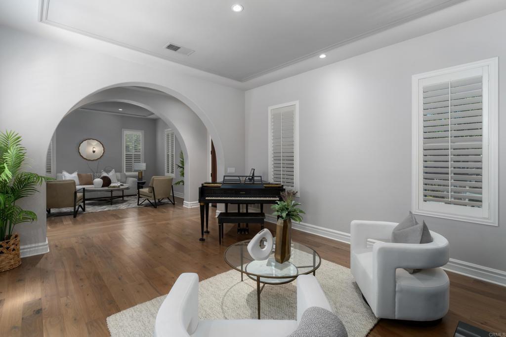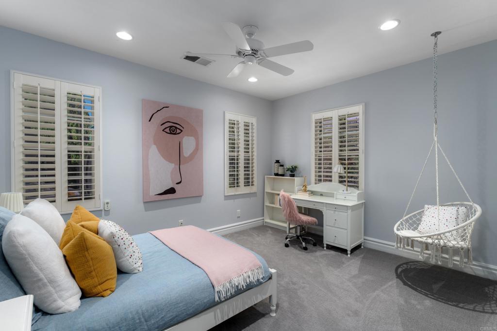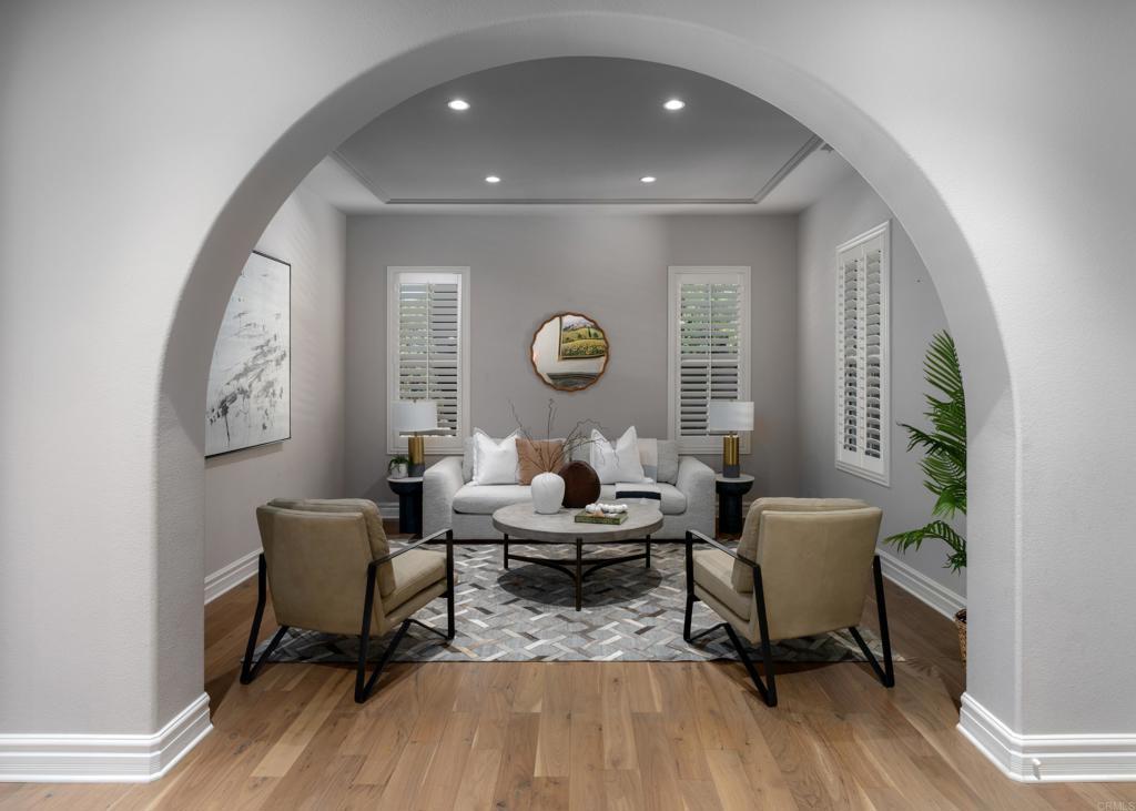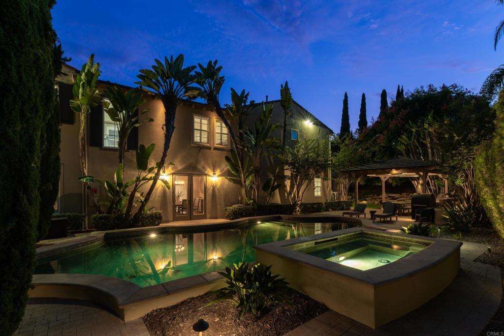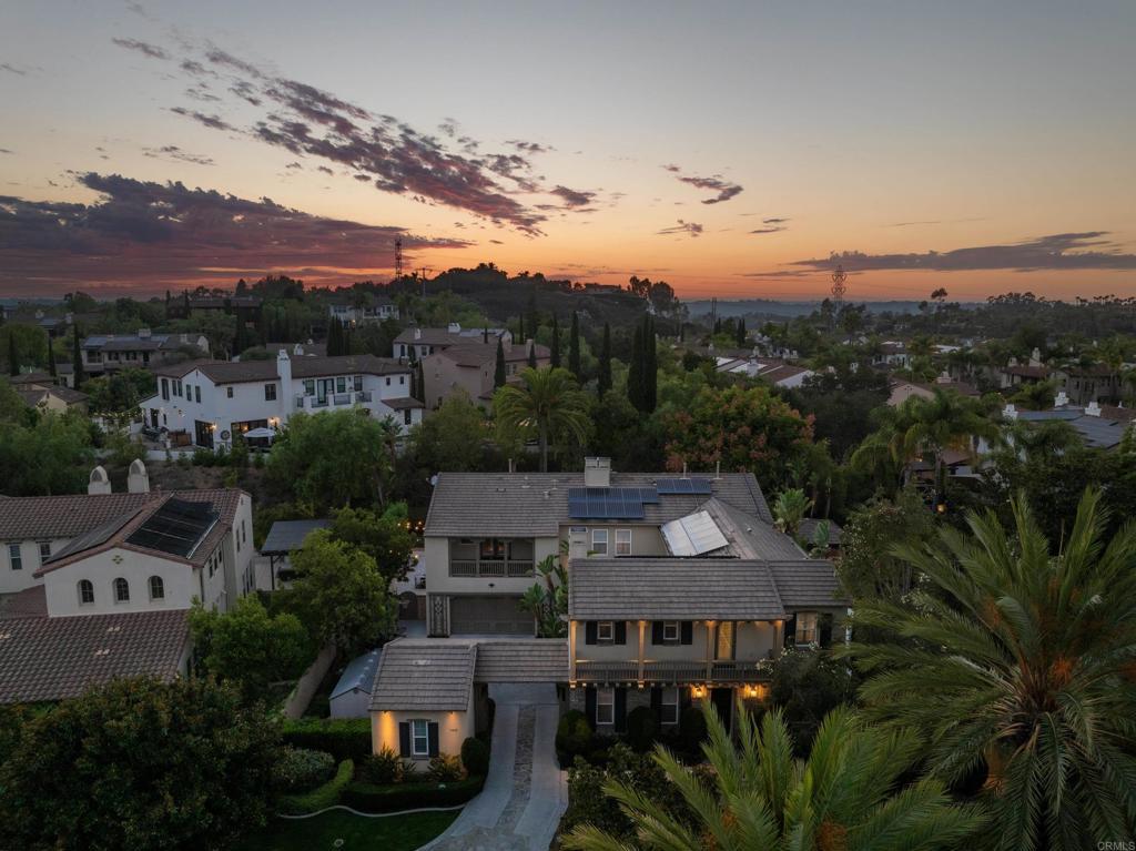 An exceptional residence in the prestigious gated community of Mirasol, just moments from the charm and amenities of Santaluz. Set on over half an acre, this over 5,000 sq ft estate blends timeless design with modern upgrades, creating a private retreat designed for elevated everyday living and seamless entertaining. At the heart of the home is a beautifully remodeled open-concept kitchen and family room, where bi-folding glass doors open to a spectacular covered outdoor living area—complete with fireplace, built-in BBQ, media, ceiling-mounted heaters, and multiple seating and dining spaces for year-round enjoyment. The chef’s kitchen features a massive center island, high-end appliances, and double ovens. Upstairs, the primary suite is a tranquil escape with a spa-style steam shower, soaking tub, and a spacious walk-in closet. Outdoor amenities include a solar-heated saltwater pool and spa, lush mature landscaping, multiple entertaining zones, and a custom putting green by Back Nine Greens. The attached guest casita with a private entrance offers flexibility for long-term guests or multigenerational living. Additional features include an owned solar system, whole-home water filtration and softening, a two-car garage plus separate single-car garage, and location within the award-winning Poway Unified School District.