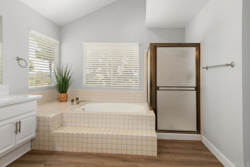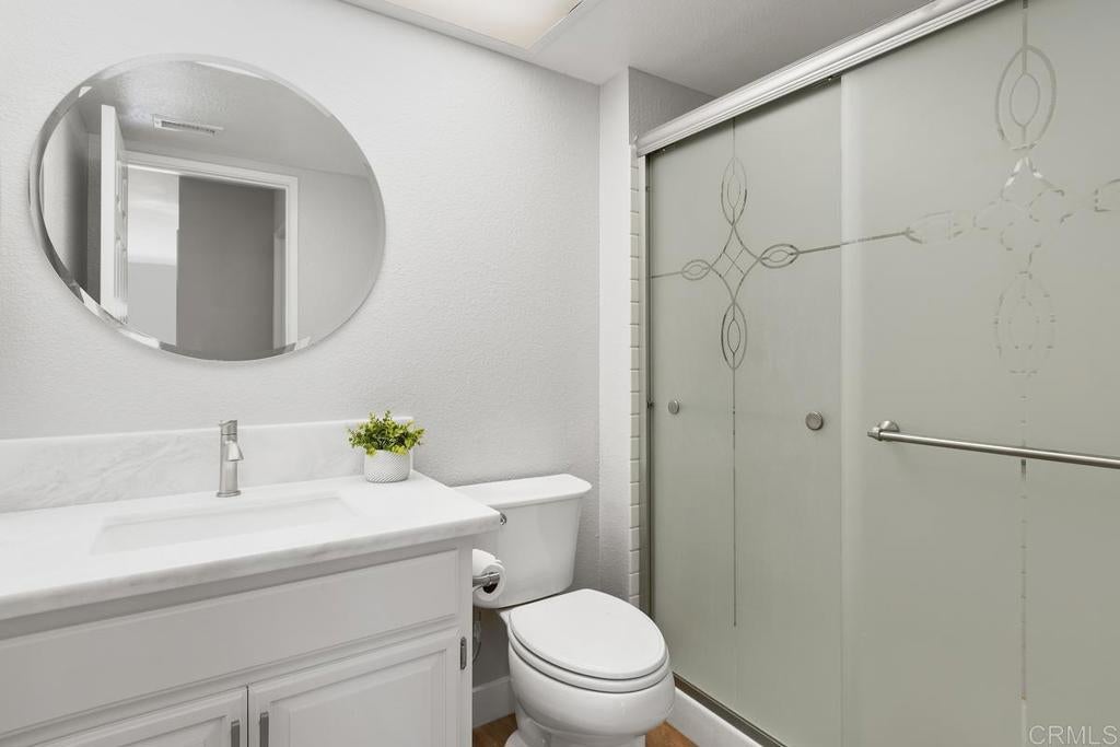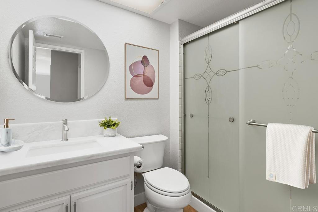 Private Westward Views & Sunsets Above Stagecoach Park. Updated from floor to ceiling, this La Costa Knolls home offers a rare west-facing orientation with sweeping private views over Stagecoach Park. Golden-hour sunsets fill the patio, living room, and primary suite, creating an unmatched daily backdrop. The flexible floor plan includes a main-level bedroom with full bath and low-step shower -- perfect for multi-generation living, private guest suite, or office. Vaulted ceilings enhance the living and dining areas, while the remodeled kitchen features new KitchenAid appliances, stunning stone counters, and a bright breakfast nook. The family room with fireplace opens to the yard for entertaining against a sunset view. Upstairs, the primary suite boasts a private view deck, oversized walk-in closet, and spa-style bath. Two additional bedrooms and ample storage complete the second floor. Steps from Stagecoach Park and La Costa Canyon High School. Walking distance to shopping, dining, banking, and 24 Hour Fitness. No HOA and No Mello Roos.