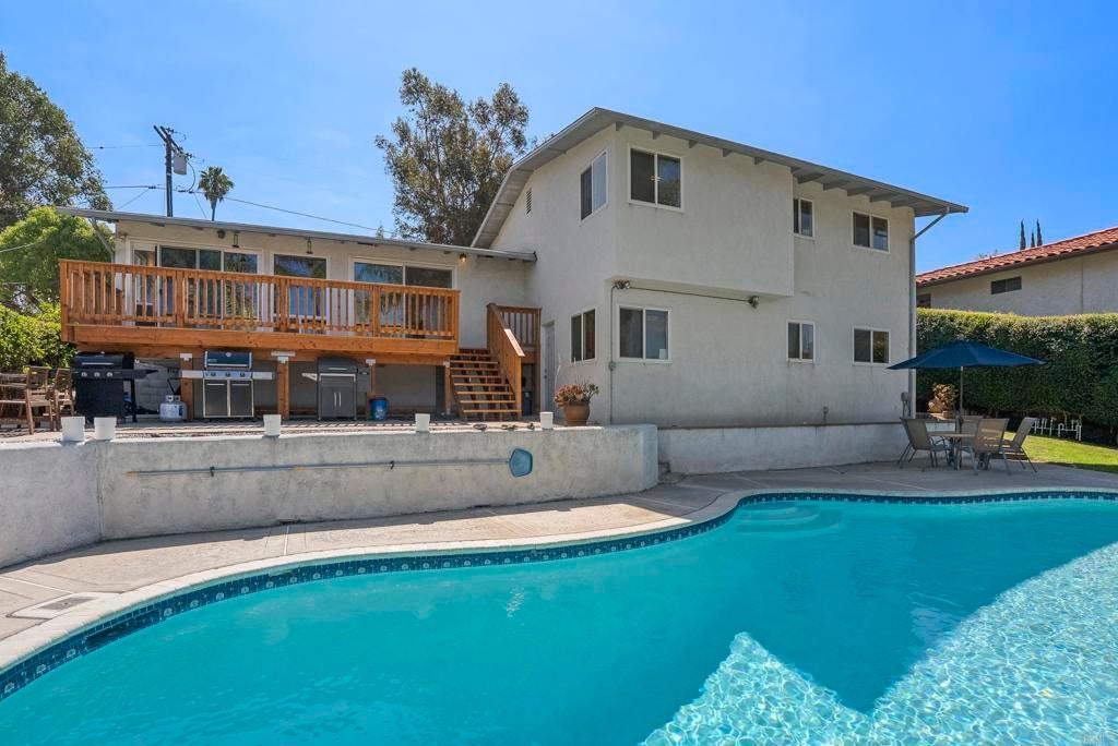 Discover your own private paradise in Fletcher Hills—where panoramic views, a sparkling pool, and expansive outdoor living areas create the perfect retreat. Spacious 4-bedroom, 2-bath split-level home offers 1,920 SF of living space on a rare 16,000 SF usable lot. Home is tucked away on a quiet cul-de-sac for ultimate privacy. Step inside to find a warm and inviting living room with a cozy wood-burning fireplace, skylights, vaulted ceilings, and double-pane windows that bring in natural light. The family room showcases mid-century wood beam ceilings, adding to the home’s character. The upgraded kitchen is a chef’s dream with a 5-burner gas range, double ovens, wine fridge, newer cabinetry, a large pantry, gorgeous counters, and an eat-at island. The backyard is an entertainer’s paradise. Enjoy the sparkling pool, a brand-new deck with sweeping views, multiple outdoor sitting areas, a fire pit, and a shed for extra storage. Low-maintenance landscaping in the front yard makes upkeep easy. Additional highlights include owned solar, central AC and forced air heat, and plenty of space to relax or host. This home truly blends style, function, and lifestyle in desirable Fletcher Hills location.