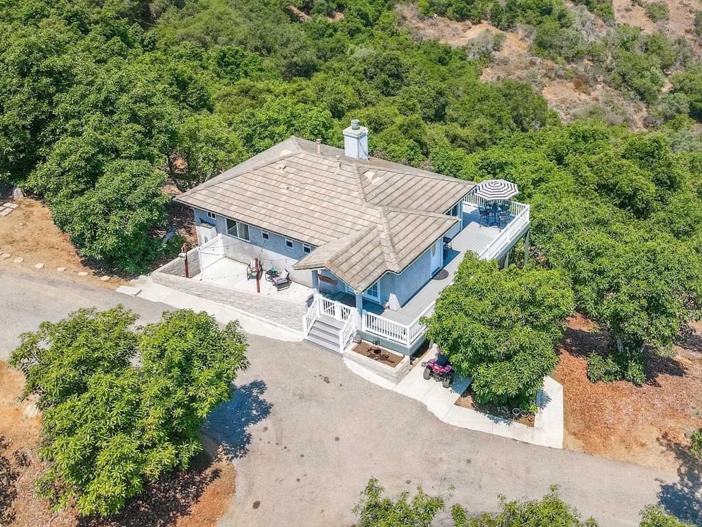 VIEWS + INCOME + FUTURE POTENTIAL! This stunning 22.68-acre avocado grove, planted in 1976 by the East Brothers of Fallbrook, offers long-standing agricultural viability and panoramic mountain views. With approximately 1,200 mature Hass avocado trees (plus pollinators), this operational grove has established irrigation, gated entry, and production history, making it an ideal income-producing investment or boutique farm. Key Features: Approx. 1,200 Hass Avocado Trees, Beautifully-maintained, productive grove with underground PVC irrigation, Profit and loss spreadsheet available; 2025 bin totals in progress, 2" Agricultural Water Meter (Rainbow Municipal Water District) Multiple Graded Pads – ideal for RVs, greenhouses, or potential ADUs, Gated Private Entry with 16’ solar double gate (2020 install), Septic system (1,500-gallon tank) services main home with potential capacity for expansion, Three Access Points from Puerto del Mundo and additional easement from Tecalote/Green St. Bonus – Onsite Cottage: 908 sqft 1BR/1BA Home (Built 2006) Open-concept layout, wraparound deck (rebuilt 2022), ceramic tile throughout, Dual propane fireplace, tankless water heater (2025), new appliances, Unfinished walk-out basement with plumbing/electrical for future expansion or rental Potential Use Cases: STR or long-term rental with home + grove, Hobby farm, equestrian use, or boutique agriculture, Lot split for 4-acre parcels (due to slope; buyer to verify), Ideal 1031 Exchange opportunity or income-holding investment