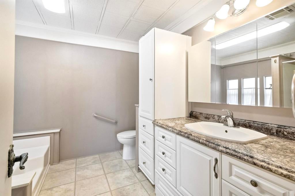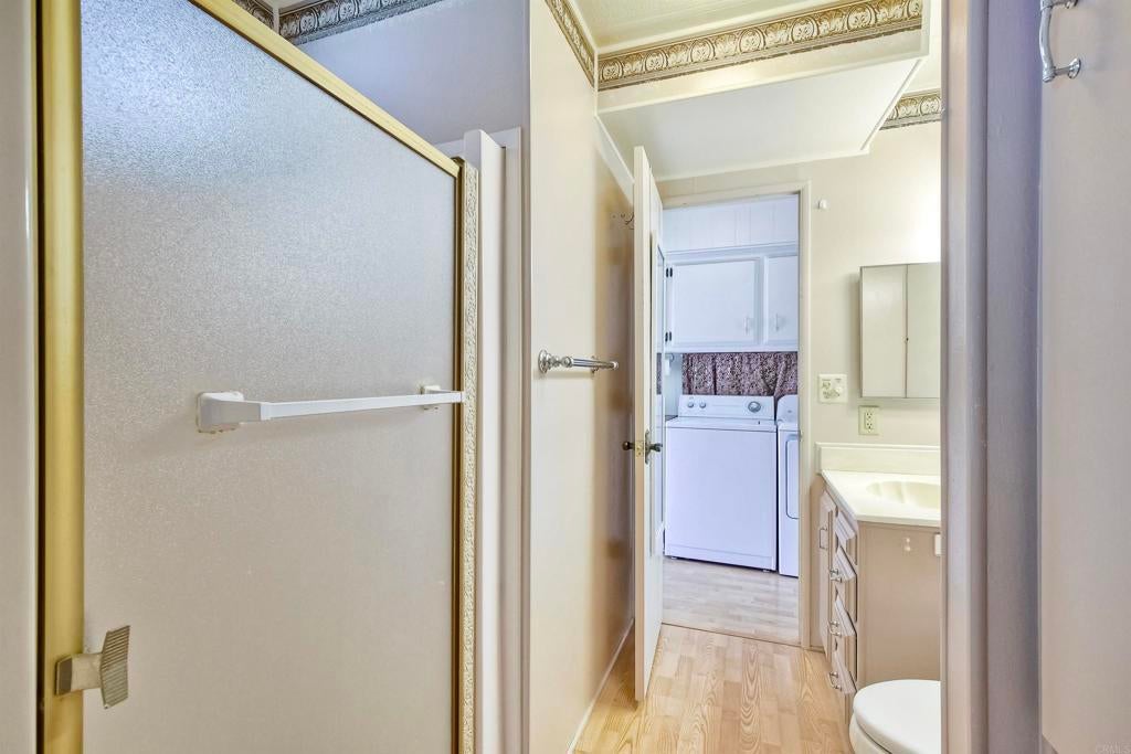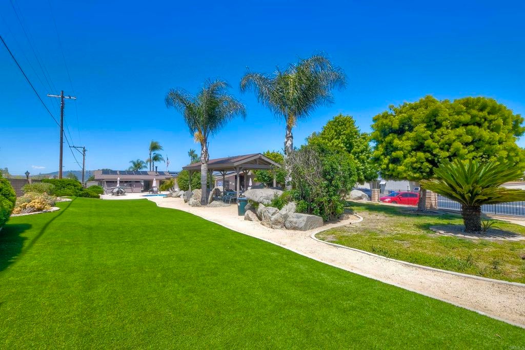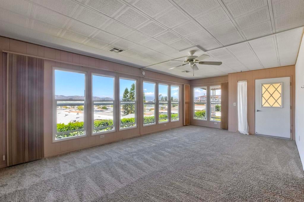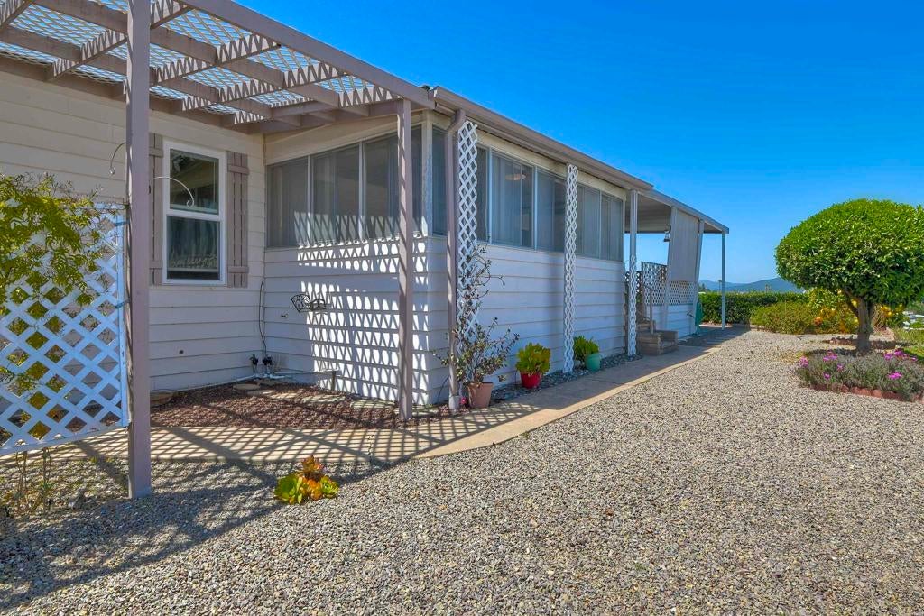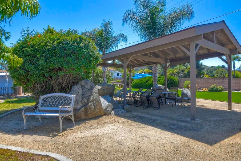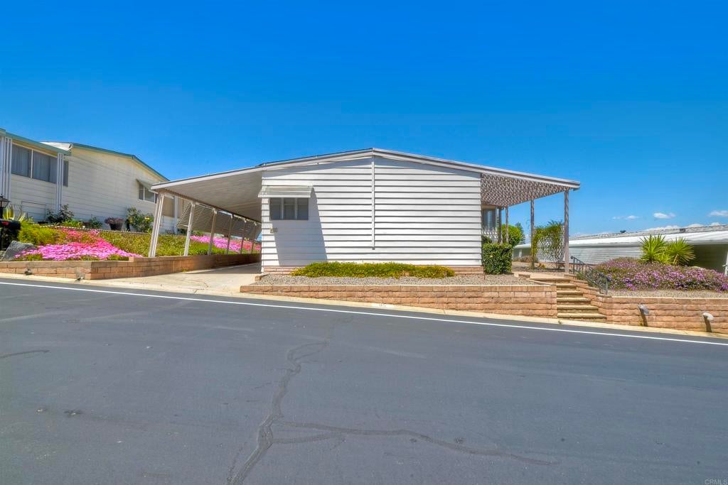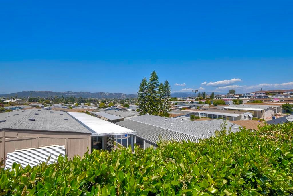 Nestled high on the hill this fantastic home has great views of the mountains in the distance. Light and bright inside, the layout is spacious with a bonus attached room with lots of windows, offering a nice breeze and great location in the park. New carpet and a roof that is 3 years young. La Moree Estates is a 55 plus community where residents own the land. The HOA fee includes a community pool, clubhouse, RV parking (if available), water, trash, sewer and cable. Conveniently located to shopping, 78 freeway, Palomar and Kaiser hospitals.