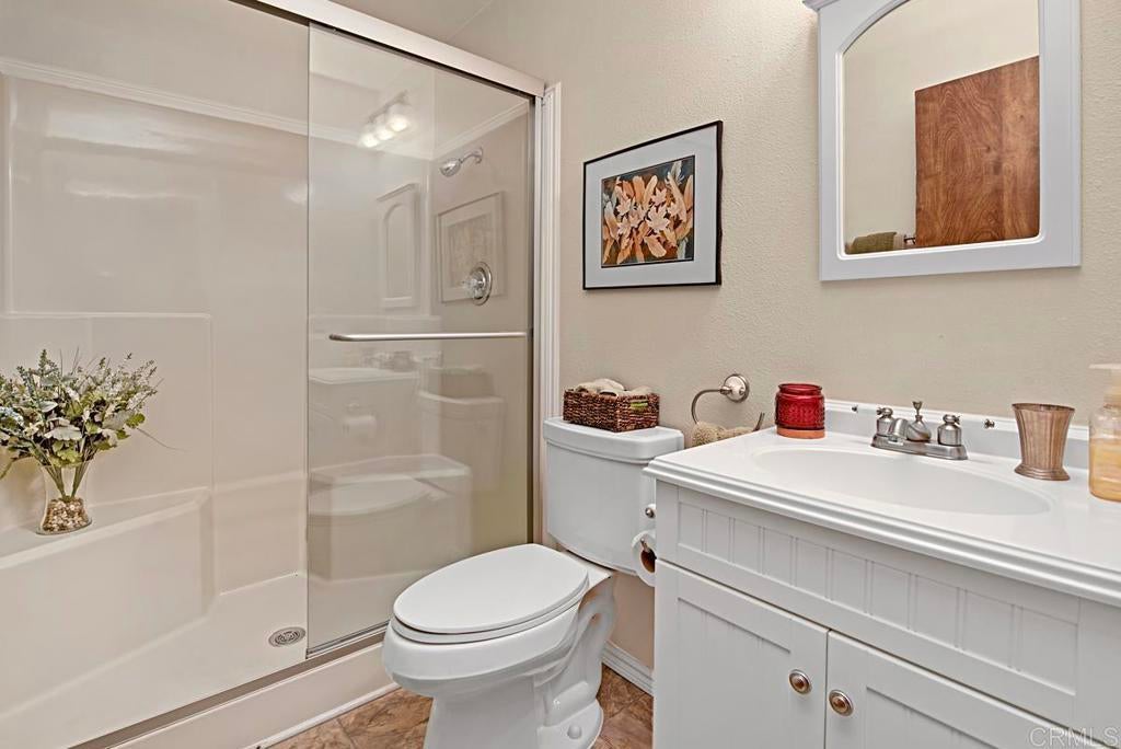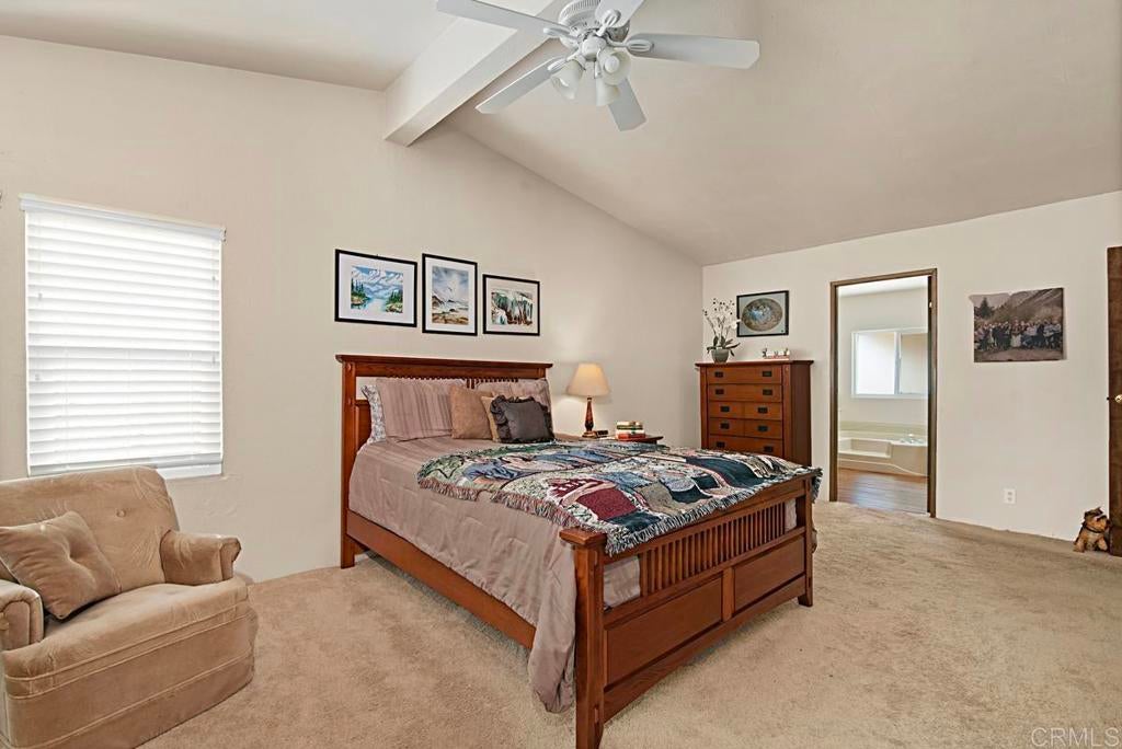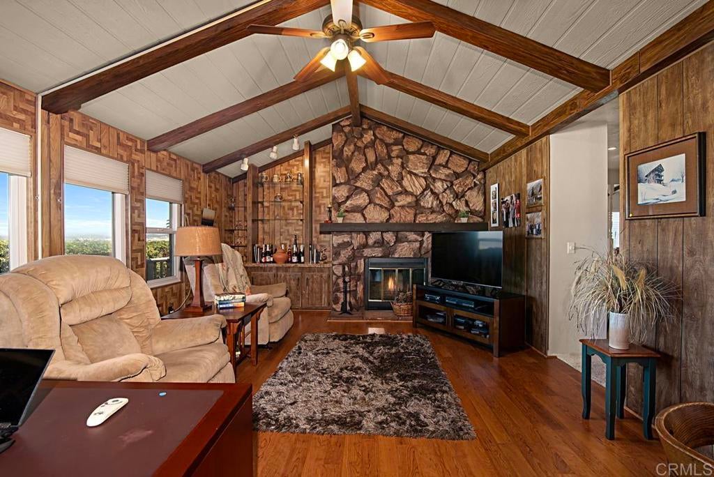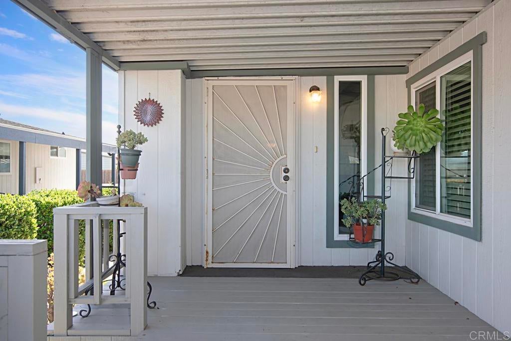 Panoramic VIEW property located on an elevated lot on a cul-de-sac within a 55+ resort style community w/ rent control. Private wrap around deck with sweeping views to the North East. This roomy 1840 sq. ft. home gives enough space for a formal Dining area, Family room and Living room with fireplace. Newer HVAC, water heater, and refrigerator. Vaulted beamed ceilings and vinyl windows enhance the richness of the color palette. The Primary Bedroom has a large walk in closet and ensuite Bathroom with a large soaking tub and separate step in shower. The laundry room is oversized with an extra pantry, storage cabinets and counter space. There is also an enclosed porch that can serve as an office or hobby room. Large Storage shed. Rancho Vallecitos is a beautiful, 5-Star, resort style community for persons 55 years of age and over (2nd resident can be age 45+). One of the most beautiful manufactured home communities in California, Rancho Vallecitos has great views that can be enjoyed throughout the community, plus many social activities and amenities. Amenities include a clubhouse/recreation building, pool & spa, library, gym, billiards room, card tables, game and craft room, putting green, dog park, RV parking for an additional cost, and so much more! Monthly space rent is $740 and park is under city rent control.