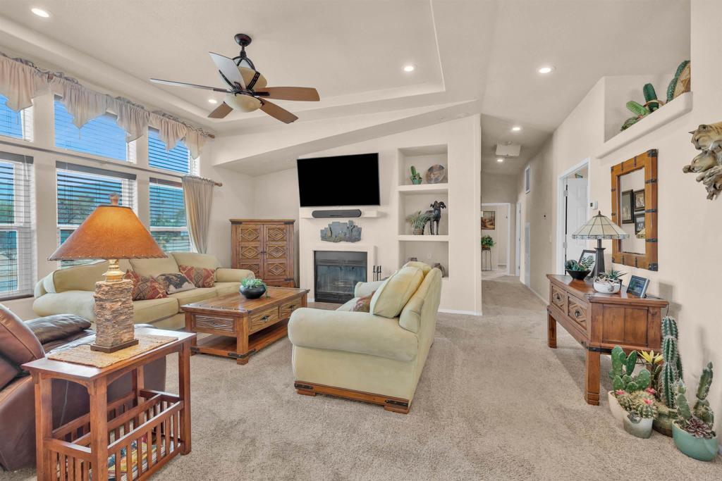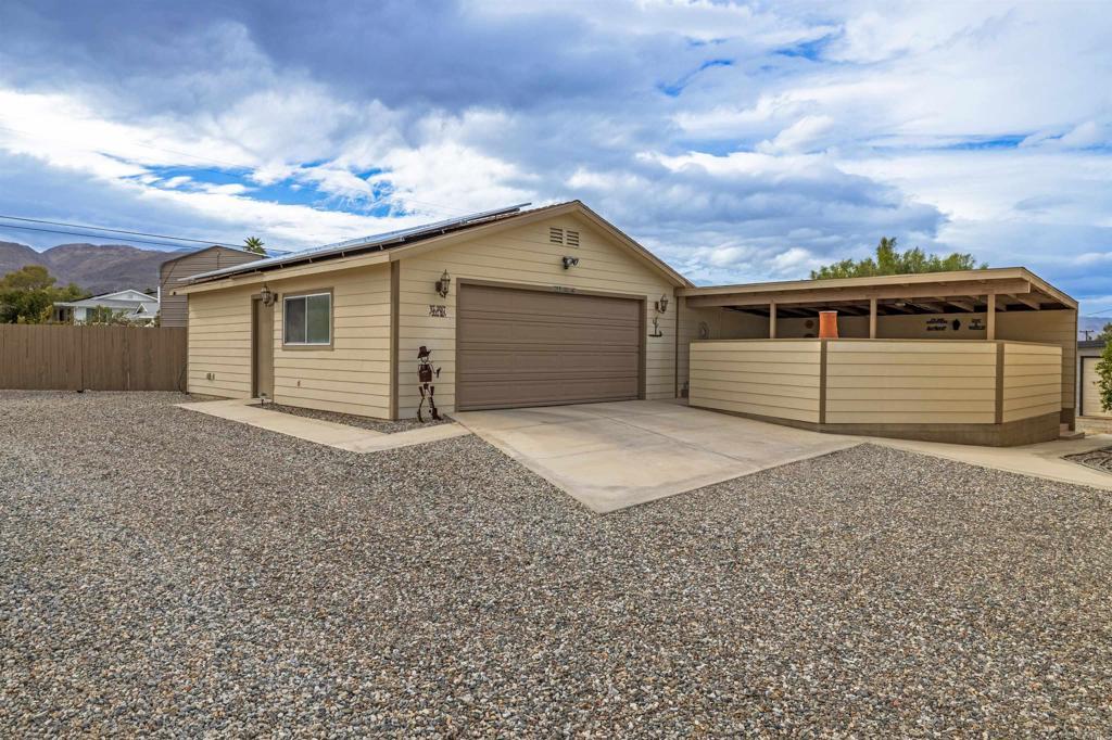3 bedroom, 2 bath home with owned solar, detached 2 car garage, and motorhome garage. Living room offers a fireplace and vaulted ceilings and windows that offer nice light. Nicely maintained and well designed with covered front porch, concrete walkways and landscaping as well as covered patio area in the backyard for entertaining. Adjacent lot also included in sale.