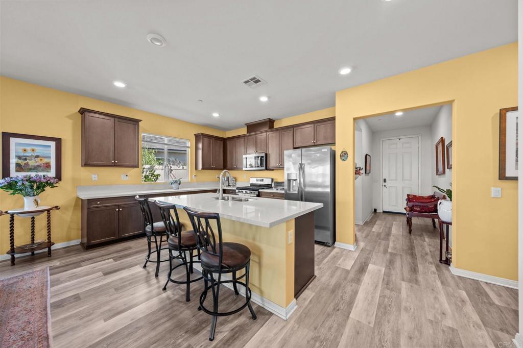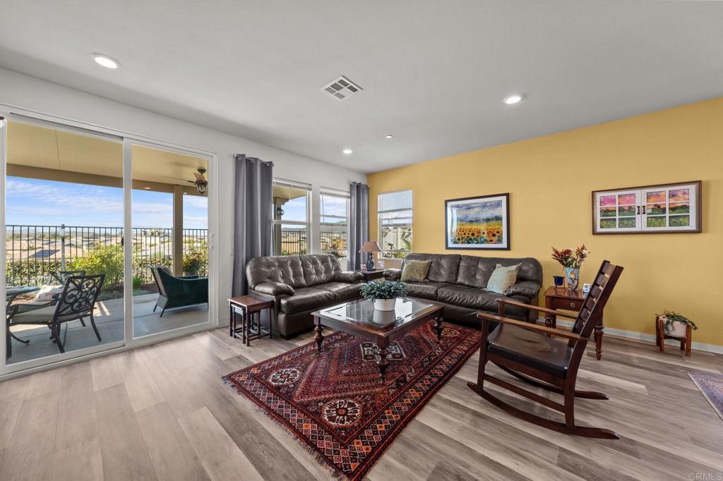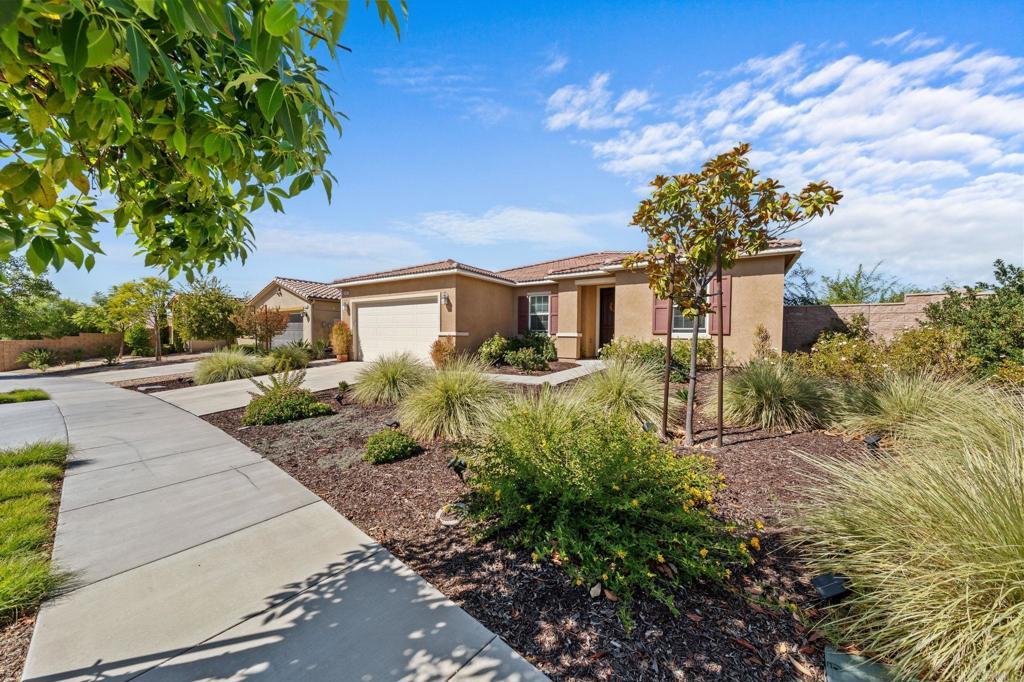 Welcome to your dream home in the heart of Winchester, CA! This beautifully maintained 3-bedroom, 2-bathroom residence offers 2,091 square feet of comfortable living space, thoughtfully designed with an open floor plan that’s perfect for modern living and effortless entertaining. The heart of the home is a gorgeous, upgraded kitchen featuring sleek finishes and ample counter space, opening seamlessly to the dining and living areas. Step outside to your own private entertainer’s paradise—an inviting patio complete with a cozy fire pit, ideal for enjoying cool evenings under the stars. Also boasting mature fruit trees including apple, orange, tangerine, and lemon, along with two water fountains that enhance the peaceful atmosphere. What truly sets this home apart are the breathtaking, unobstructed panoramic mountain views from every rear window—no neighbors behind, just serene natural beauty. The community is quiet, friendly, and meticulously kept, with low HOA fees and the added bonus of leased solar for energy efficiency. Even the garage is a standout, featuring a durable epoxy floor for a clean, polished look. Located in a highly desirable area with close proximity to shopping and dining, this home offers a rare blend of peaceful retreat and convenience. Don’t miss the opportunity to own this incredible property—homes with views like this don’t come along often!