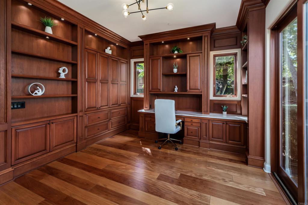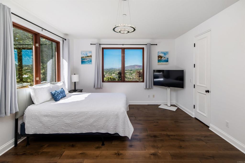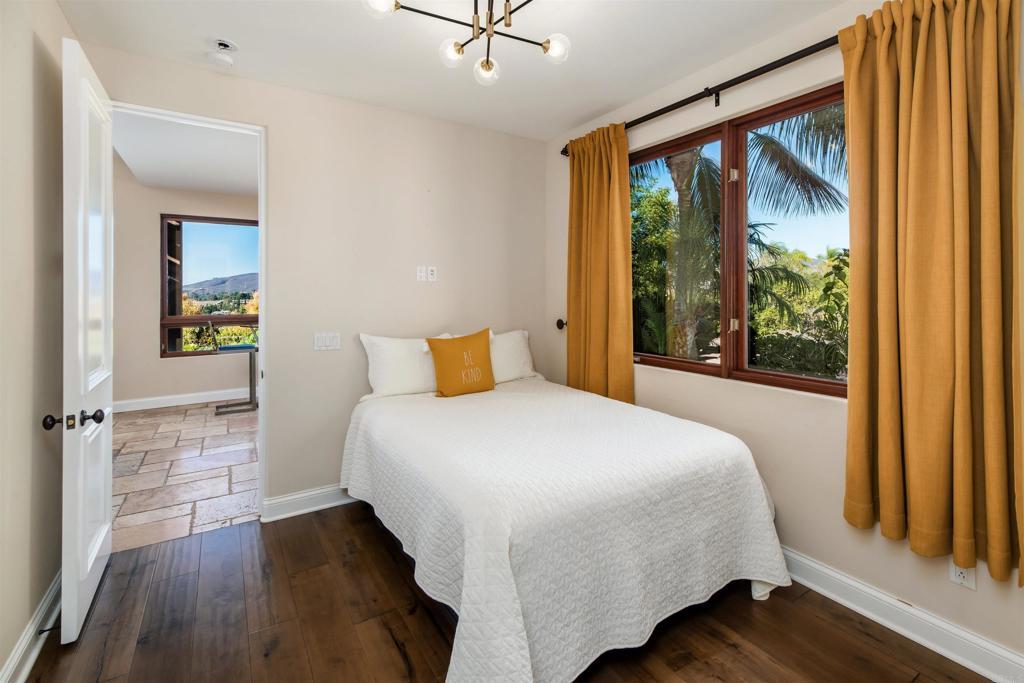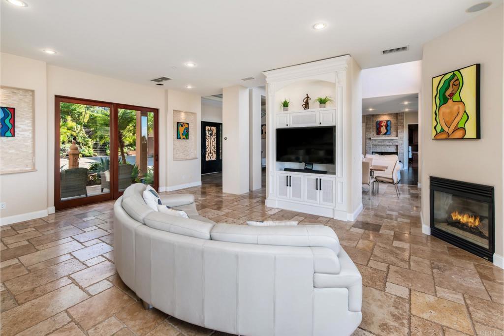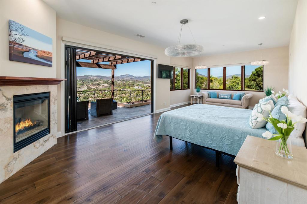 Perched to capture breathtaking views of Rancho Santa Fe, this remarkable estate in the prestigious gated community of The Groves is the epitome of refined luxury living. With only 39 residences in the community, exclusivity and privacy are unmatched. The main residence features five bedrooms and six bathrooms, with all upstairs bedrooms offering en suite baths, plus a spacious bonus room and a gorgeous office with custom cabinetry. A separate 1BR/1BA guest home is a fully functioning unit complete with a kitchenette—ample storage, microwave, a two-burner stovetop, and even a compact dishwasher—offering comfort and independence for visitors. The open floor plan is ideal for modern living and entertaining. The kitchen is a chef’s dream, outfitted with premium Viking appliances, including a built-in refrigerator, an 8-burner commercial-style stove, dual dishwashers, and a warming drawer. From there, the flow continues through elegant living and dining spaces to patios and terraces that frame wide-open views. Upstairs, the primary suite opens to an expansive private terrace through dramatic bi-fold doors. Step outside and experience your own retreat, where sweeping panoramic vistas of the Rancho Santa Fe hills create a setting as tranquil as it is majestic. Set on 1.23 acres of lush grounds, the property includes mature landscaping, an orchard with abundant fruit trees, a lush lawn, and resort-style amenities. An infinity-edge pool and spa, built-in BBQ, outdoor fireplace, and fire pit provide endless opportunities to relax or entertain beneath the California sun. The home also features an oversized four-car garage with a convenient drive-through design—perfect for a car collection, additional storage, or flexible workshop space. The views are truly remarkable. From the backyard to the pool to the terraces above, the estate was designed to embrace the natural beauty of Rancho Santa Fe’s rolling hills from every vantage point. Located just minutes from multiple highly regarded golf courses, fine dining, boutique shopping, and pristine coastal beaches, this estate blends tranquility with accessibility. It also falls within the boundaries of the highly acclaimed Roger Rowe Elementary and Middle schools, consistently top-ranked for academic performance. This home is truly one-of-a-kind—an exclusive retreat that balances timeless elegance with the very best of Rancho Santa Fe living. For those who expect nothing less than extraordinary, this estate delivers.