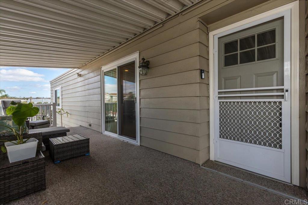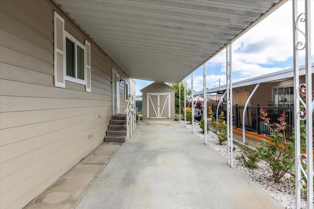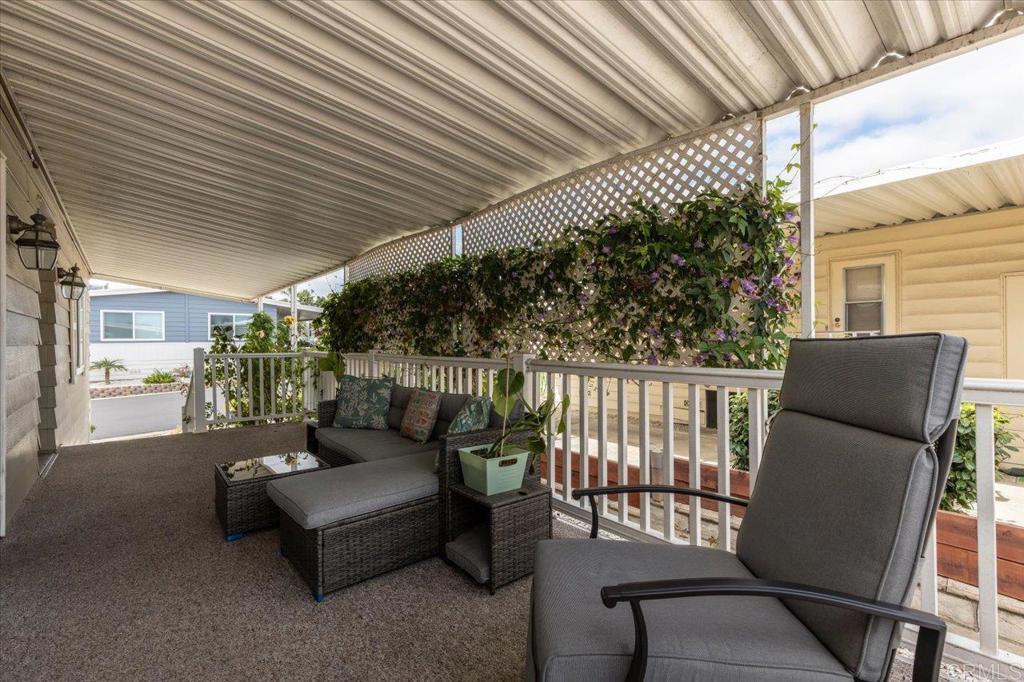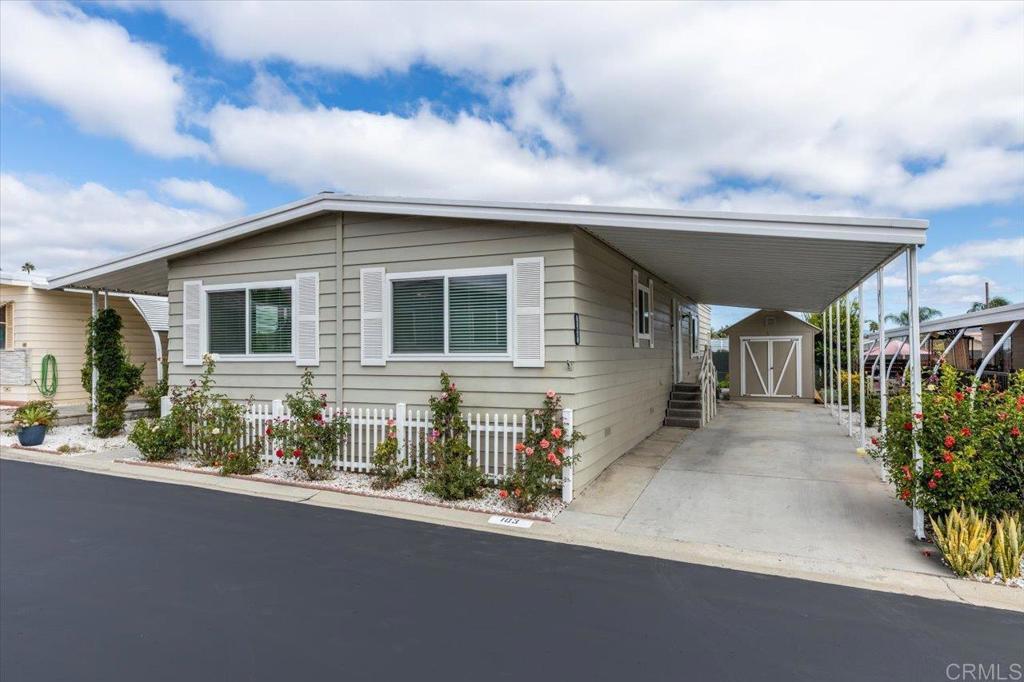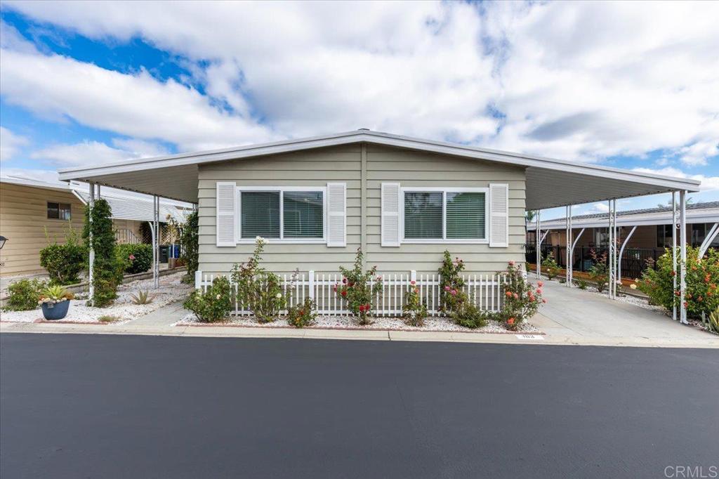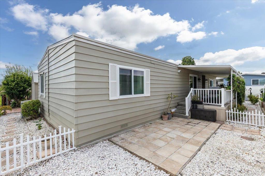 Lovely and unique remodeled 2 bed / 2 bath located in a 55+ rent controlled park with NO property taxes (home is still on HCD registration). Tucked away on a cul-de-sac near the Tennis Courts and other amenities, this home boasts a remodeled Kitchen and Bathrooms, new water heater (2025), vaulted ceilings in the Living room and Dining room, dual pane windows, newer interior doors and fixtures, and a separate office space. The Primary Suite boasts double sinks, a walk in closet, and a spacious custom step in shower. The second Bedroom also has it's own ensuite Bathroom, which is convenient for guests or roommates. The exterior offers a low maintenance yard, private covered porch, a covered carport that can fit multiple vehicles, and a storage shed. Palomar Estates East is a very active and social 5* community - check out the photos to see some of the amenities this community has to offer! Convenient to shopping, restaurants, Lake San Marcos, two golf courses at Lake San Marcos, another golf course nearby off Twin Oaks, entertainment, lots of parks and trails, the San Marcos Senior Center, and just a short 8 mile drive to Carlsbad beaches! Monthly space rent is only $568.61 and is under rent control!