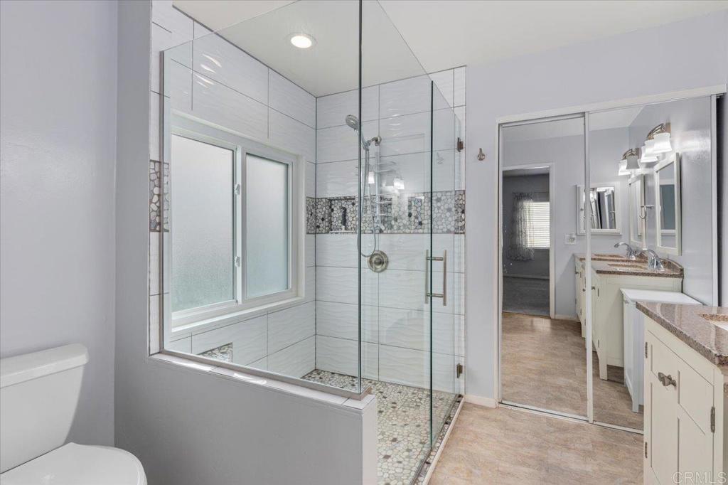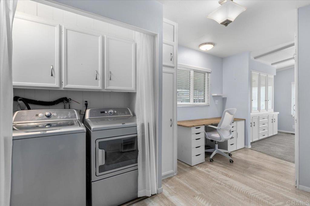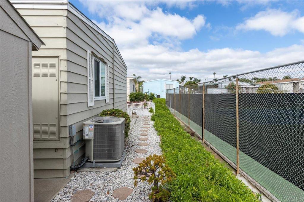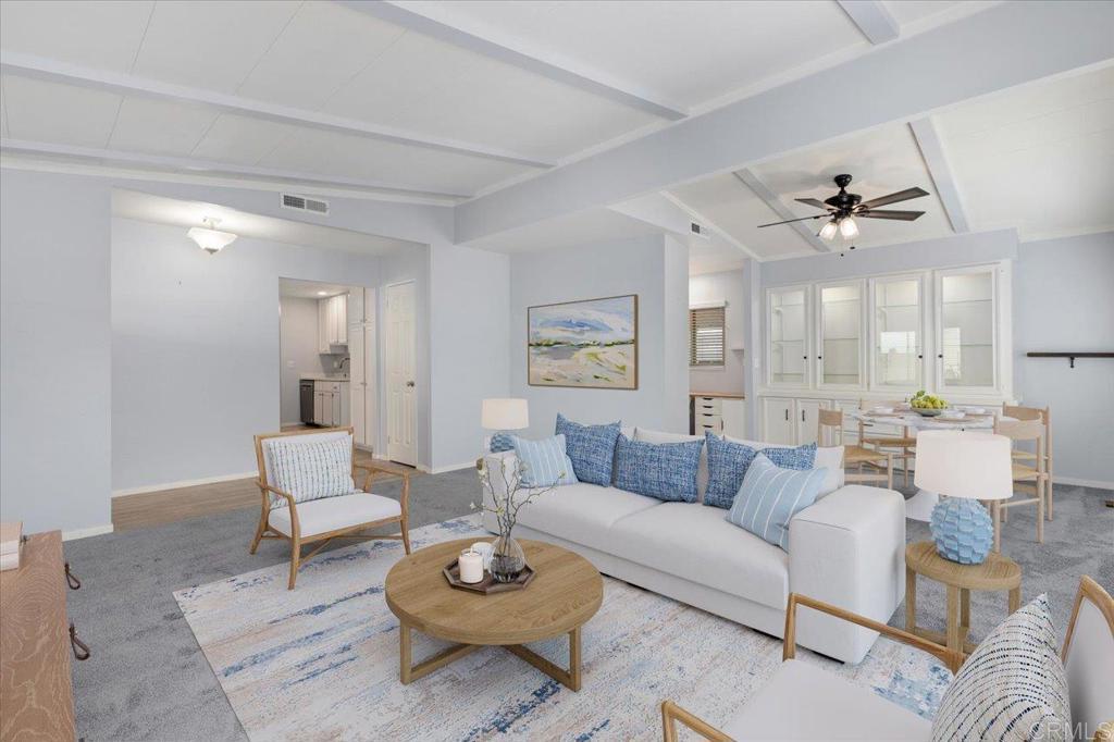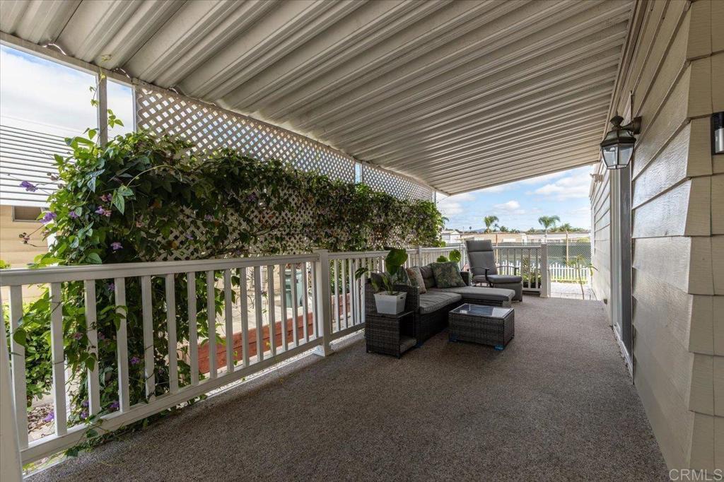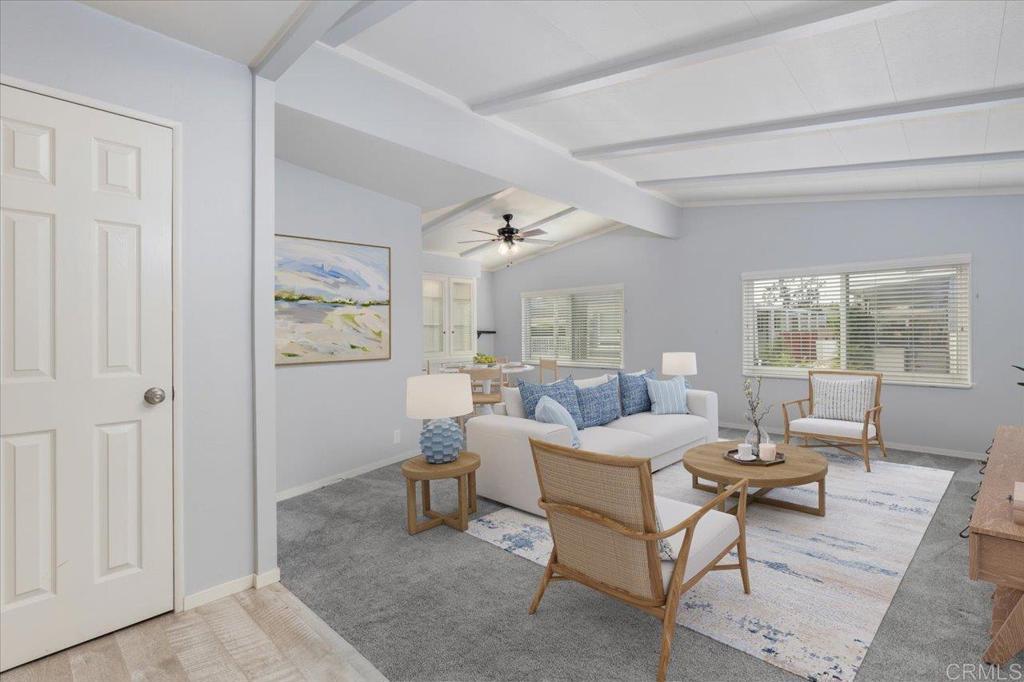 Lovely and unique remodeled 2 bed / 2 bath located in a 55+ rent controlled park with NO property taxes (home is still on HCD registration). Tucked away on a cul-de-sac near the Tennis Courts and other amenities, this home boasts a remodeled Kitchen and Bathrooms, new water heater (2025), vaulted ceilings in the Living room and Dining room, dual pane windows, newer interior doors and fixtures, and a separate office space. The Primary Suite boasts double sinks, a walk in closet, and a spacious custom step in shower. The second Bedroom also has it's own ensuite Bathroom, which is convenient for guests or roommates. The exterior offers a low maintenance yard, private covered porch, a covered carport that can fit multiple vehicles, and a storage shed. Palomar Estates East is a very active and social 5* community - check out the photos to see some of the amenities this community has to offer! Convenient to shopping, restaurants, Lake San Marcos, two golf courses at Lake San Marcos, another golf course nearby off Twin Oaks, entertainment, lots of parks and trails, the San Marcos Senior Center, and just a short 8 mile drive to Carlsbad beaches! Monthly space rent is only $568.61 and is under rent control!