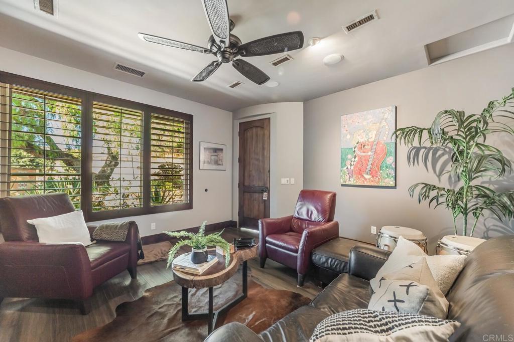 At $994/SF, this custom home is the BEST DEAL west of the 5 in Solana Beach! A dramatic transformation! If you viewed this the first time it was listed, you must come see it again. This incredible single-story home with an attached ADU on a large corner lot is the absolute best deal in Solana Beach west of the 5. With exquisite attention to detail, highly customized finishes throughout, and impeccable craftsmanship, this Spanish style resort-like property is a truly unique opportunity. Features include: • *Wrapped in acrylic waterproofed stucco • *Custom Oaxaca wood barn front door • *Expansive great room that merges the indoors with the outdoors • *La Cantina doors made of solid Mahogany • *Stained concrete floors • *Bamboo flooring in bedrooms • *Resort-style primary bedroom suite with private outdoor retreat with jacuzzi • *Vaulted ceilings in the great room • *Gourmet kitchen with custom solid wood cabinetry and Oaxacan tile backsplash • *Cigar lounge with an inline ventilation system (or possible future office) • *Custom built-ins in all closets • *High counter tops throughout the home • *Landscaped with drought tolerant succulents and native plants • *Custom-built outdoor Icelandic volcanic rock fireplace with Oklahoma stone hearth • *Built-in BBQ • *Custom fountain water feature • *Limestone sills from Guadalajara adorn all windows • *Epoxy coated garage • *Extensive built-ins in the garage for great storage • *Copper caps at all flat roof areas • *Whole house water purification system • *Solar panels are owned • *Ting Fiber optics and house is hard wired for gigabit • *550 square foot ADU with split unit, washer, dryer, kitchen, full bath, private patio and private separate entrance. Currently rented for $2075/month on a month-to-month lease. *Square footage of 3017 includes the ADU square footage of approximately 550 square feet. The 5th bedroom is the bedroom in the ADU. *All furnishings are negotiable excluding some artwork.