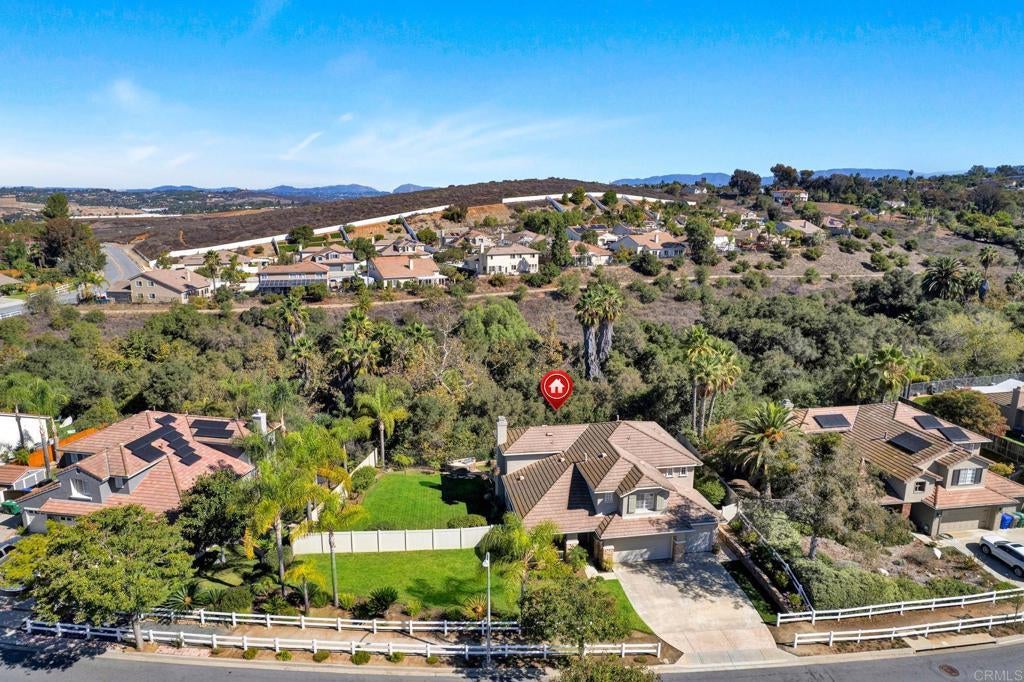 Welcome to this stunning 5-bedroom, 3-bath home offering nearly 3,000 sq. ft. of living space in one of Oceanside’s most desirable neighborhoods. Located in the Marlborough Country Estates enclave of Jeffries Ranch, this home has been beautifully updated and meticulously cared for by the original owners. You are greeted by a charming front porch that opens to a spacious living and dining room with gleaming hardwood floors that flow throughout the downstairs, complemented by custom white window shutters. The inviting family room features a gorgeous updated stone fireplace and a built-in custom entertainment center, located just off the kitchen. The remodeled kitchen offers custom creamy-white cabinetry, dark granite countertops, a large island, and new GE appliances—perfect for family gatherings and entertaining. A cozy breakfast area overlooks the private backyard, creating the ideal space to enjoy your morning coffee. A conveniently located downstairs bedroom and full bath provide flexibility for guests, multigenerational living, or a home office. Upstairs, the luxurious primary suite features remodeled spa-inspired bath with a separate tub and walk-in shower, two sink areas, and elegant finishes, plus three additional spacious bedrooms. Set on a 0.26-acre lot with no rear neighbors, the property backs to lush natural vegetation, creating a private and tranquil setting. The entertainer’s backyard is a true highlight—complete with an outdoor built-in BBQ, firepit, manicured lawn, and multiple seating areas ideal for relaxing or hosting guests. Additional features include an oversized three-car garage and close proximity to top-rated schools, shopping, dining, and parks. This rare opportunity combines modern comfort, timeless style, and exceptional outdoor living in the heart of Jeffries Ranch.