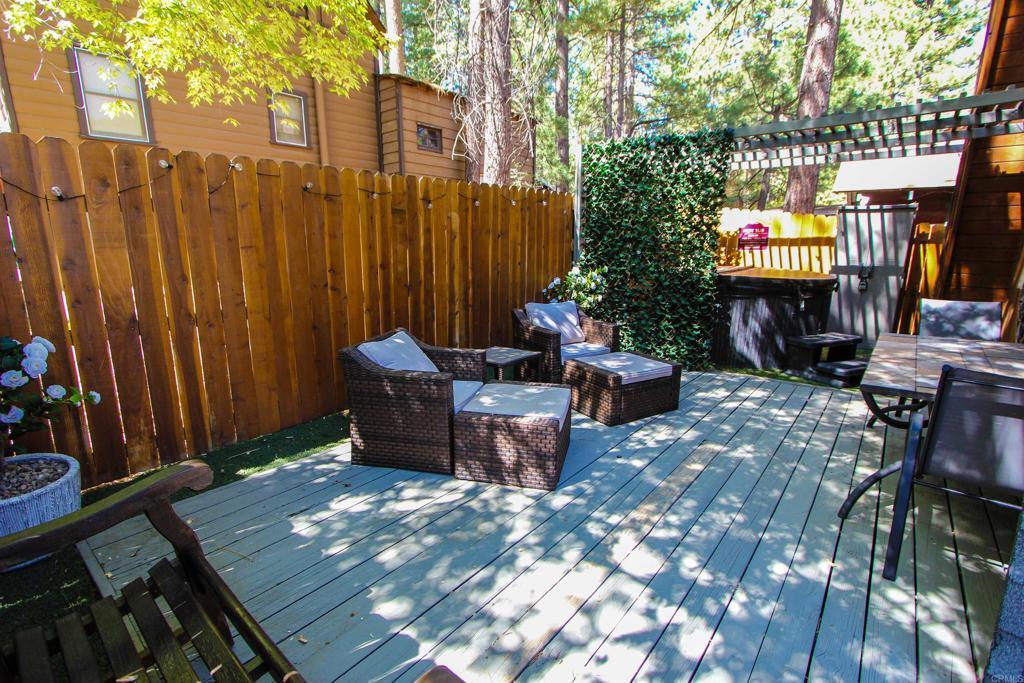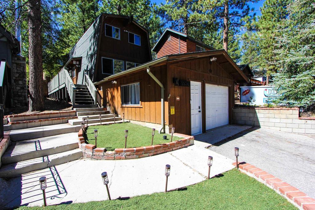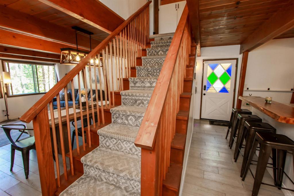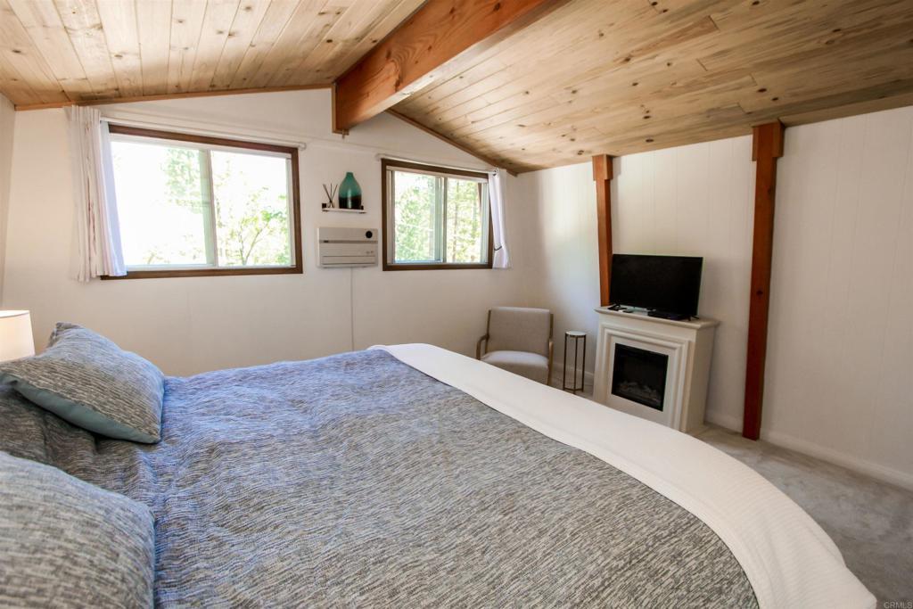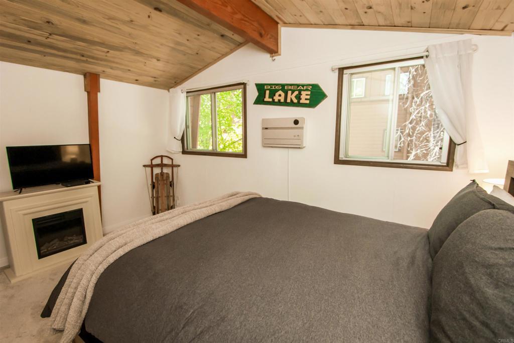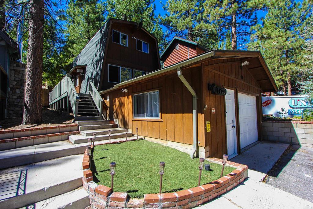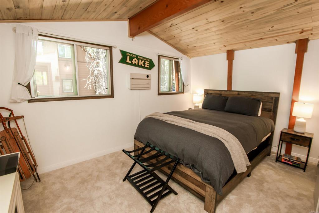 You’ll love this classic Gambrel home in the highly desirable 92314 zip code in Moonridge, near Fox Farm! Located on a quiet street with a large empty lot across the street. Conveniently near Bear Mountain, the golf course, Zoo, and the newly improved Moonridge corridor. It has stunning pine wood vaulted ceilings with appealing stained exposed beams throughout the home. Kitchen has a beautiful farmhouse sink and faucet, modern quartz countertops, and a rustic live-edge wooden breakfast bar. It is equipped with new appliances, including an added dishwasher. The tile backslash and open shelves provide a clean, modern look. The 1.5 car garage is currently used as a game room (7’ pool table with ping pong top, darts) and laundry room; potential to change to an ADU. The home features wood laminate flooring, new carpet upstairs, a brick gas fireplace, and six new electric heaters (bedrooms, garage, bathroom, in addition to the forced air heater downstairs.) A new tankless water heater in the garage has made available its closet by the front door… great for a cleaner’s or coat closet! The home has all new furniture included, providing for a turnkey short-term rental or family vacation home! Its large deck starts as you walk up to the front door, and wraps around to the backyard for your own mountain Oasis! Enjoy the large pine and oak trees surrounding the property, as you relax in the hot tub and stargaze. Complete with outdoor shed for tools, snow shovel, etc. Bistro lights surround deck walkway as well as pergola over hot tub – including outdoor table and patio chair set. Home is equipped and monitored with full ADT security system – Five cameras with a wall unit control center and kitchen display. 2 nest smart locks on front and garage doors… Lets unlock the door to your dream home!