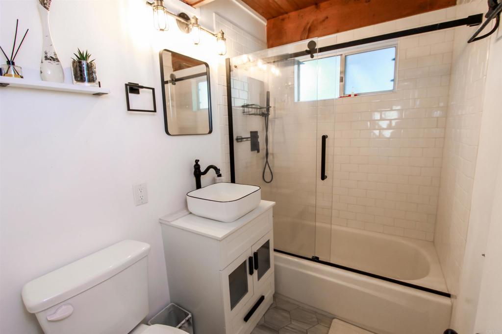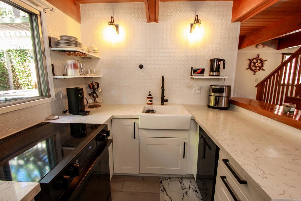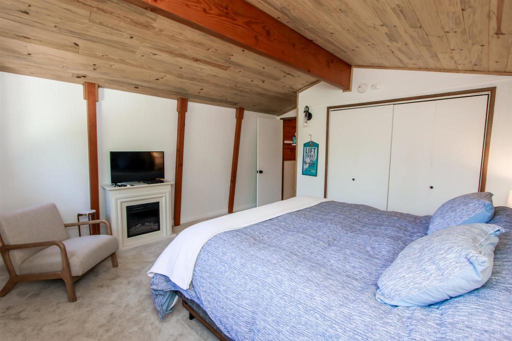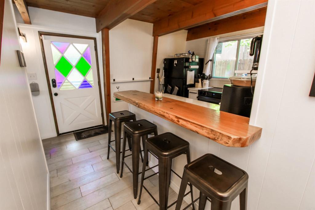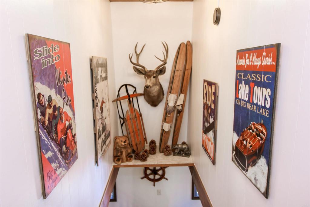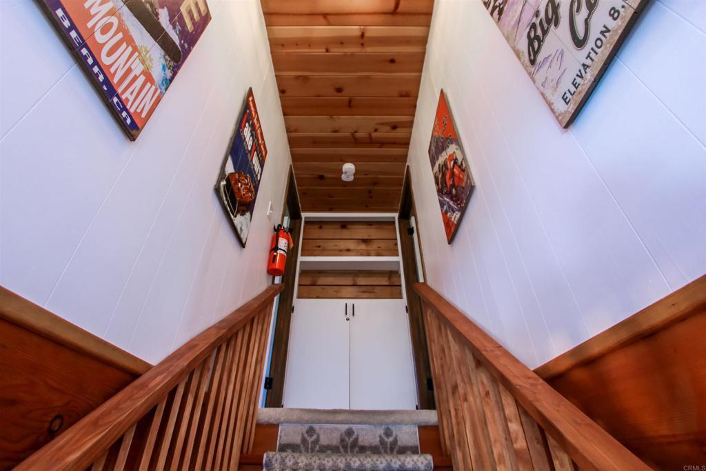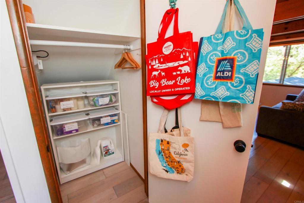 You’ll love this classic Gambrel home in the highly desirable 92314 zip code in Moonridge, near Fox Farm! Located on a quiet street with a large empty lot across the street. Conveniently near Bear Mountain, the golf course, Zoo, and the newly improved Moonridge corridor. It has stunning pine wood vaulted ceilings with appealing stained exposed beams throughout the home. Kitchen has a beautiful farmhouse sink and faucet, modern quartz countertops, and a rustic live-edge wooden breakfast bar. It is equipped with new appliances, including an added dishwasher. The tile backslash and open shelves provide a clean, modern look. The 1.5 car garage is currently used as a game room (7’ pool table with ping pong top, darts) and laundry room; potential to change to an ADU. The home features wood laminate flooring, new carpet upstairs, a brick gas fireplace, and six new electric heaters (bedrooms, garage, bathroom, in addition to the forced air heater downstairs.) A new tankless water heater in the garage has made available its closet by the front door… great for a cleaner’s or coat closet! The home has all new furniture included, providing for a turnkey short-term rental or family vacation home! Its large deck starts as you walk up to the front door, and wraps around to the backyard for your own mountain Oasis! Enjoy the large pine and oak trees surrounding the property, as you relax in the hot tub and stargaze. Complete with outdoor shed for tools, snow shovel, etc. Bistro lights surround deck walkway as well as pergola over hot tub – including outdoor table and patio chair set. Home is equipped and monitored with full ADT security system – Five cameras with a wall unit control center and kitchen display. 2 nest smart locks on front and garage doors… Lets unlock the door to your dream home!