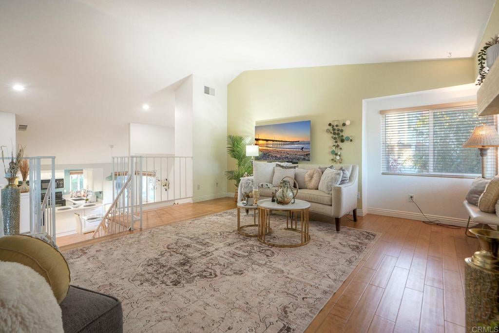 Discover Bonsall's secret gem! This is a Certified Pre-Owned Home in move-in condition, and designed to make your home purchase effortless and worry-free. Breathtaking views, beautiful upgrades, and turn-key upstairs and down. Maple wood floors highlight this split-level floor plan with cozy, private living room with fireplace and big screen TV. Bonus room upstairs can be an office, optional 3rd bedroom, or play area. Cheery, fully laid out kitchen on the entry level contains fine cabinetry and newer appliances. It overlooks the front entry, and includes a breakfast bar, and an adjacent area for dining. Indoor, easily accessed main floor garage, and laundry area. HOA fee covers water, trash, common areas and exterior maintenance of the units. See documents for more highlights.