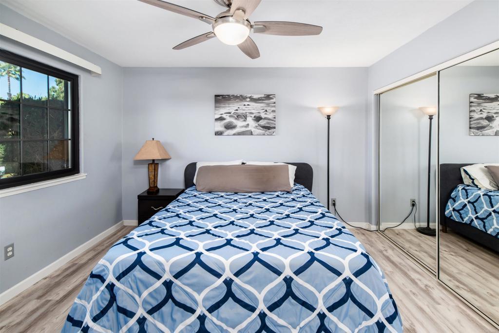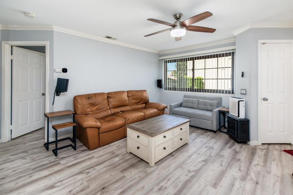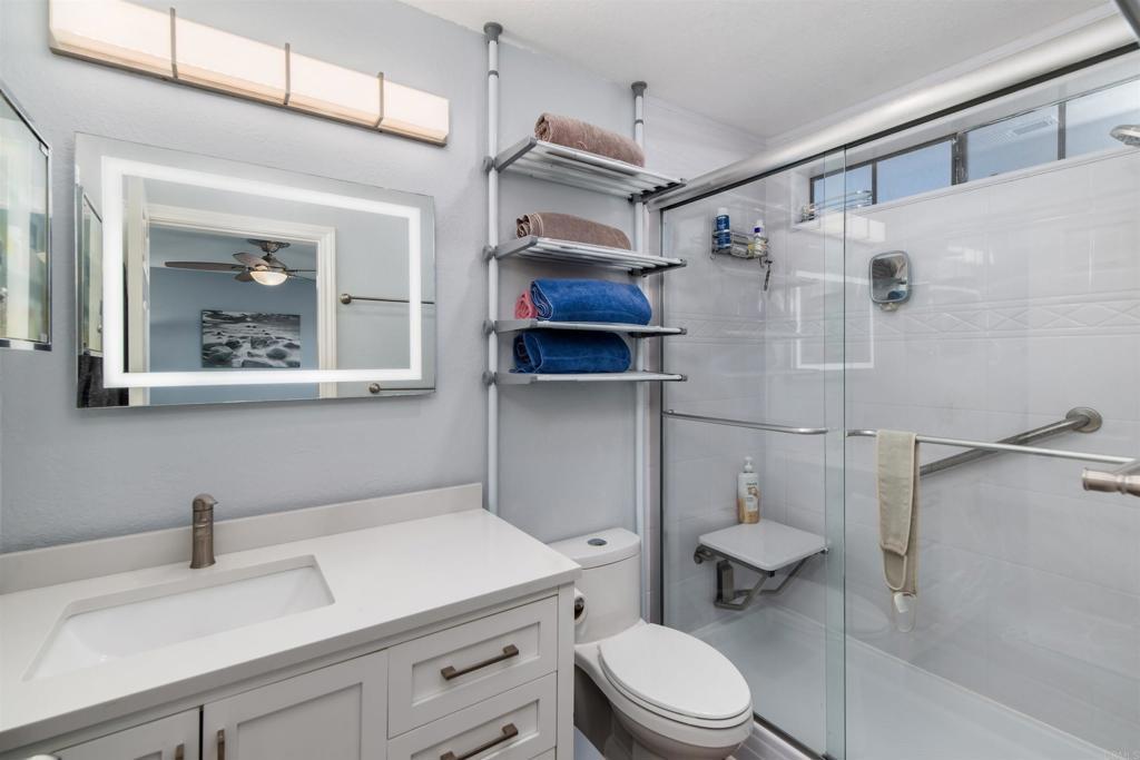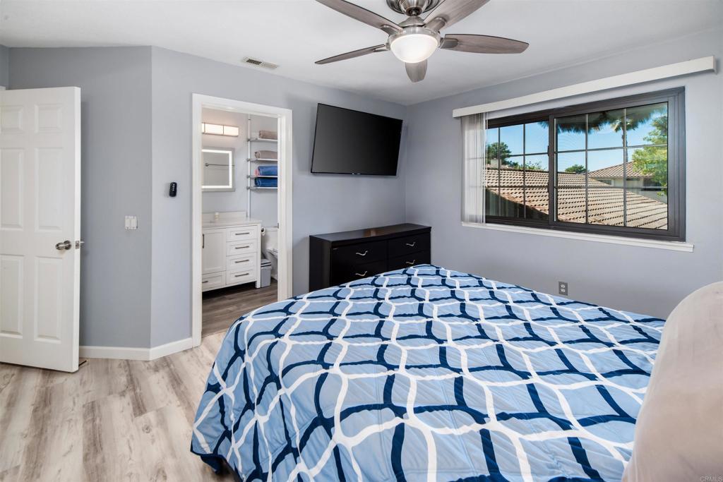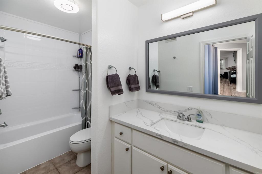 Great opportunity with an assumable VA loan at a 2.25% interest rate! Welcome to one of the most updated homes in the sought-after Vista Way Village community—a gated hillside retreat less than 5 miles from the beach. This western-facing terrace-level unit captures refreshing ocean breezes and natural shade, keeping your home comfortable year-round. Inside, nearly every detail has been upgraded for style and convenience. The kitchen features Brazilian Aquarella quartz countertops (2022), updated cabinets, a breakfast bar, new Whirlpool appliances including a double-door refrigerator, quiet dishwasher, oven, and over-the-range microwave (2024), plus bright 2x4 LED skylight panel lighting. The bathrooms shine with a custom vanity, a Spanish tile floor, a new tub and surround with a lifetime warranty, marble and quartz counters, and modern LED lighting. The home also boasts newer Anderson Windows, high-traffic LVP flooring (2024), smart integration on all switches, LED lighting and ceiling fans throughout, and fresh paint. In-unit laundry hookups are included for your convenience. Enjoy a private balcony and a spacious lawn directly outside your door—perfect for relaxing outdoors or letting pets stretch their legs. A one-car garage plus an additional assigned space provide ample parking. Vista Way Village offers resort-style amenities: 2 pools, 2 Jacuzzis, BBQ areas, a clubhouse, fitness center, tennis/sports court, gazebos, children’s play area, and doggy stations throughout. The community is gated with security, providing residents with peace of mind alongside its many lifestyle perks.The location is unbeatable—close to I-5, Hwy 78, and 76, with shopping, dining, groceries, medical facilities, and the VA Clinic nearby. The Shoppes at Carlsbad and the new Frontwave Arena are just over a mile away. This is a rare opportunity to own a stylishly upgraded home in a vibrant, coastal community with every convenience at your doorstep.