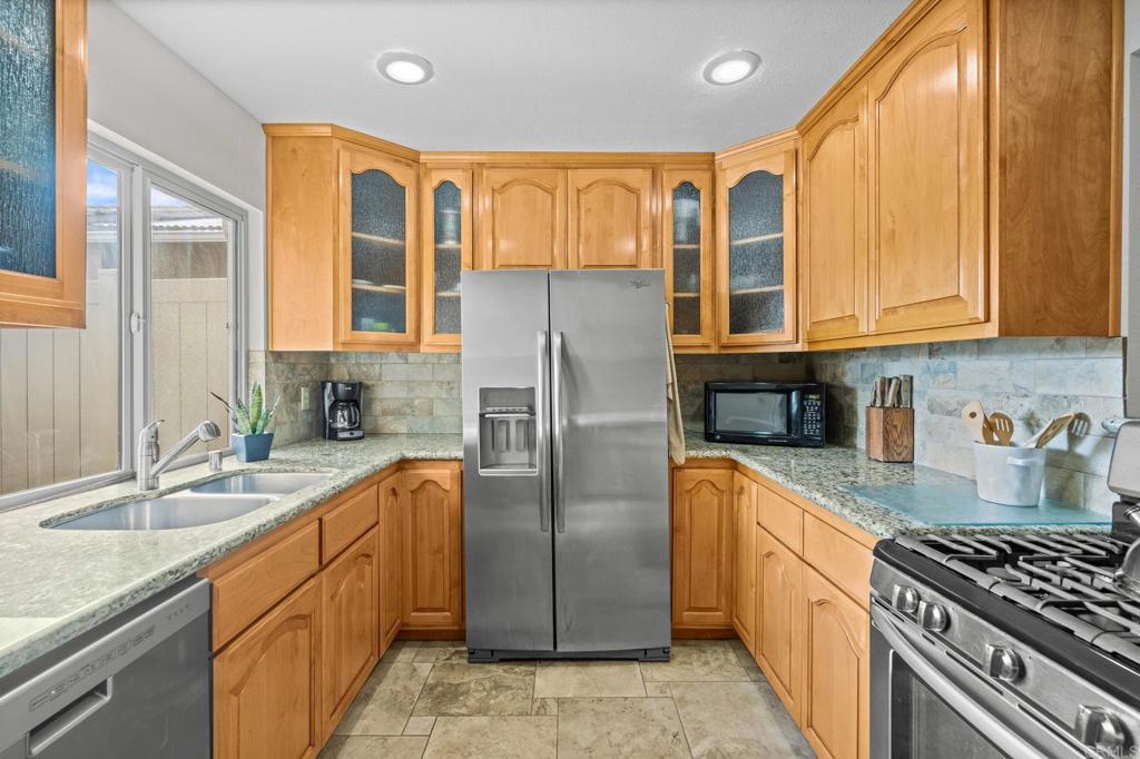 There is so much to love about this home and living life in one of Oceanside’s best 55+ communities - Oceana III. This well designed floor plan offers 2 bedrooms, 2 bathrooms and 1,050 square feet of living space. The home features upgraded flooring, vinyl windows, and plenty of natural light thanks to the sola tubes in each bathroom. The upgraded kitchen has been opened up to the great room for seamless living. Additional highlights include upgraded bathrooms, vinyl shutters, privacy screen doors, extra tall garage door and more. The attached one-car garage is accessed via the fully gated carport which is often used as a private outdoor living space where you can enjoy the coastal climate year round. The monthly HOA fee covers basic cable, water, sewer, and trash plus all of the community features. Oceana III combines beautiful surroundings with plenty of opportunity to stay active and social. Residents enjoy a pool and spa, a clubhouse w/ full kitchen and fitness center, walking paths and open greenbelt areas. The community is a short drive to the beaches of Oceanside and Oceanside's vibrant harbor. Plenty of local shopping, dining and services are less than 1 mile away. Access to Highway 76 and I-5 make getting around San Diego a breeze. The home is well-maintained and move in ready!