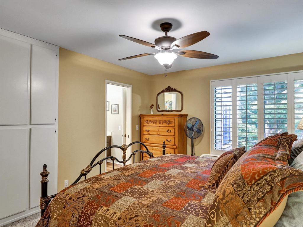 Meticulously maintained upstairs unit in the highly desirable Shadowridge Aspens! Enjoy mountain views and breezes while BBQing or relaxing on your private patio. Features include a bright kitchen with SS appliances, newer carpet throughout, vaulted ceilings, upgraded shutters, a full size washer and dryer and a 1-car garage with extra storage. The Aspen grounds are beautifully landscaped, offering a pool and spa, Clubhouse and paid water and trash. Ideally located near HWY 78, the Shadowridge Country Club, shopping, restaurants, breweries and less than 10 miles to Carlsbad beaches!