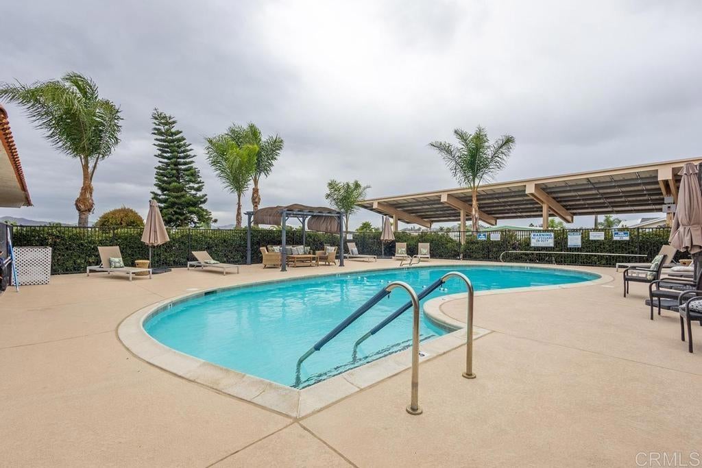 New paint makes a huge impression! Pictures 1&2 show the new paint. We had it photographed before the painting inside and out. This home was upgraded to the max by a former owner, who built in a large sun room that serves the Master Bedroom, all interior walls replaced with drywall and upgraded insulation, inside and exterior. Custom draperies, window replacements and a walk-in soaking-seated bathtub was added. 1744 Square feet of spacious living, and the kitchen is beautifully appointed with lots of storage and an oversized refrigerator. This home has fruit trees in the backyard, and a great shed that matches the home. New exterior carpet on porch and ramp. Freshly painted Inside and out! Ramona Terrace Estates 55+ is on a quiet street in mid-town Ramona, minutes from Main Street restaurants and shopping. BEST VALUE IN RAMONA!!