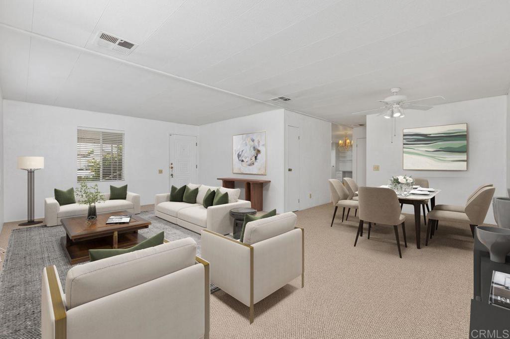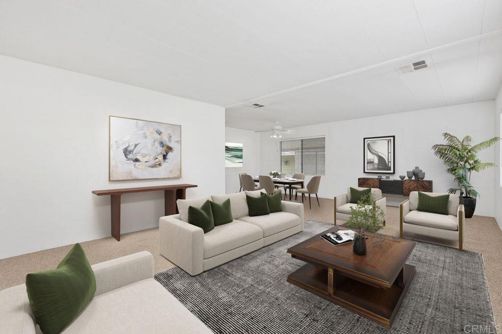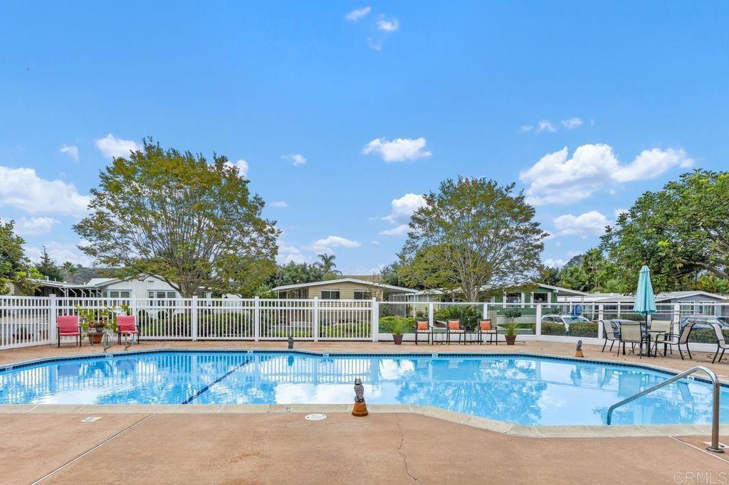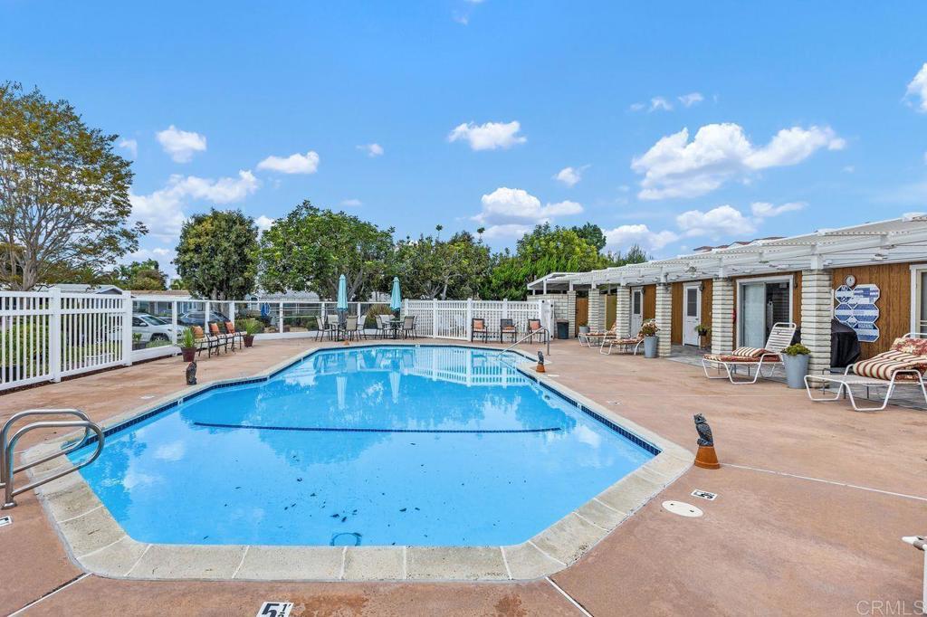 Welcome to El Camino Estates, a real Carlsbad gem. Introducing 4967 Cindy Ave., the only home in the community that directly faces the lovely community pool, offering a rare and relaxing view right from your doorstep. Guests will also find plenty of parking right across the street. This meticulously maintained home features 1,488 square feet of comfortable living space with large rooms, an open layout, and plenty of natural light throughout. The interior boasts a generous, updated kitchen, with sleek cabinets, perfect for everyday living or entertaining. The primary bathroom has been tastefully updated, creating a clean, contemporary space to unwind. Every room in the home feels spacious and inviting, with fresh paint and new carpeting, creating a perfect pallet for your own design choices. This home is truly move-in ready. You will enjoy the backyard, which comes with fruit trees and is easy to maintain. Beyond its appealing living spaces, this home also includes extensive soil remediation work beneath the home. You will enjoy the benefits of the extensive remediation work that included 1¼ tons of decomposed granite (DG) concrete, which provides stability and durability. To help neutralize any past soil concerns, lime and DG were carefully bucketed under the home, and ventilation ports were added to promote healthy air circulation and prevent moisture buildup. Additionally, the air handling system was modified to a fresh air intake system. Finally, the entire lot was recently (2023) re-rocked with 4 inches of new rock over new barrier cloth. These upgrades not only add peace of mind, but they also enhance the long-term integrity of the property. Don’t miss this rare opportunity to own a spacious, upgraded home with an abundance of proactive maintenance, in a pristine 55+ community where you OWN THE LAND. This prime location, with gated entrance and separate RV parking, surrounded by million-dollar homes, could be yours soon. Schedule your private tour today!