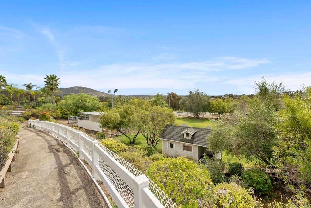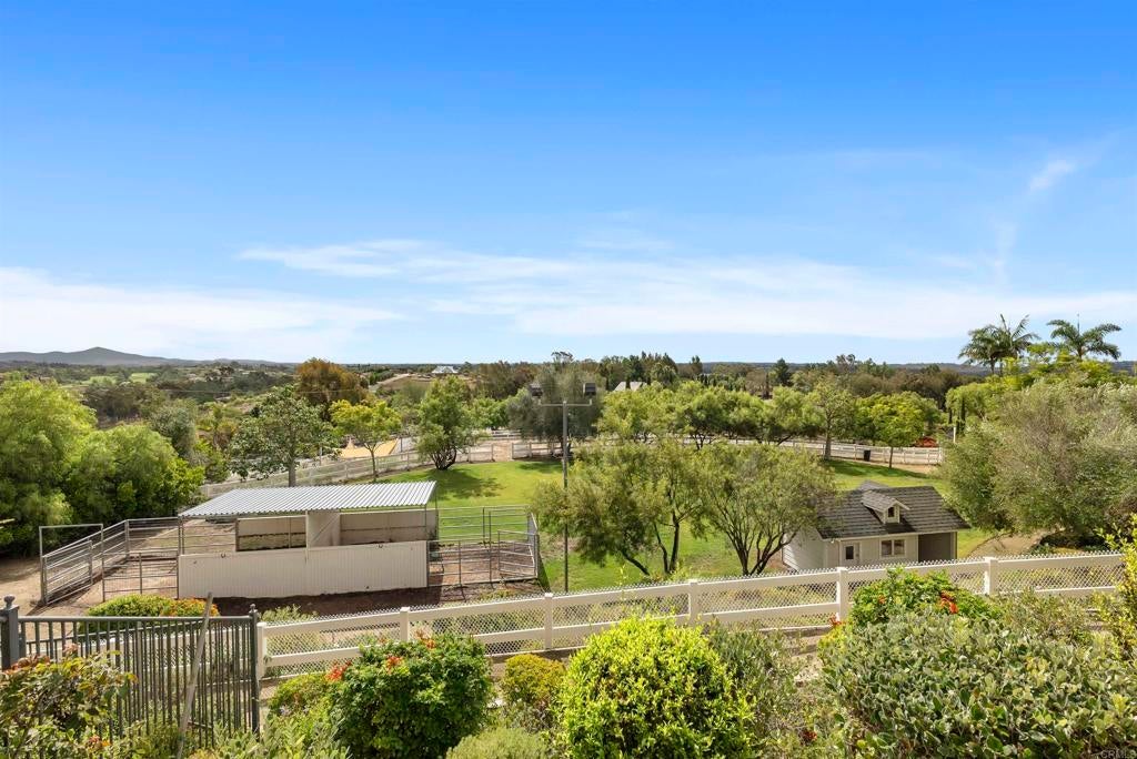 Set on nearly three acres in the rolling hills of Olivenhain, this custom single level estate blends timeless architecture with the relaxed beauty of coastal California living. Encompassing approximately 5,000 square feet, the residence offers six bedrooms and four and a half bathrooms across a light filled open concept floor plan. Expansive and inspiring views overlook the world class golf course and clubhouse of The Bridges to the south and capture distant ocean views to the west. Designed for effortless flow, the interiors feature wide plank wood floors, high ceilings, and a soothing palette that complements the natural surroundings. The great room centers on a classic brick fireplace and opens to a covered loggia framed by arched stonework, perfect for entertaining or quiet evening gatherings. The kitchen combines elegance and function with marble countertops, custom cabinetry, a walk in pantry, and a breakfast area overlooking the gardens. A formal dining room and dedicated office provide thoughtfully designed spaces for work and connection. The primary suite offers a private retreat with direct access to the patio, a freestanding tub, and dual vanities. Five additional bedrooms provide comfort and flexibility for guests or family. Outdoors, the home embraces the California lifestyle with a pool and spa, shaded dining terraces, raised vegetable gardens, and an outdoor kitchen designed for al fresco dining and year round enjoyment. The grounds extend across approximately 2.59 usable acres with manicured lawns, fruit trees, and fenced paddocks suitable for up to five horses under current Olivenhain guidelines. Set within minutes of top rated schools, scenic trails, and the beaches of Encinitas, 3401 Adams Run offers a rare blend of privacy, space, and sophistication in one of North County’s most desirable communities.
