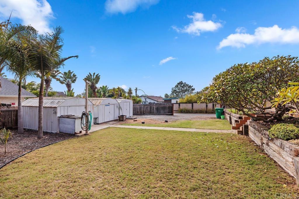 Welcome home to your Fire Mountain retreat! Tucked away on a quiet cul-de-sac and perched on an elevated lot, this stunning single-level home offers over 1,900 sq. ft. of light-filled living space on nearly a quarter acre of usable land, with lush tropical landscaping, and a versatile bonus room, this property combines comfort, flexibility, and function. Step inside to discover an open-concept floor plan filled with natural light from multiple skylights. The renovated kitchen seamlessly connects to the dining and living areas, featuring quartz countertops, stainless steel appliances, large single bay sink and a skylight that enhances the bright, airy feel. The spacious living room boasts vaulted ceilings and custom built-in cabinetry—perfect for entertaining or relaxing with friends and family. The bonus room offers endless possibilities: expand the primary suite, create a game or craft room, or convert it into a junior ADU with its own exterior access. Enjoy peace of mind with thoughtful upgrades throughout, including plantation shutters, new dual-pane vinyl windows (with transferable lifetime warranty), a 50-year rated roof that’s only 5 years old, upgraded electrical panel, owned solar that currently covers the entire electric bill, LED lighting, EV charger wiring, and a new electric water heater. Car enthusiasts and adventurers will enjoy the ample parking, plus additional driveway space north of the garage. With so much room to grow, there’s potential for a pool, detached ADU, or simply more outdoor living space—let your imagination run wild. Quiet yet conveniently close to shopping, fine dining, parks, Harbor, Pier and some of Southern California’s best beaches, this Fire Mountain gem truly has it all. Don’t miss your chance—schedule a showing today!