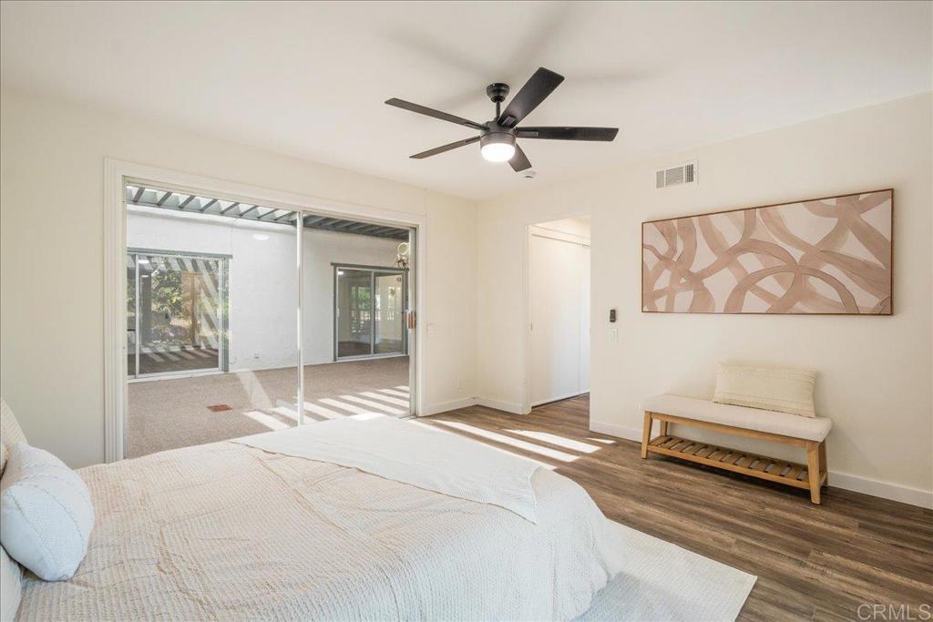 Welcome to this beautifully upgraded single-story residence in the desirable Oceana 55+ community. This charming home features laminate flooring, a modern kitchen with Corian counters, stainless steel appliances and custom backsplash, a spacious living room with large balcony, updated bathrooms, plus a front patio with HOA-approved fencing that creates a private outdoor space. The office can easily be converted into a 3rd bedroom and the enclosed atrium/courtyard offers endless possibilities—perfect for a sunroom or hobby area. Conveniently located near the community entrance and clubhouse, as well as being adjacent to the Emerald Isle Golf Course. Enjoy resort-style amenities including multiple pools, clubhouse, billiards, card and computer rooms, pickleball courts, and more. The HOA covers trash pick-up, and water and sewer are included, adding convenience and peace of mind. Ideally located near the Sprinter station, shops, restaurants, and freeways, this home offers the perfect blend of comfort, convenience, and active coastal living.