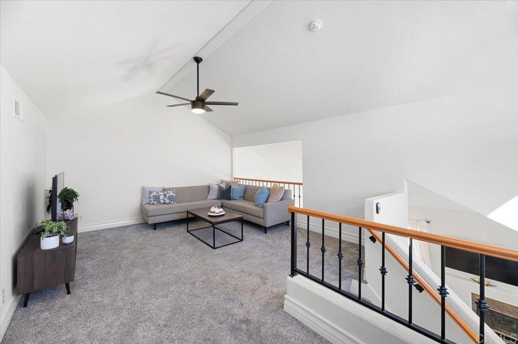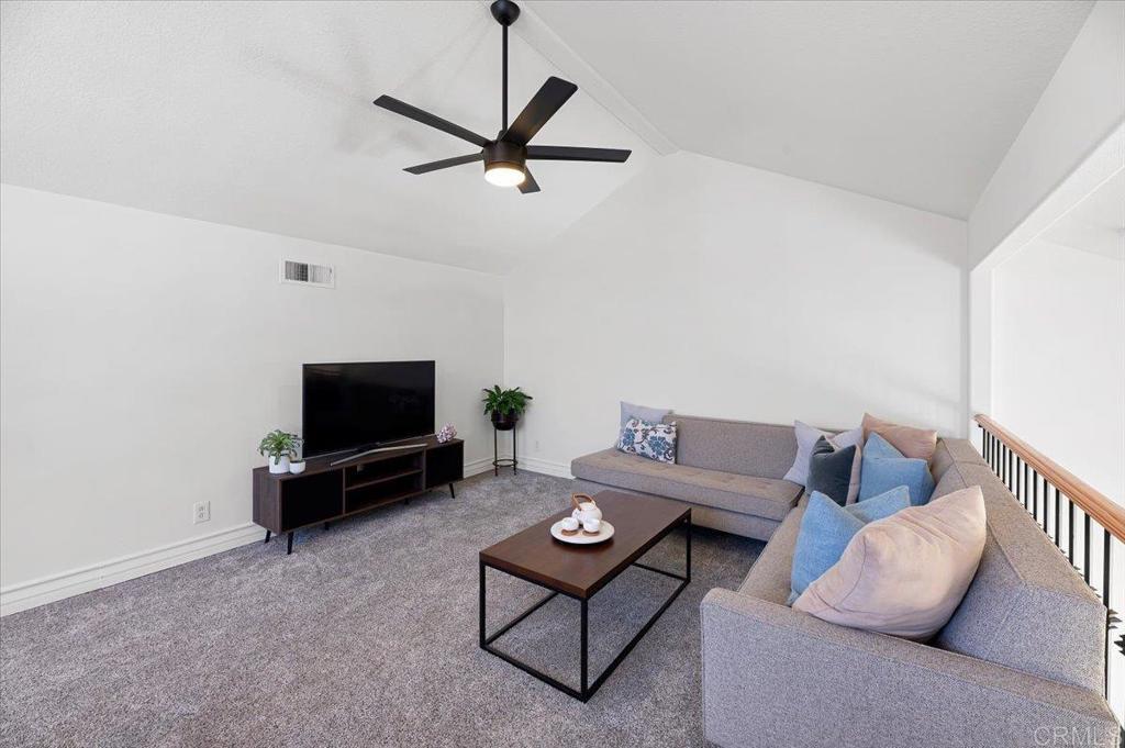 This turnkey end-unit is located in the highly desirable Applause condominium community—known for its beautifully maintained grounds, vibrant landscaping, and ample guest parking. The home features two bedrooms, two bathrooms, and a spacious loft, all enhanced by vaulted ceilings that create an airy, open feel filled with natural light. The main living area is generous in size, making it ideal for entertaining family and friends. Both bedrooms are conveniently located on the main floor, offering the comfort of single-level living. Upstairs, the large loft offers two distinct spaces—one that can easily be converted into a third bedroom and another perfectly suited for a home office. The home includes newer vinyl plank flooring throughout, and the kitchen and bathrooms have been tastefully updated. The entire community was re-piped in 2015, and the pool, spa, and surrounding common areas are receiving a major refresh in November. Conveniently situated near freeways, toll roads, parks, shopping, theaters, local beaches, wilderness trails, and award-winning schools, this home offers both comfort and accessibility. Don’t miss the opportunity to enjoy life in the beautiful Applause community of Aliso Viejo!