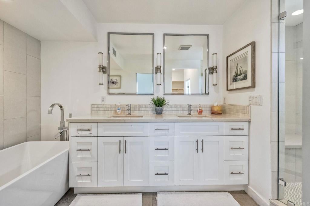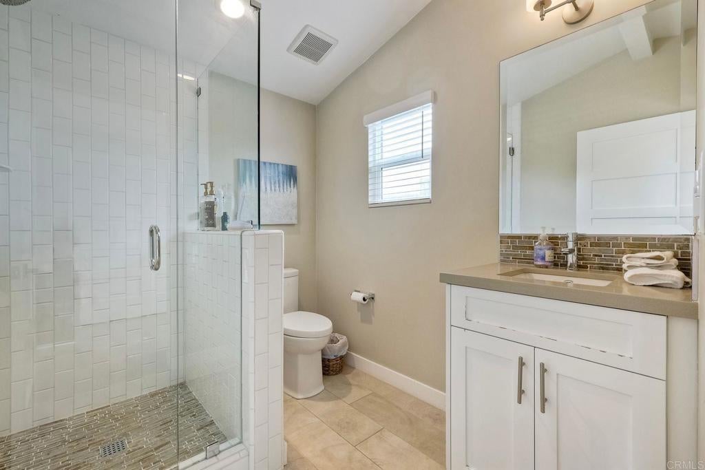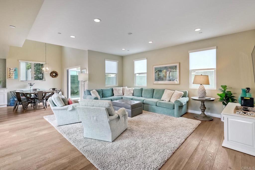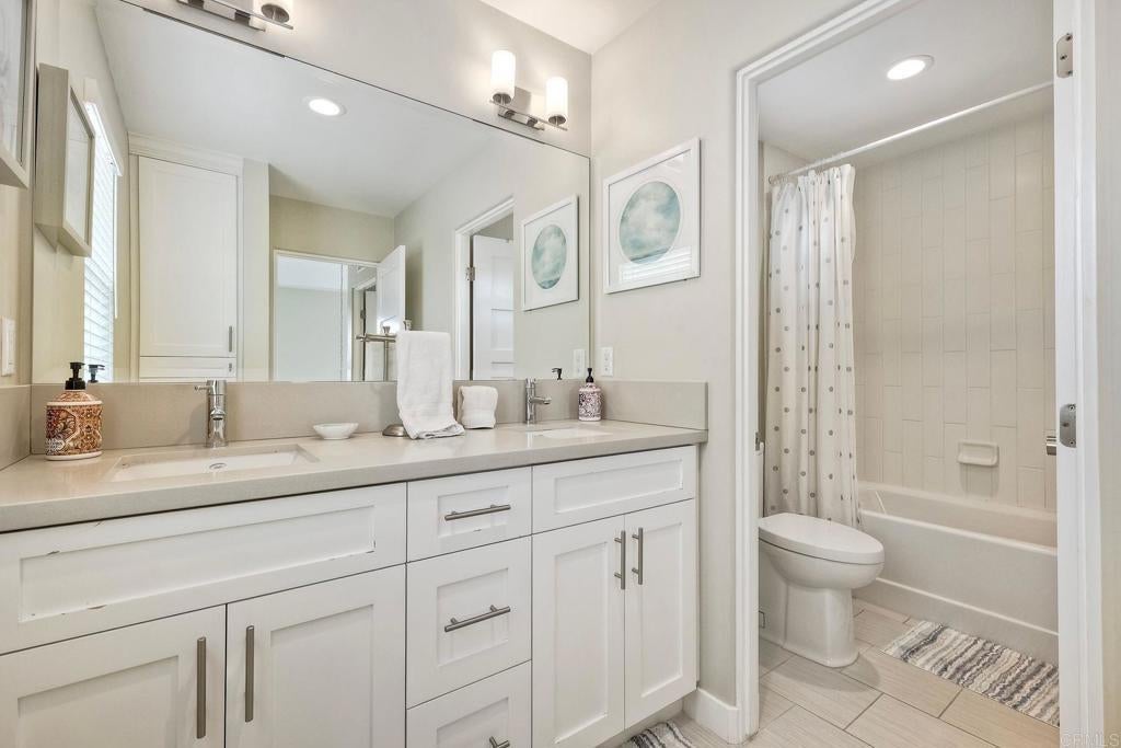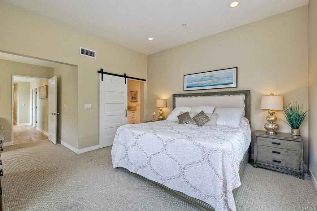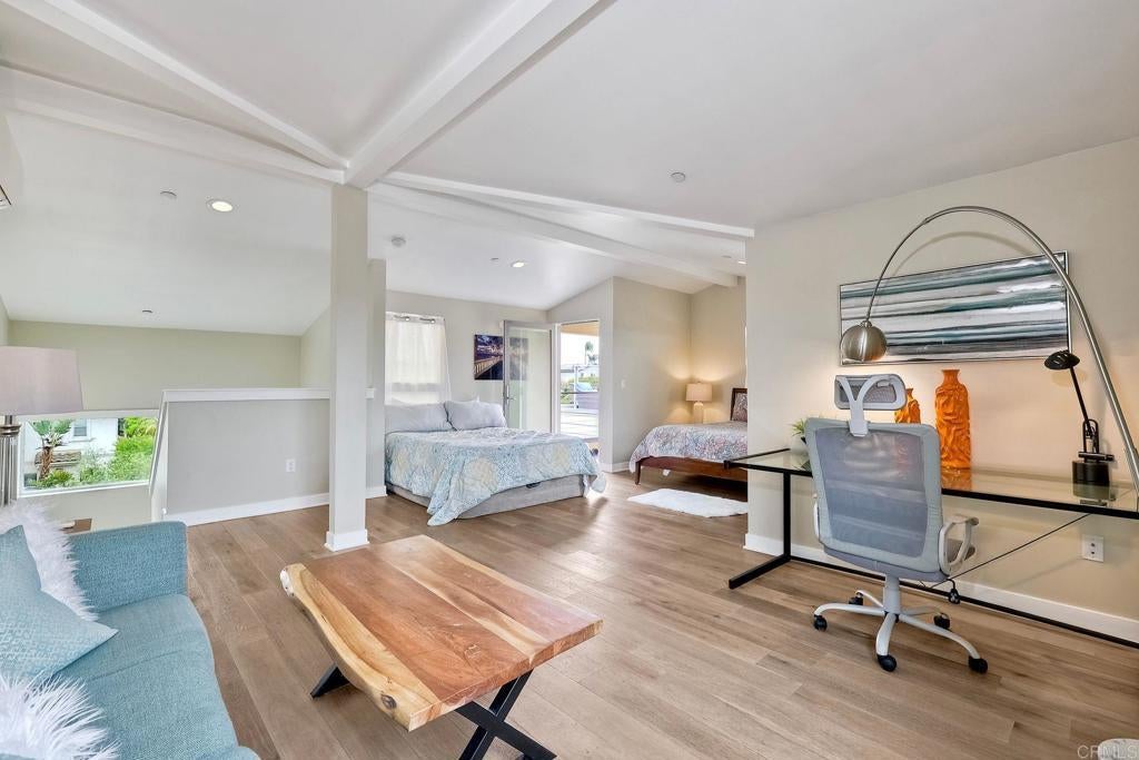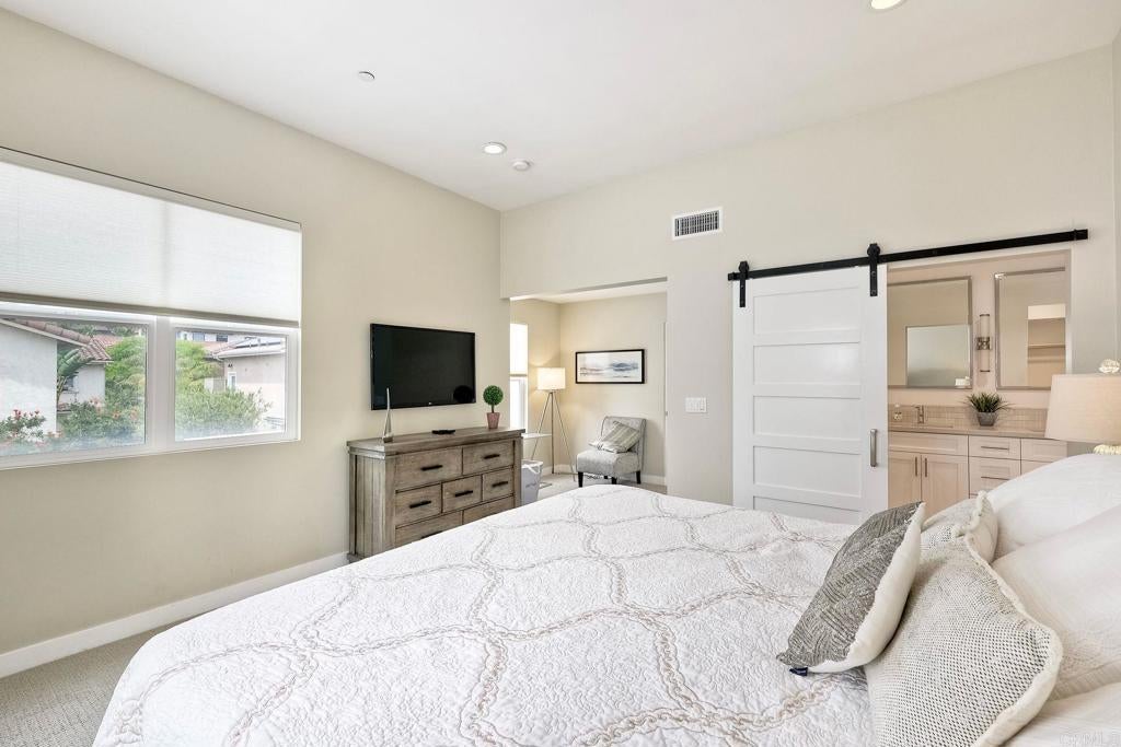 Detached Coastal Retreat — Fully Furnished Luxury Steps from the Lagoon and Beach. This stunning 4-bedroom, 3.5-bath coastal home offers 2,645 square feet of beautifully designed living space just steps from Agua Hedionda Lagoon and Carlsbad Beach. Fully furnished with every detail thoughtfully curated—from furniture and décor to bedding, linens, bikes, surfboards, and beach chairs—this property is ready for immediate occupancy. Gourmet kitchen with Bertazzoni 6-burner range and french door fridge. Accordion glass doors open to sunlit patios with an outdoor shower while the open-concept great room provides an inviting space to relax or entertain. The spa-style primary suite features a soaking tub and barn door entry, and a third-floor bonus room leads to a rooftop deck with hill, city, and peek-a-boo ocean views. Additional highlights include a tankless water heater, paid solar system, two car garage and parking for five vehicles.