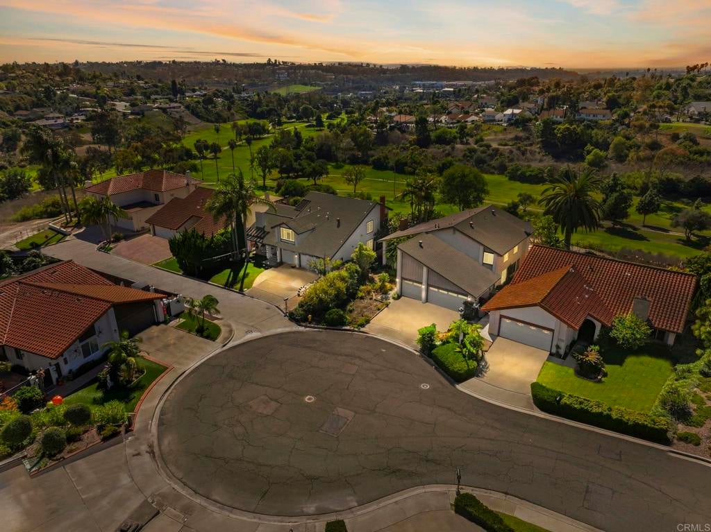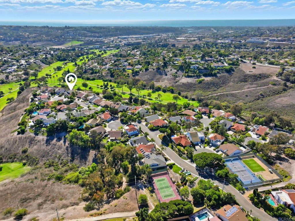 Nestled at the end of a peaceful cul-de-sac in the highly sought-after Henie Hills neighborhood, this home offers breathtaking westerly panoramic golf course views and an unbeatable vantage point for watching the sunset year-round. Views reach all the way to the Carlsbad Hosp Grove Park skyline. Perched on a hill with an unobstructed path to the coast, the home enjoys refreshing ocean breezes that enhance its serene and inviting atmosphere. With its fantastic floor plan and exceptional potential, this property is a rare opportunity to create your dream home in one of the area’s most desirable communities. The spacious layout includes a downstairs bedroom and full bath, perfect for guests, multi-generational living, or a home office. Large windows and open living spaces showcase the spectacular views and bring in an abundance of natural light. The neighborhood itself offers great outdoor activities as well as private pickleball, tennis and basketball courts. While the home is ready for some TLC, it presents endless possibilities for customization and modern updates — a true blank canvas in an unbeatable location. Don’t miss this chance to own a home with unbelievable views, a prime cul-de-sac setting, and unlimited potential in Henie Hills. This a a blank canvas with a location that can't be beat. This area has excellent schools, medical, and easy access to shops, restaurants and the best beaches!