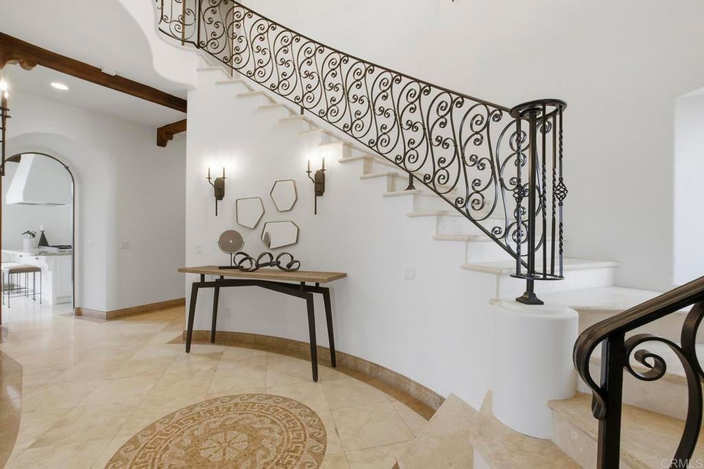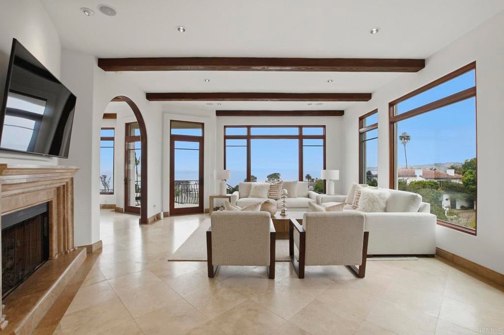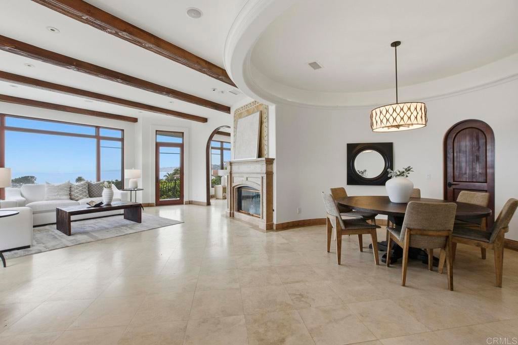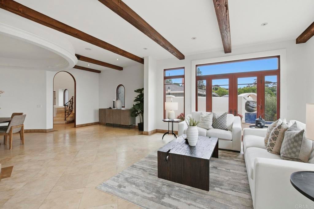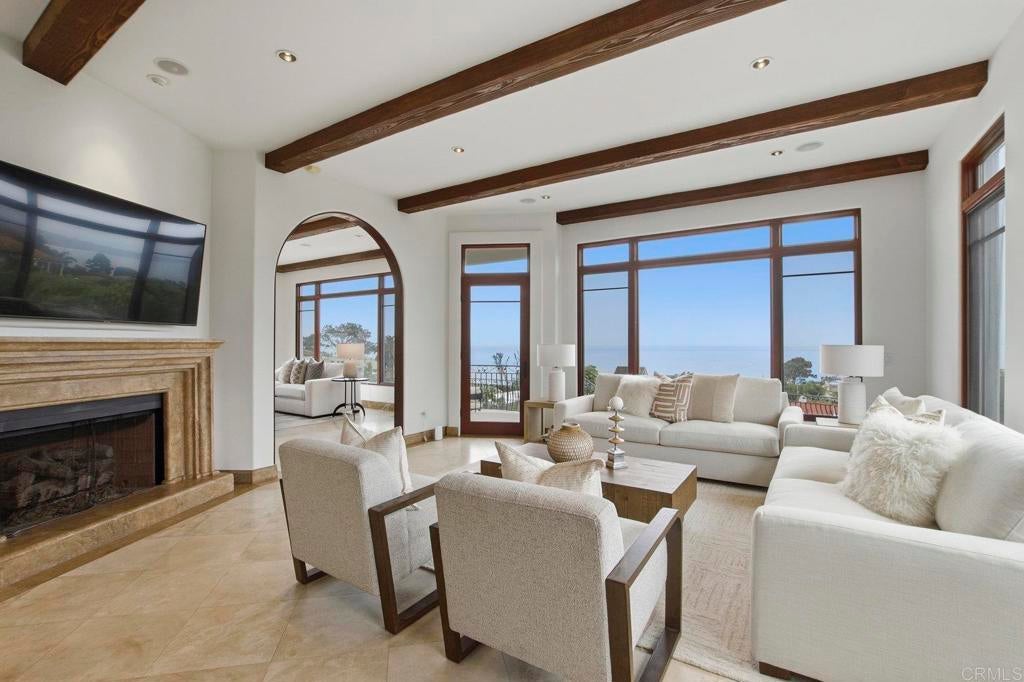 Perched above La Jolla Village with commanding Pacific and coastline views, and dramatic ocean views from every room, this timeless Santa Barbara–inspired villa blends classic architecture with modern coastal luxury. Nearly 5,000 sq ft of light-filled interiors capture beautiful ocean views from every room, highlighted by vaulted and exposed-beam ceilings, Limestone floors, French doors, and elegant custom finishes. The open chef’s kitchen features a large stone-topped island, sleek white cabinetry, and top-of-the-line stainless-steel appliances, opening to the great room and expansive outdoor living areas. A spacious ocean-view patio invites al-fresco dining, sunset gatherings, and relaxed coastal entertaining. The private primary suite enjoys its own balcony overlooking La Jolla Shores and Scripps Pier, a spa-inspired bath, and generous walk-in closet. Three additional bedrooms also offer sweeping views. The spectacular home theater with eight plush reclining chairs delivers an authentic cinematic experience. Additional features include 4.5 baths, a newly refreshed interior and exterior, and an oversized 2½-car attached garage with ample storage. Light, bright, and meticulously maintained, this exceptional home captures the essence of La Jolla living—panoramic ocean vistas, timeless design, and an easy stroll to the Village’s boutiques, cafés, and beaches.