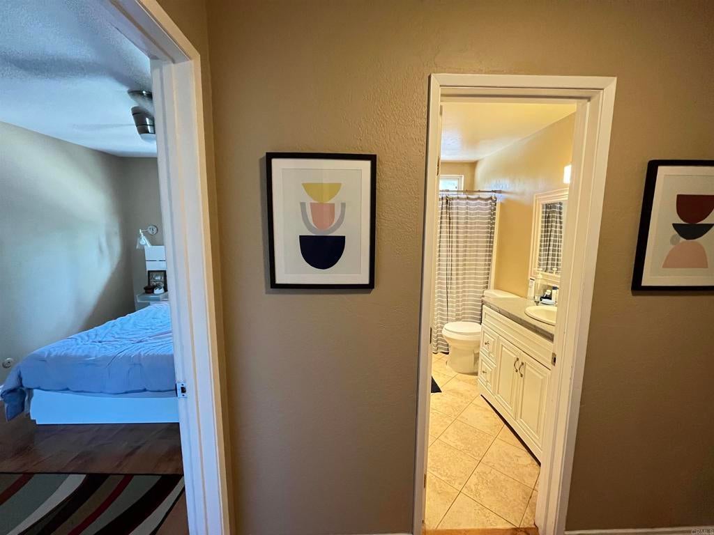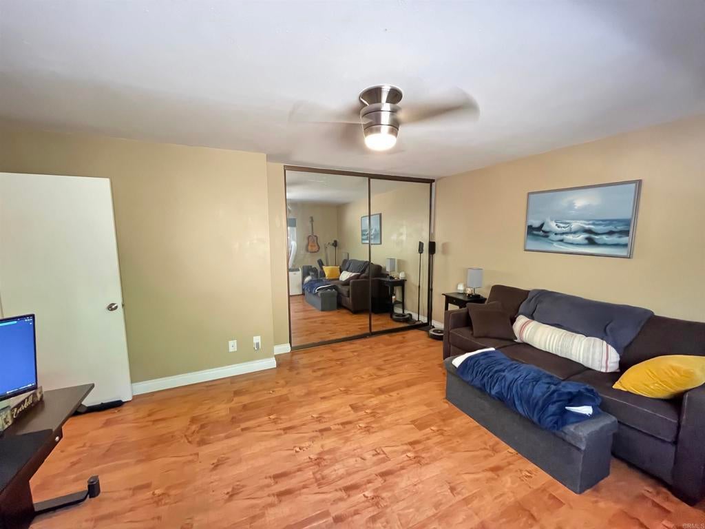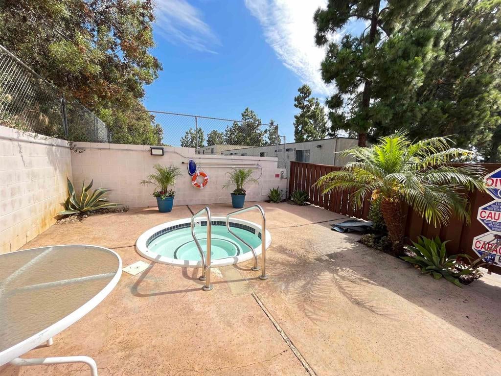 Step Inside this charming end unit condo that shares only one common wall with the neighbors. 2 beds, 1.5 baths and 860 sq.ft of living space in the highly desirable Del Mar Palms Community in Del Mar, CA. This lovely unit features wood plank and tile flooring throughout the living areas and bedrooms for a sleek modernized feel. Living areas flow seamlessly into the kitchen, which is furnished with grey tiled countertops, white cabinets and SS appliances providing an elegant but cozy working kitchen. Full Bathroom is finished with tiled flooring, large vanity, framed mirror and a tub/shower combo. Included is an assigned one garage space. Enjoy the beautiful courtyard area and sparkling pool. This pleasant community is located moments away from & West of I-5, walking distance to Beachside Del Mar Shopping Center, few minutes drive to the Del Mar Village, Sea Grove & Powerhouse Parks, Torrey Pines State Beach & Natural Reserve. Come by and visit our property to see how much it and Del Mar have to offer. Be the one to make it your own!