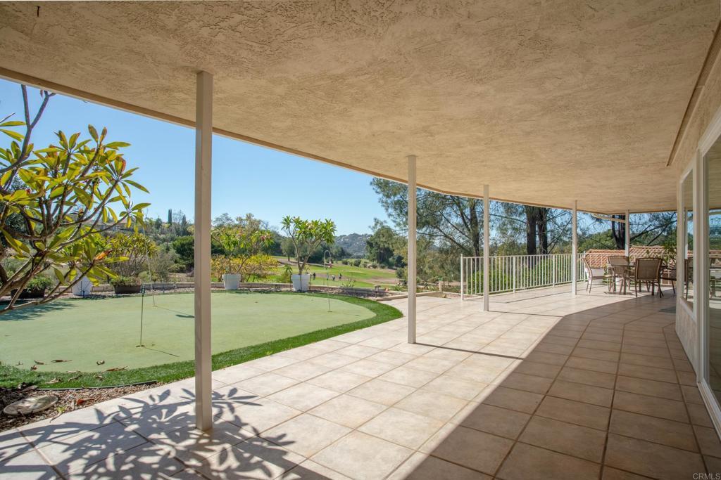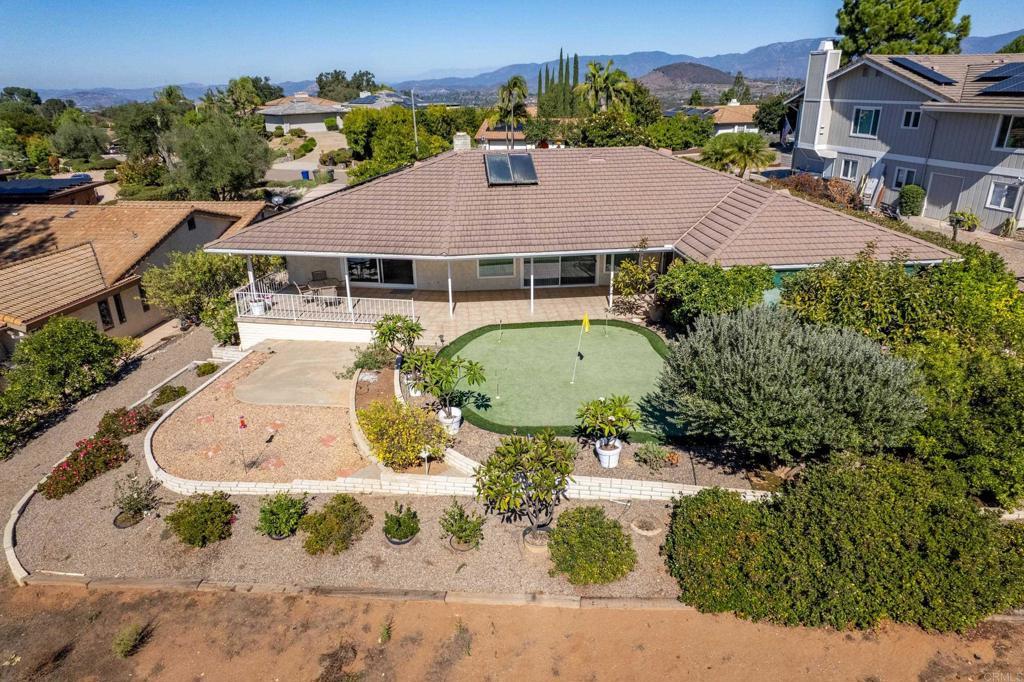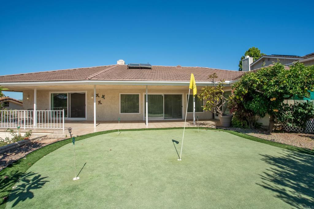 Single Level with Golf Course Views and Paid Solar! Spacious Living Room and Family Room Overlooking a Patio, Putting Green, Golf Course and Sunset views from the West. Tile flooring throughout living area with plush carpet in the bedrooms. Dual pane sliding glass doors provide easy acess to back patio. Separate Laundry room with half bath and direct access to the attached 2-car garage. Flat driveway with plenty of parking spots. Low HOA dues are only $396/YEAR and includes a Seasonal Community Pool and 2 Tennis Courts. Hidden Meadows Community has their own Fire Station, Two Markets/Deli's, the Sideyard Pub, a Public Golf Course with a restaurant/bar and is close to Shopping, Schools and 15 Fwy.