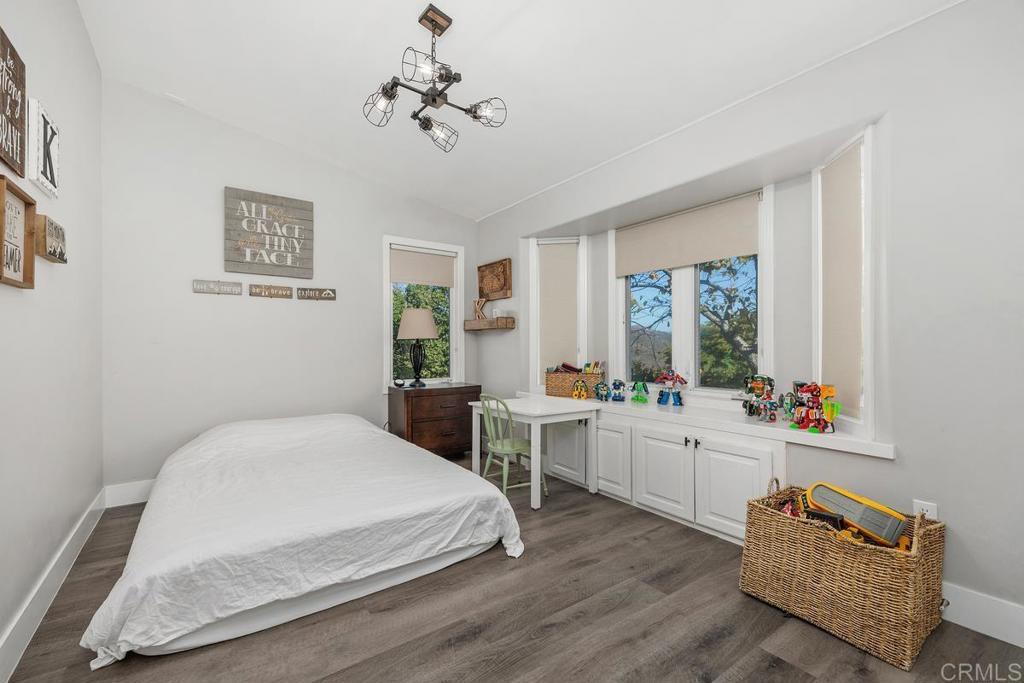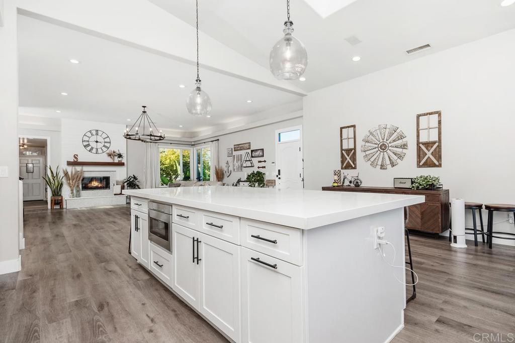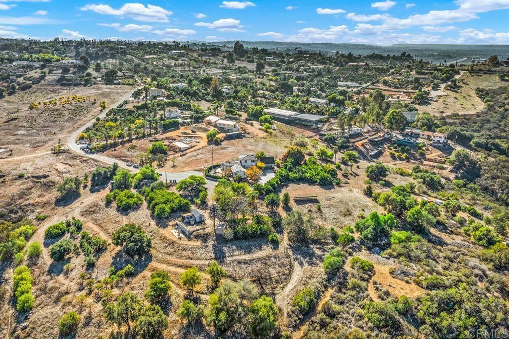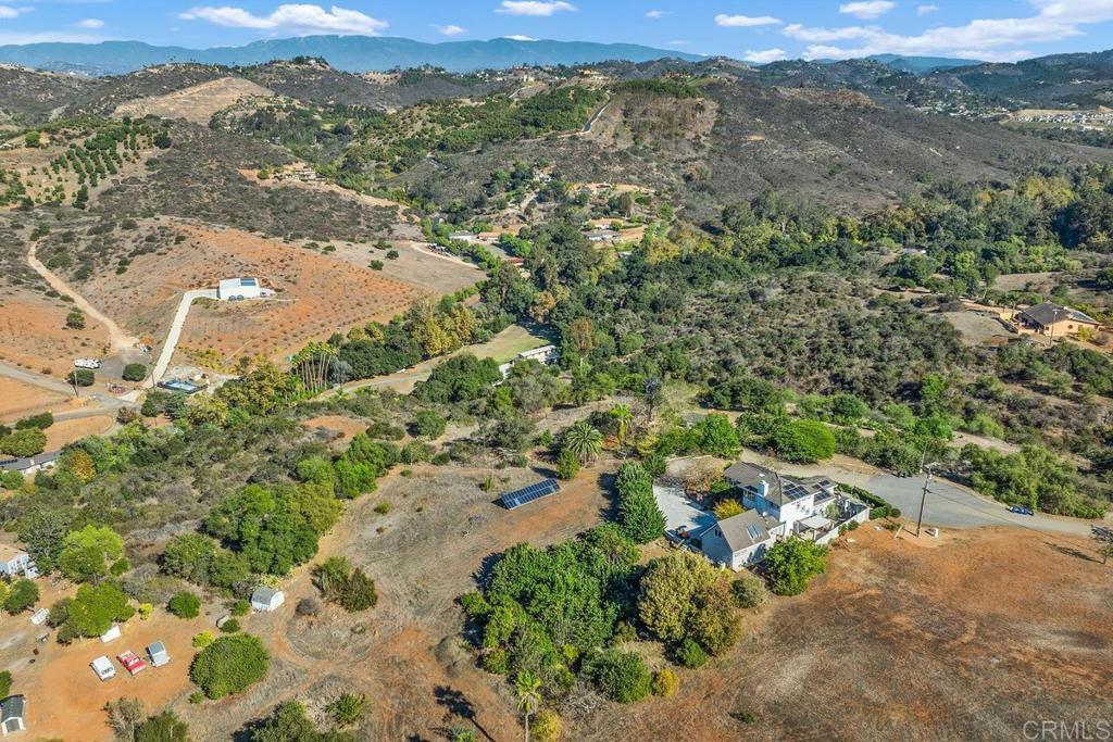 Stunning, fully renovated 4-bedroom designer ranch estate on over 2 acres of lush, mature landscaping. This home blends luxury, comfort, and functionality with an open, light-filled layout ideal for entertaining and everyday living. The gourmet chef’s kitchen features top-of-the-line appliances, white quartz countertops, a large center island, white cabinetry with glass accents, a charming dining area, and a spacious walk-in pantry. Skylights and expansive glass doors frame breathtaking mountain views and create seamless indoor-outdoor flow. The living room boasts a striking coral stone fireplace and direct access to the backyard oasis, perfect for dining, relaxing, or entertaining.The luxurious primary suite occupies its own private second floor, offering a true retreat with large walk-in closet, and sweeping views of the estate and surrounding mountains. Three additional bedrooms provide flexible space for family, guests, or a home office. Every inch of the home showcases designer finishes, custom detailing, and elegant touches throughout. Outdoors, enjoy a private resort-style yard with a patio deck for BBQs and al fresco dining, surrounded by nearly 100 mature fruit trees including cherimoya, guava, mango, satsuma oranges, Logan, golden navel mandarins, Oro Blanco, and finger limes. The property is sustainably powered by an owned solar system and features a two-car garage. Nestled at the end of a quiet cul-de-sac, this rare estate combines privacy, elegance, and serenity while remaining conveniently close to I-15 and I-76. The seller owns an adjacent 4.4-acre lot with a water well and is open to selling it with this property—an ideal opportunity for buyers seeking a spacious 6.6-acre estate.