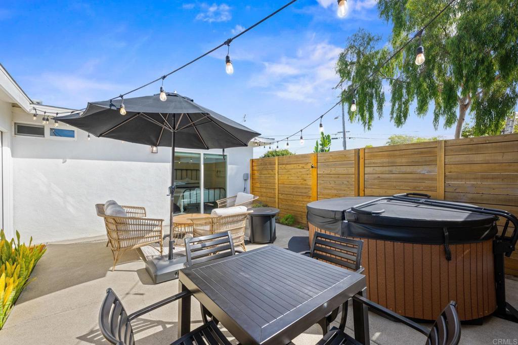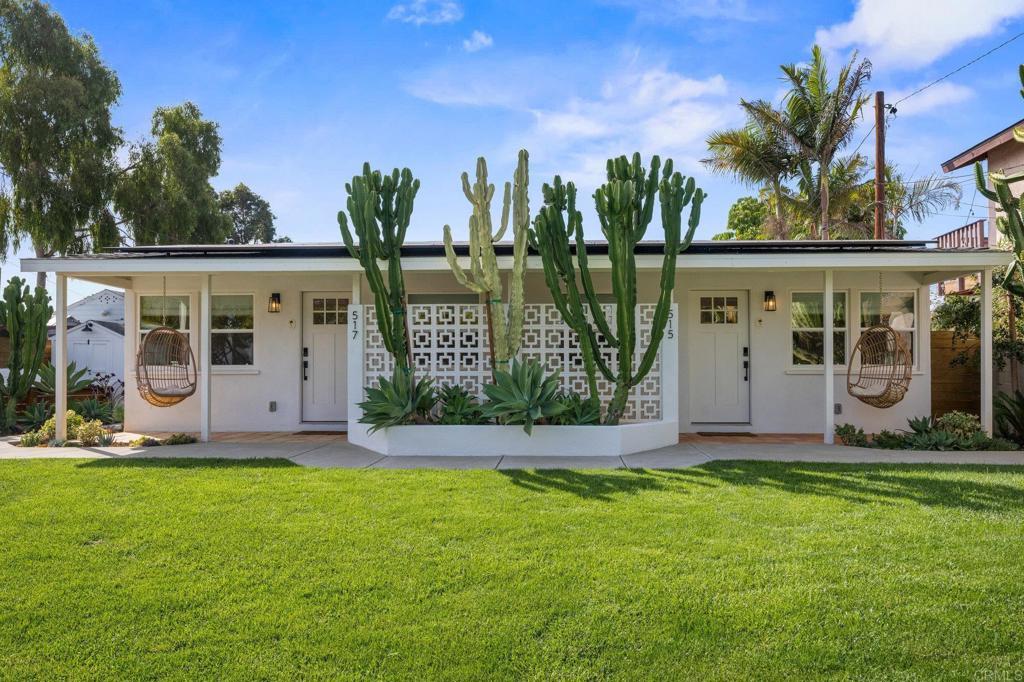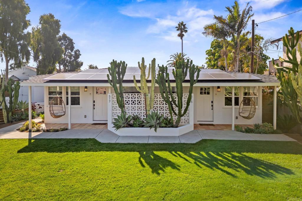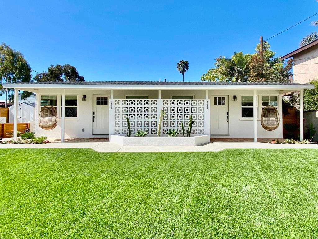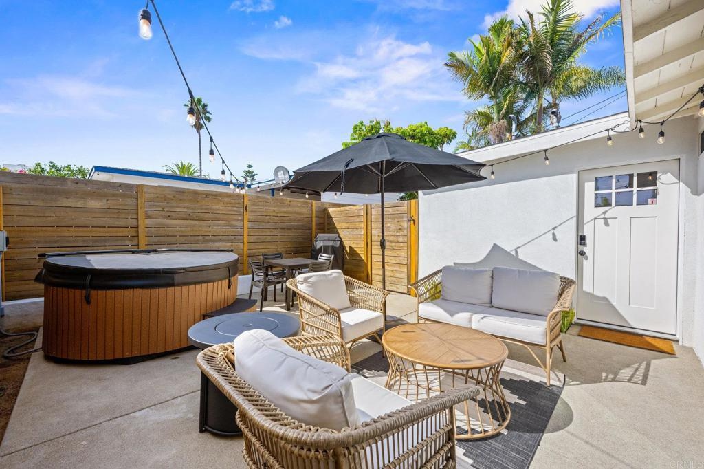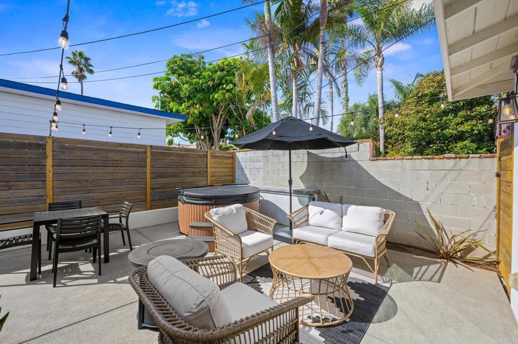 A short distance to Oceanside's beautiful beaches! 1950's vintage charm meets modern coastal design with a relaxed surf vibe. This impeccably remodeled, fully furnished duplex blends boutique-hotel finishes with laid-back surf-town living—ideal for owner-occupant, 2-unit furnished rental, or extended-stay beach retreat. Move-in ready from day one, in pristine turn-key condition, this property has been remodeled down to the studs. Kitchens have been designed to entertain with large kitchen islands, high-end Bertazzoni appliances and quartz countertops. Both units feature their own dedicated backyard oasis with hot tub, BBQ, dining area, fire pit, and string lighting. Each unit has a fully owned solar system that has kept them at nearly zero electrical costs annually. New roof, new fencing, new Saltillo tile floors, new tankless water heaters, new insulation throughout (including interior walls), new split ductless HVAC in both units. Smart-home controls for music, alarms, lights, room darkening blinds, and weather updates. Two separate electric meters and gas meters. Convenient off-street parking and plenty of street parking available. Located in the heart of Oceanside, California—easy quick access to the beach, pier, dining, coffee shops, and harbor; close to I-5 and train station.